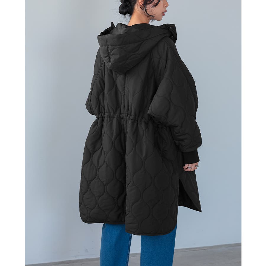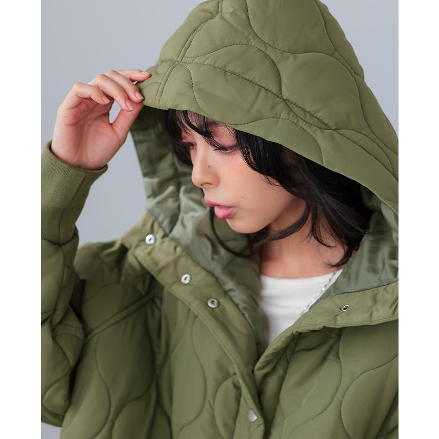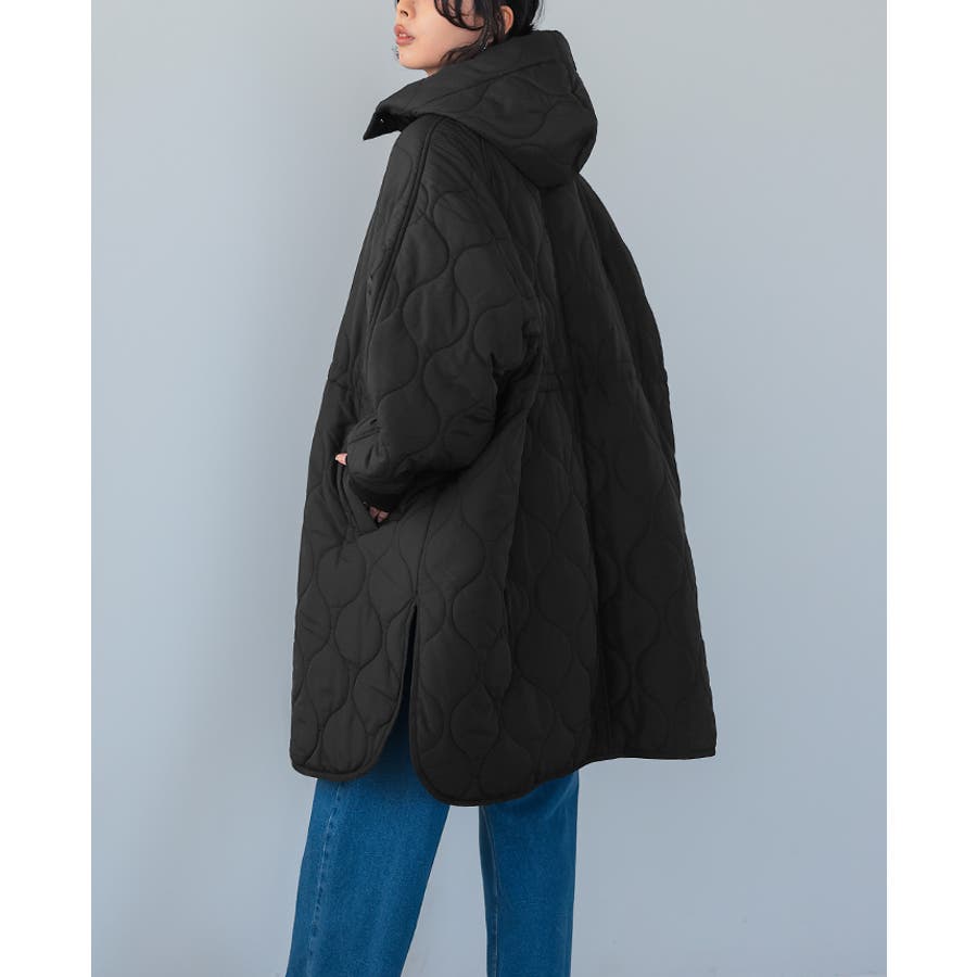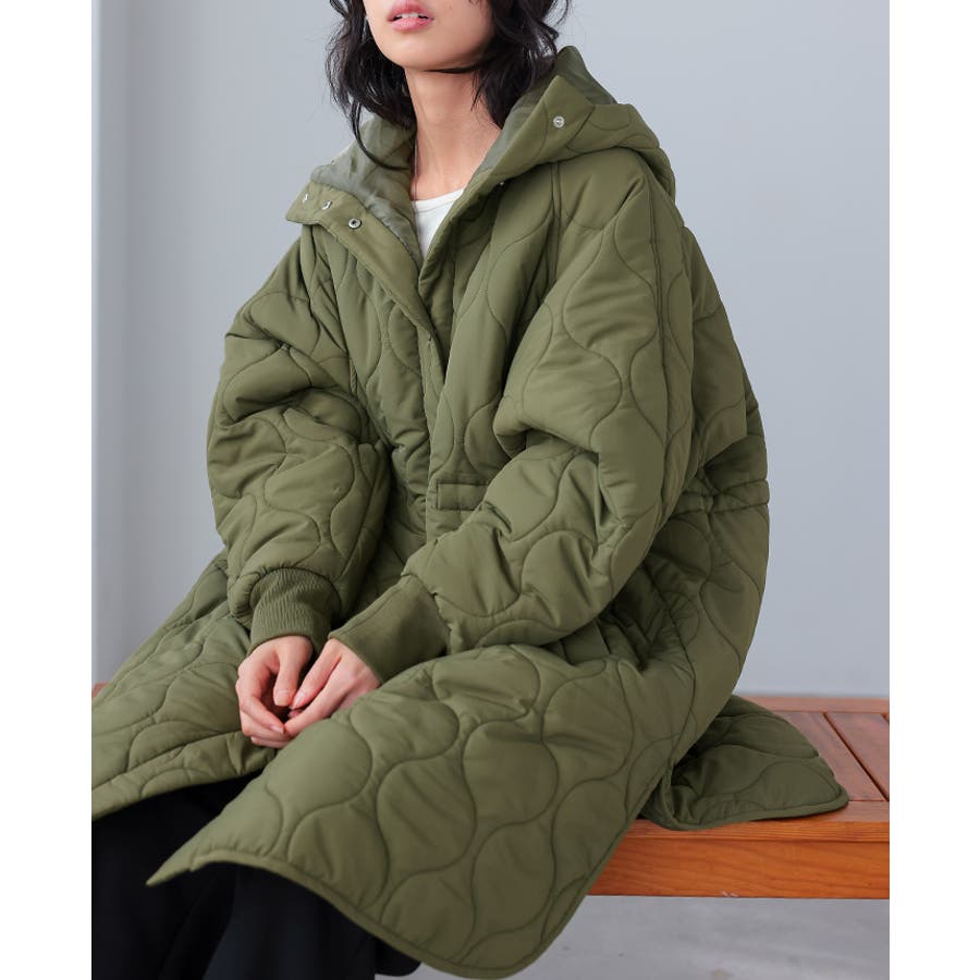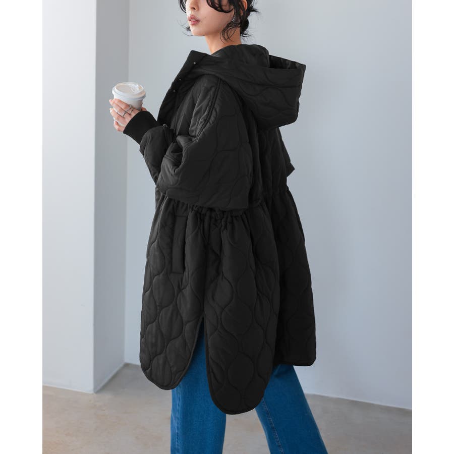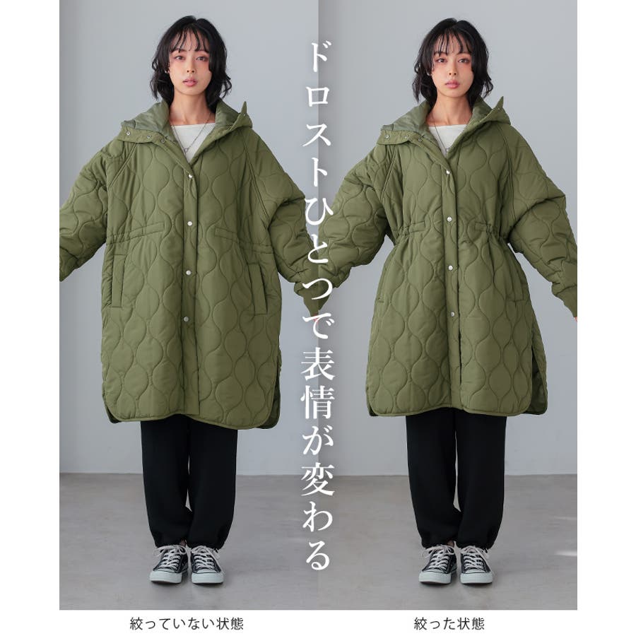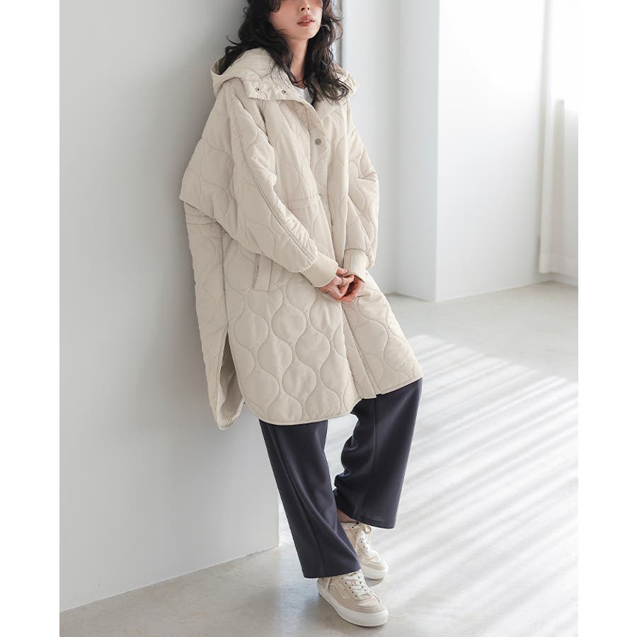シルエットを変えれる万能アウター。キルトフード付きコート コート キルティング