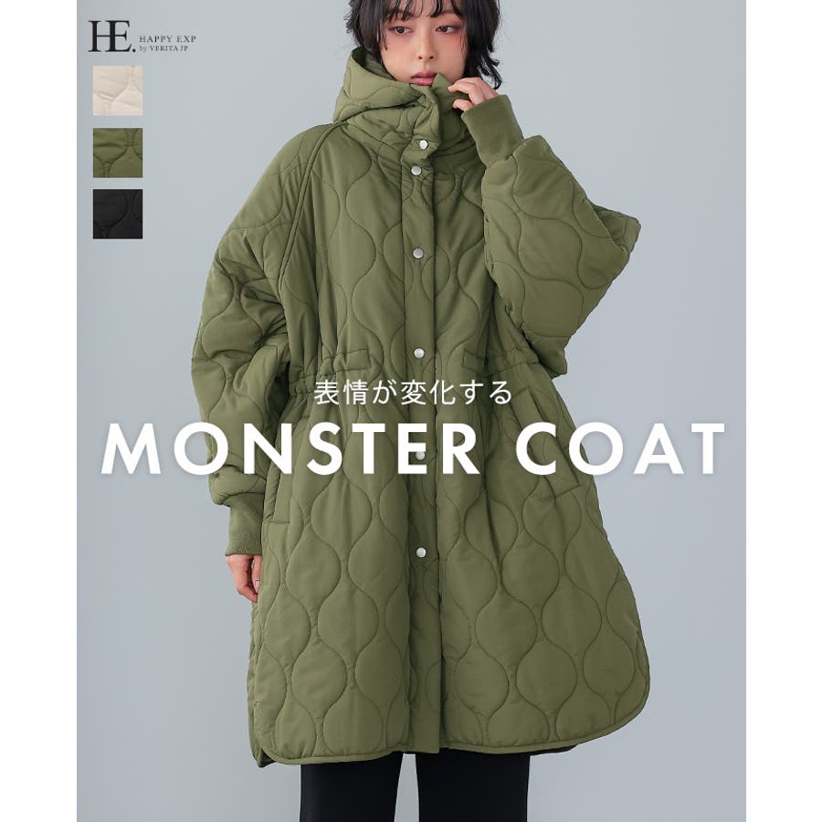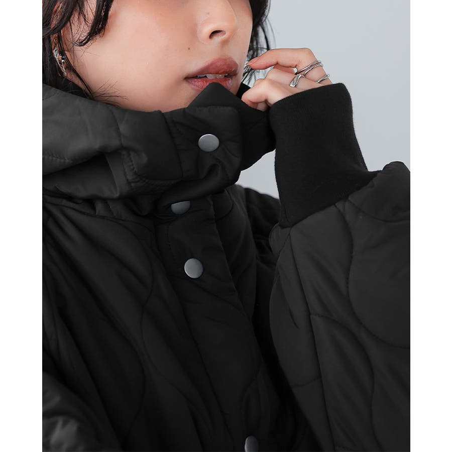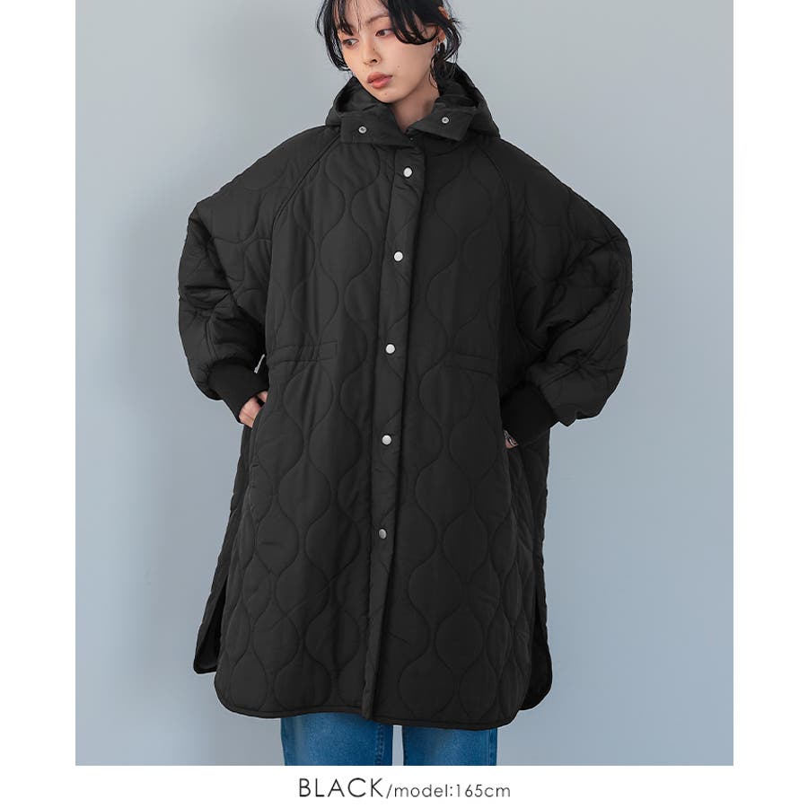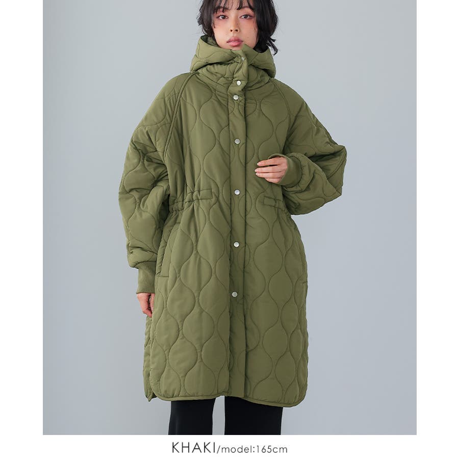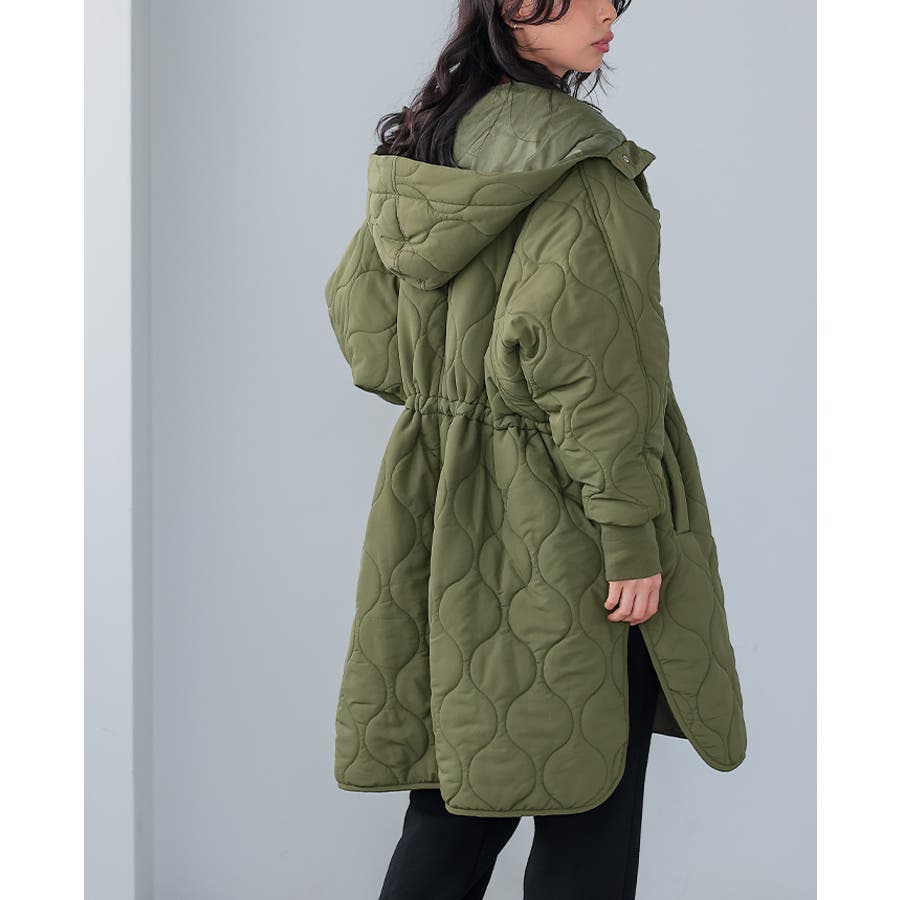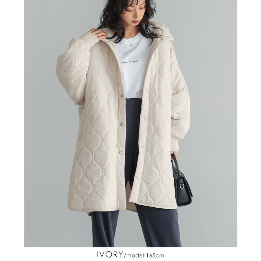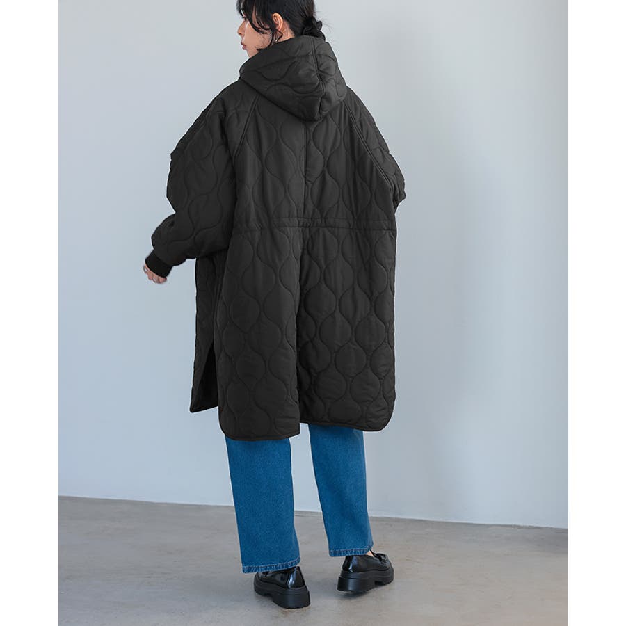シルエットを変えれる万能アウター。キルトフード付きコート コート キルティング