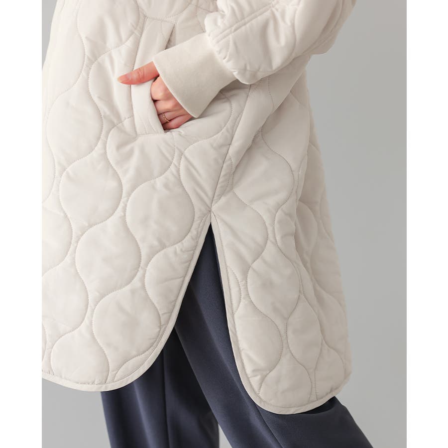軽くてあたたかい着心地が魅力の、キルトフード付きコート。
