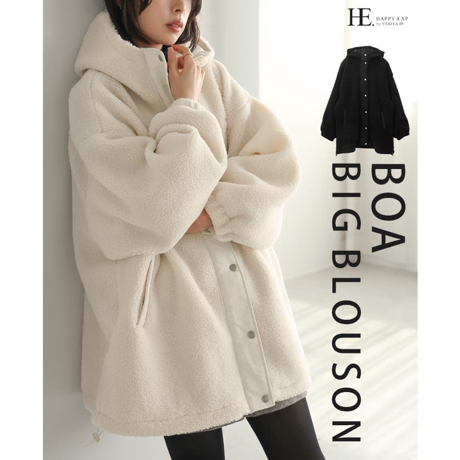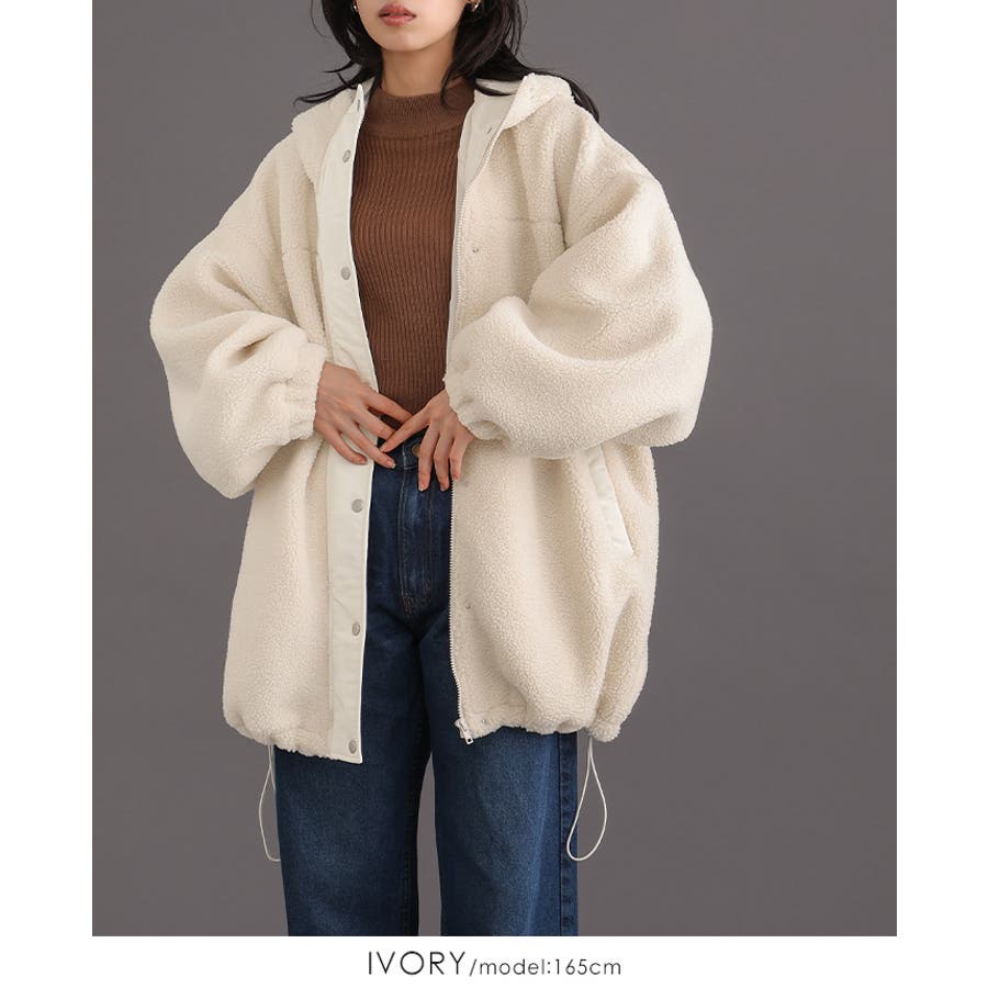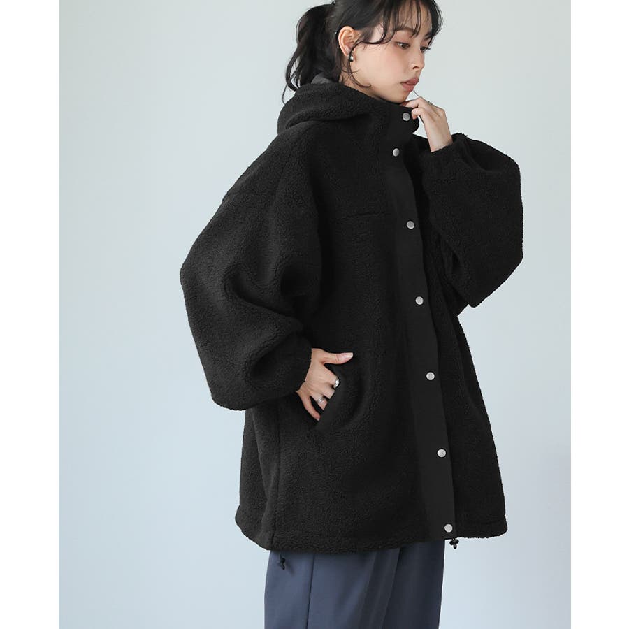 ゆるっと羽織れる、あったかアウター。ボアビッグシルエット フード付ブルゾン コート