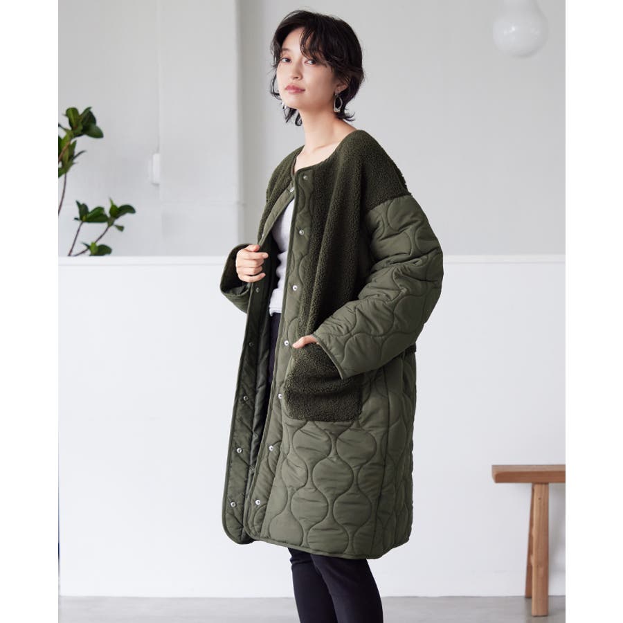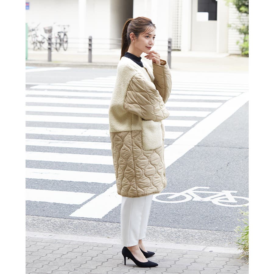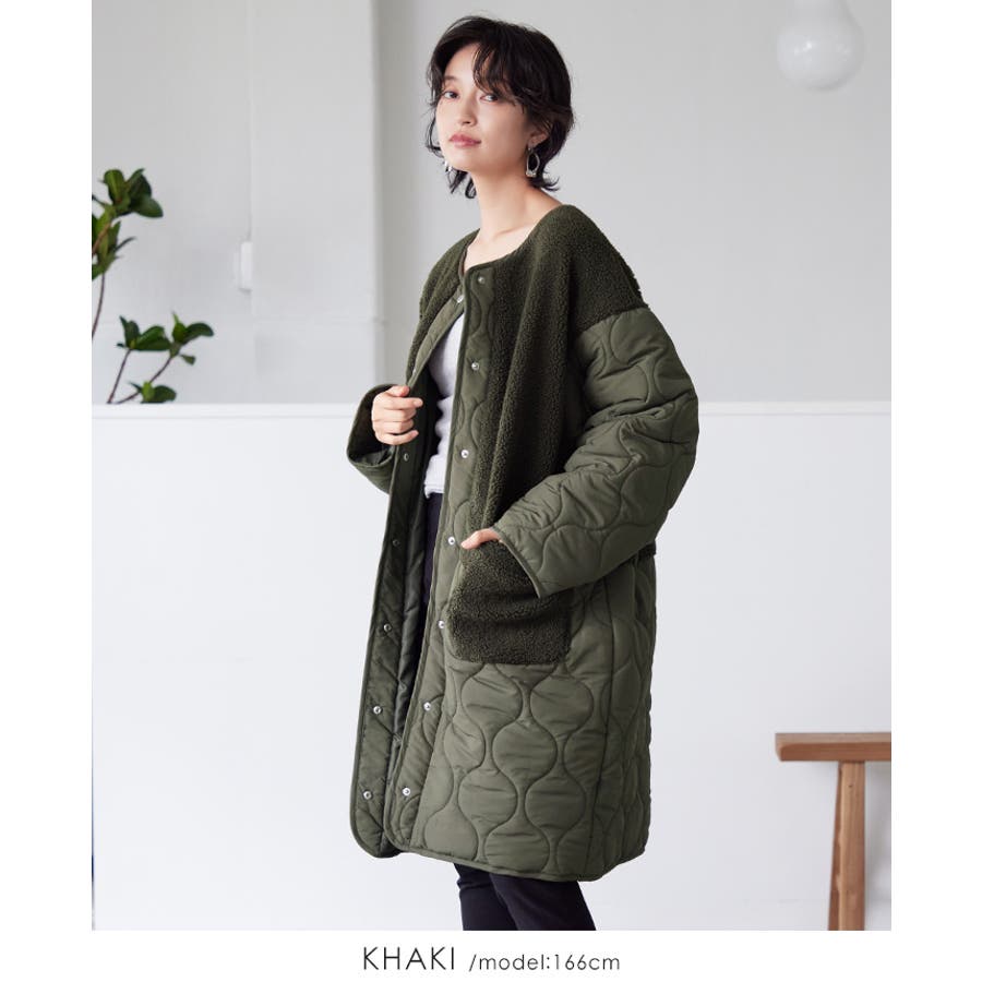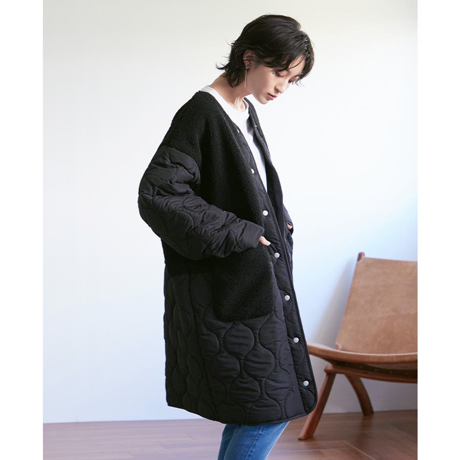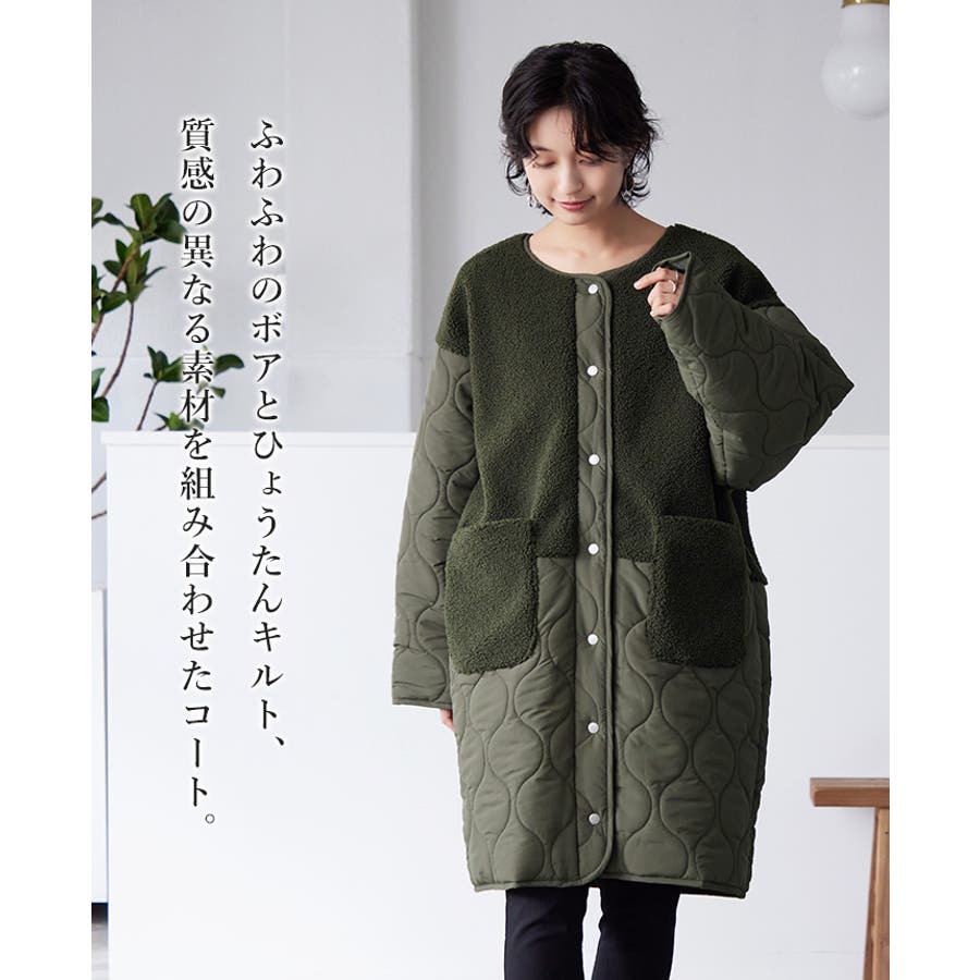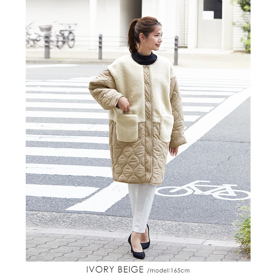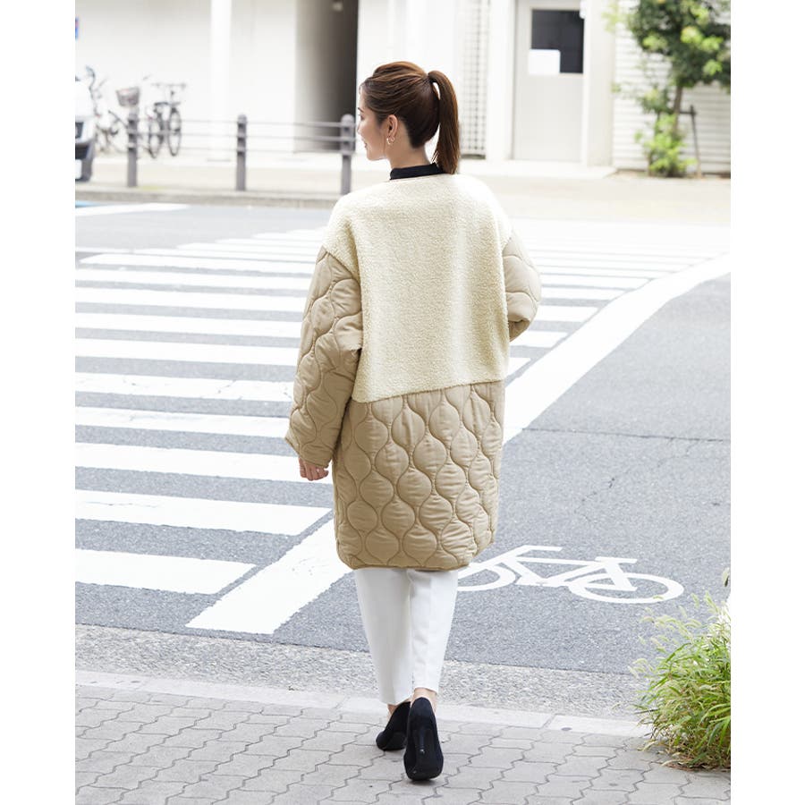 異素材のあったか冬アウター。ボア×ひょうたんキルトコート コート ボア