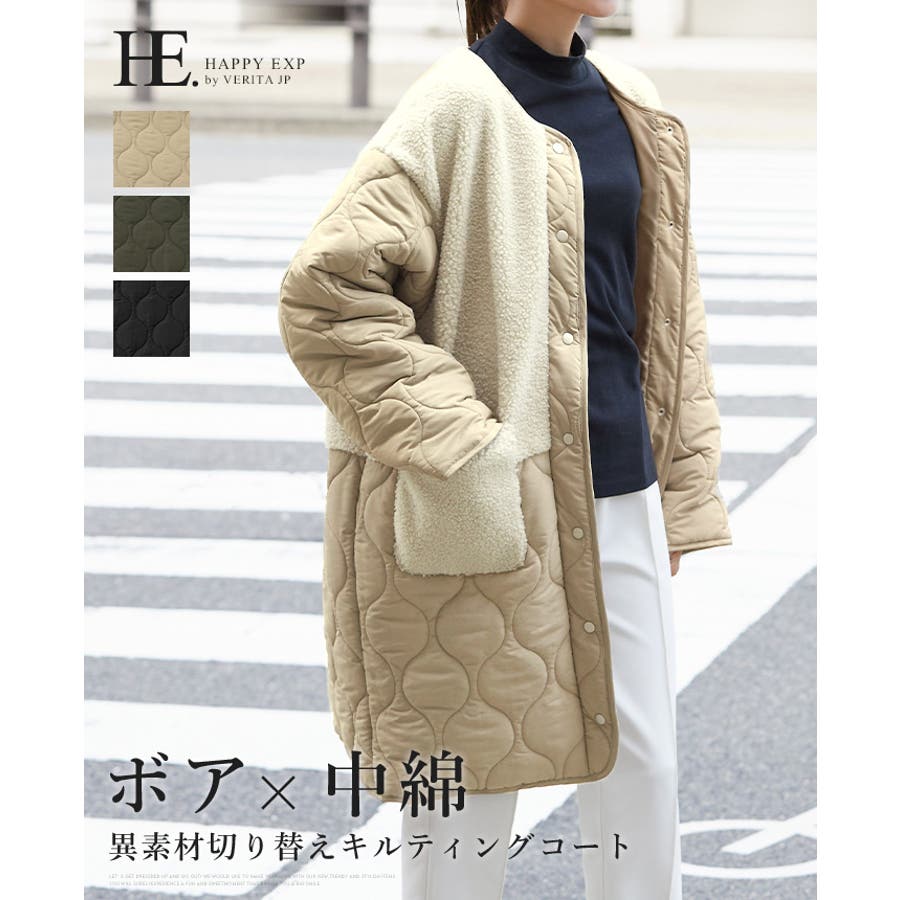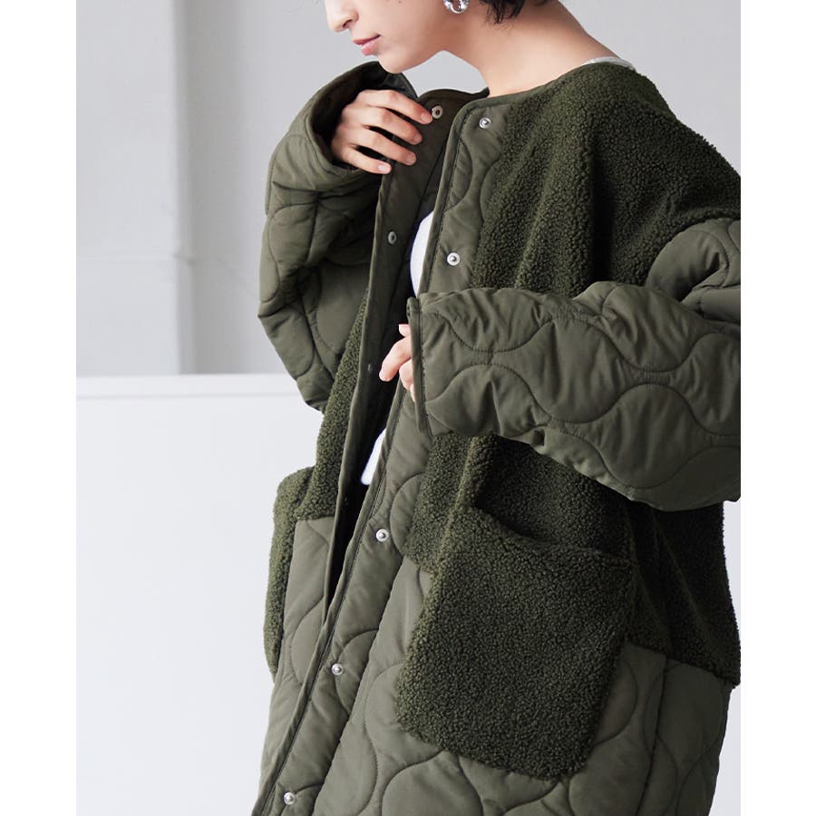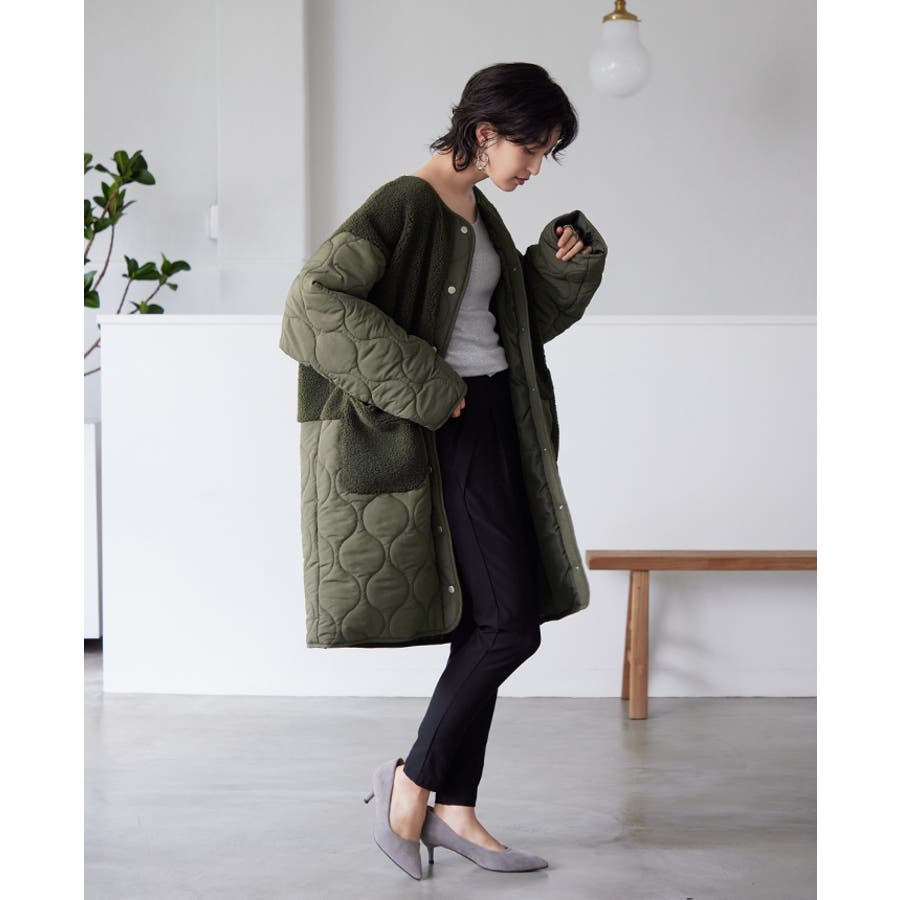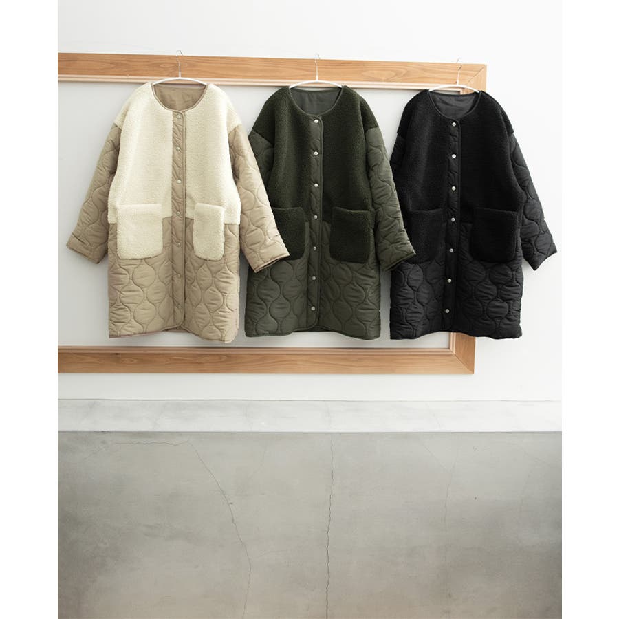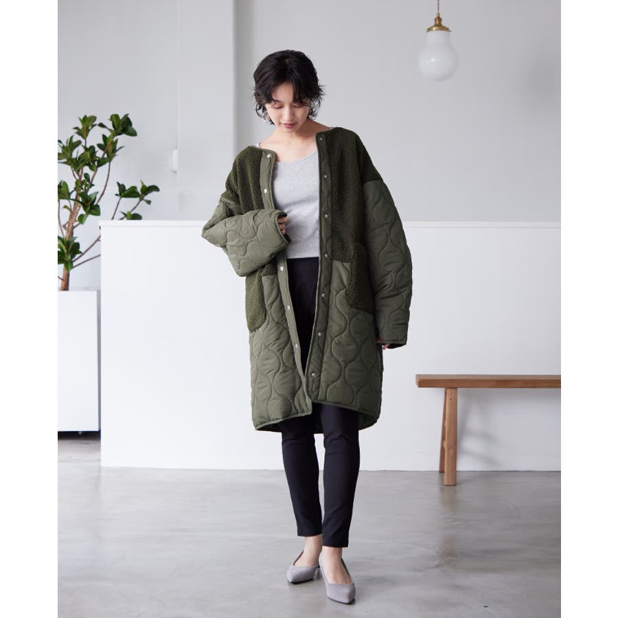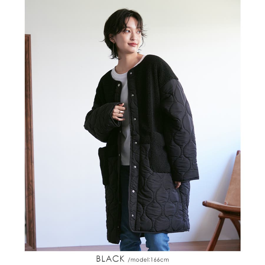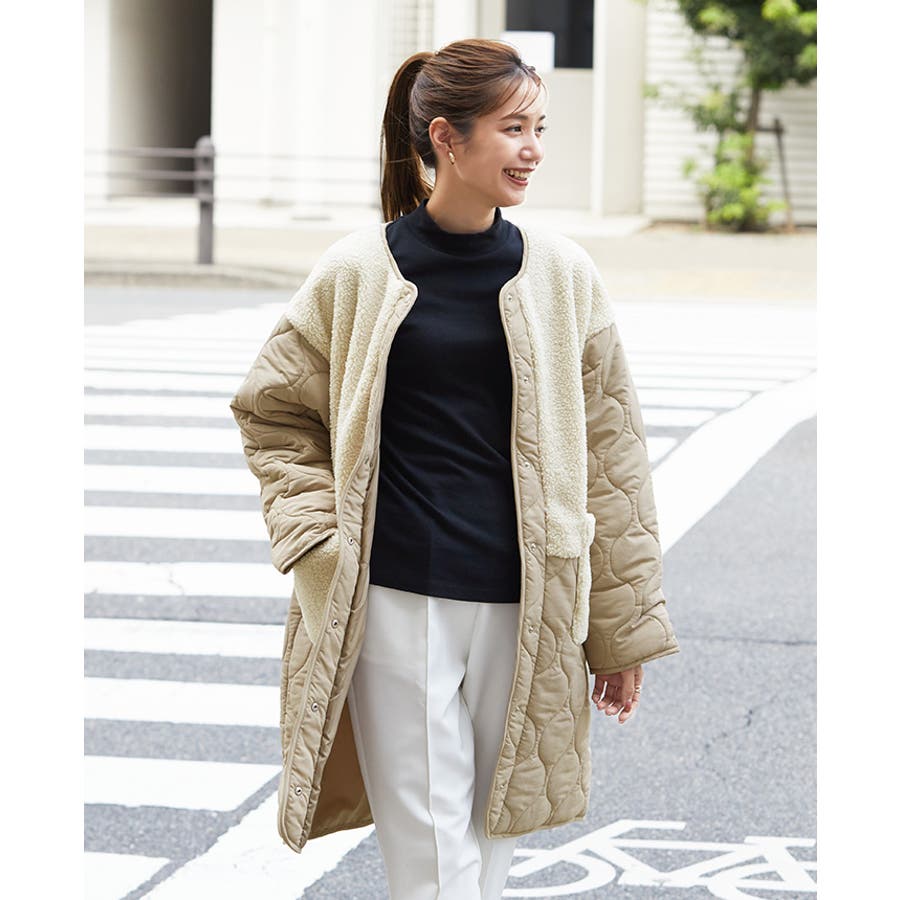 異素材のあったか冬アウター。ボア×ひょうたんキルトコート コート ボア