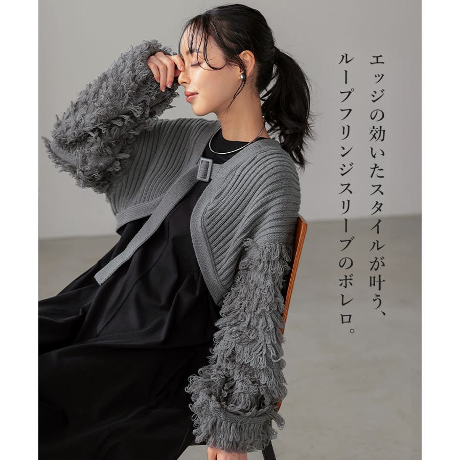 華やかにスタイルアップ。ループニットボレロ ボレロ ニット