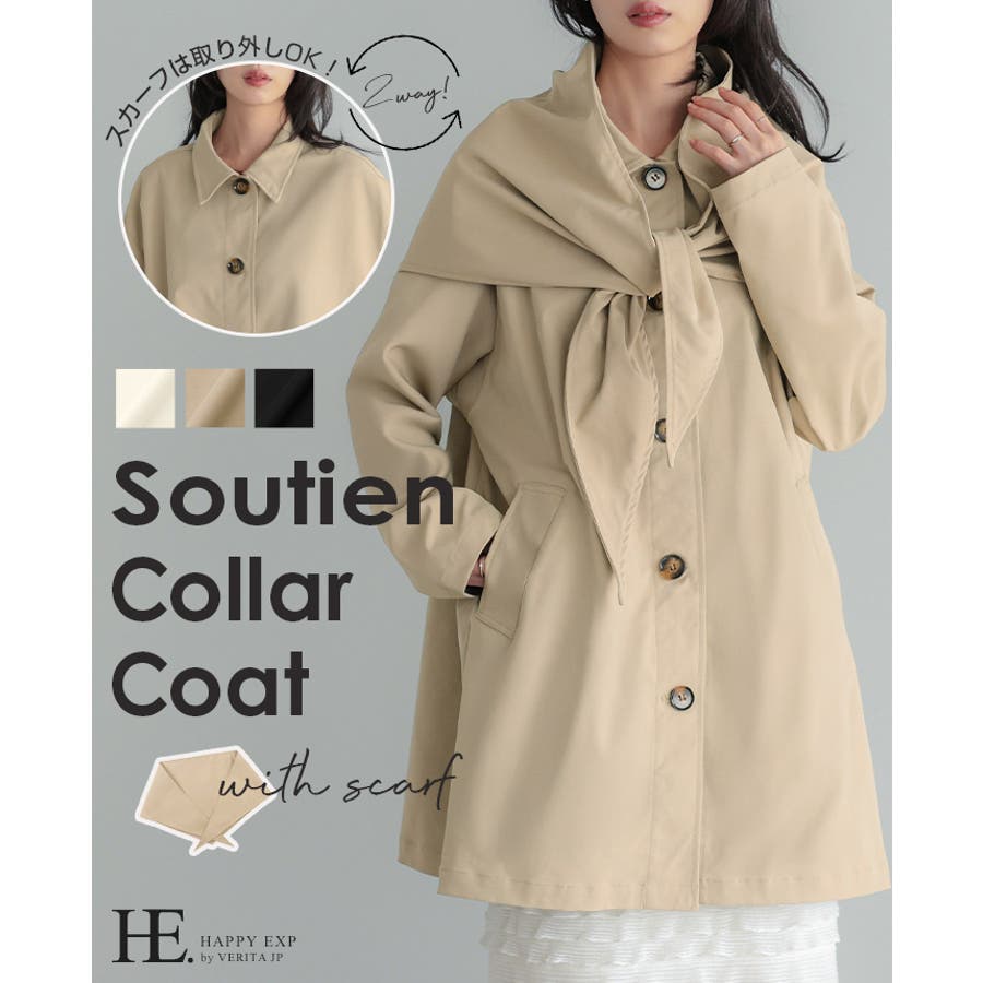 アレンジできる2wayコート。スカーフ付ステンカラーコート コート アウター