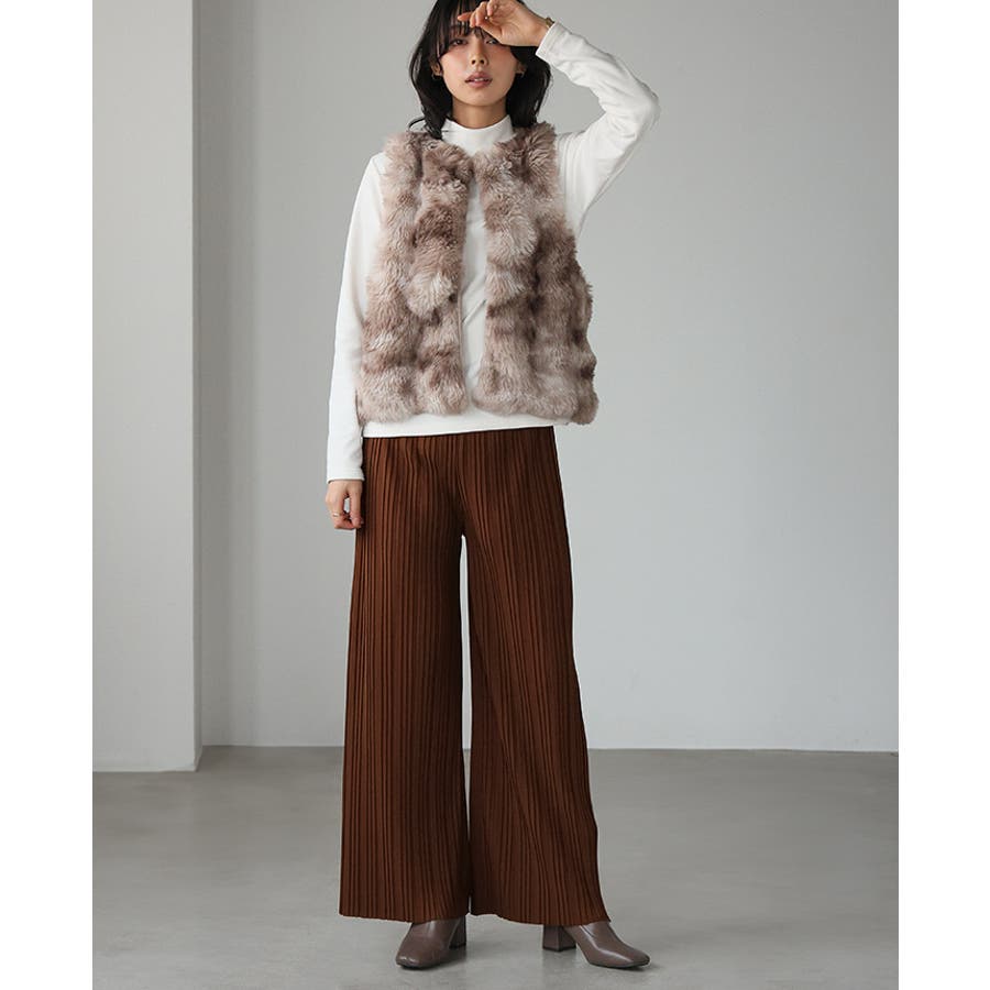 きれいめコーデに欠かせない、ストレートシルエットのプリーツパンツ。