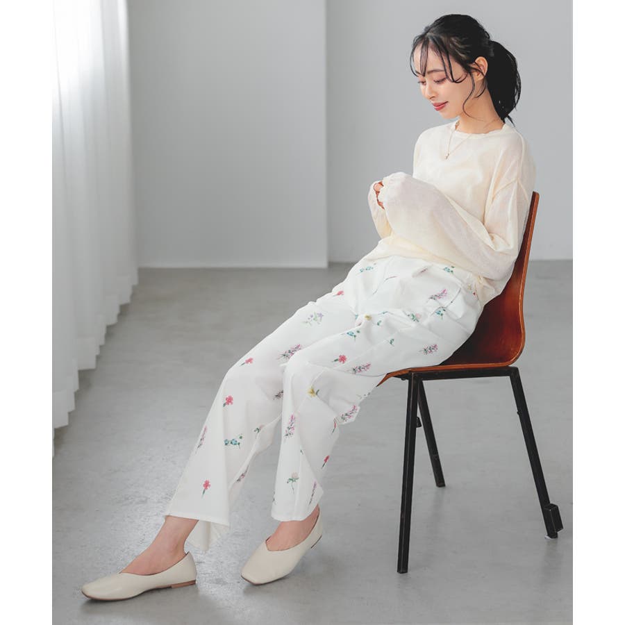 いろんな種類の花がプリントされた、見た目にも楽しいパンツ。