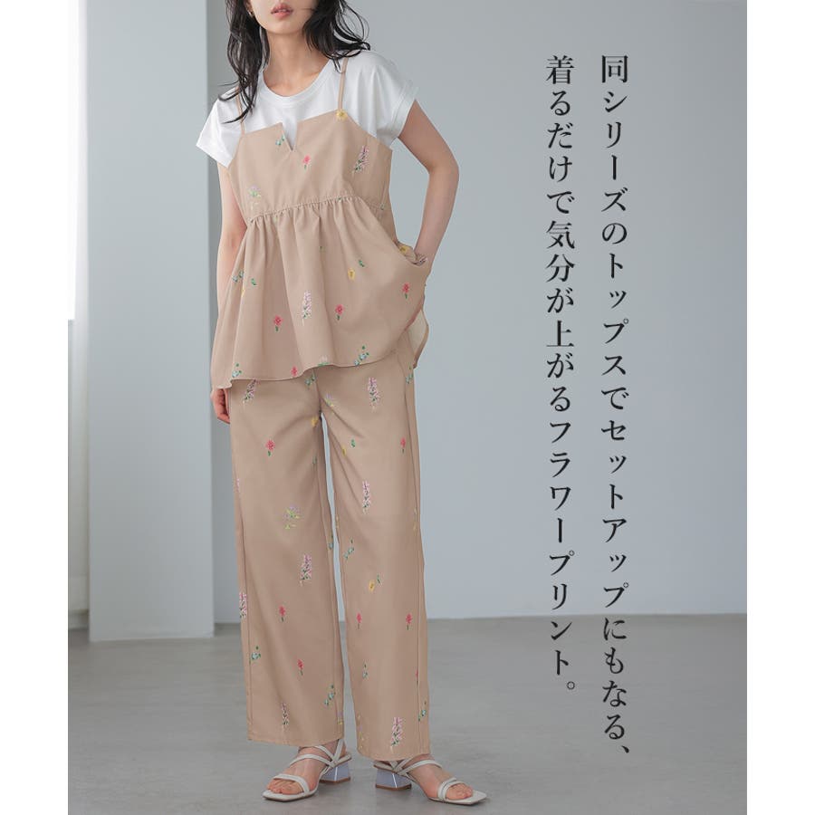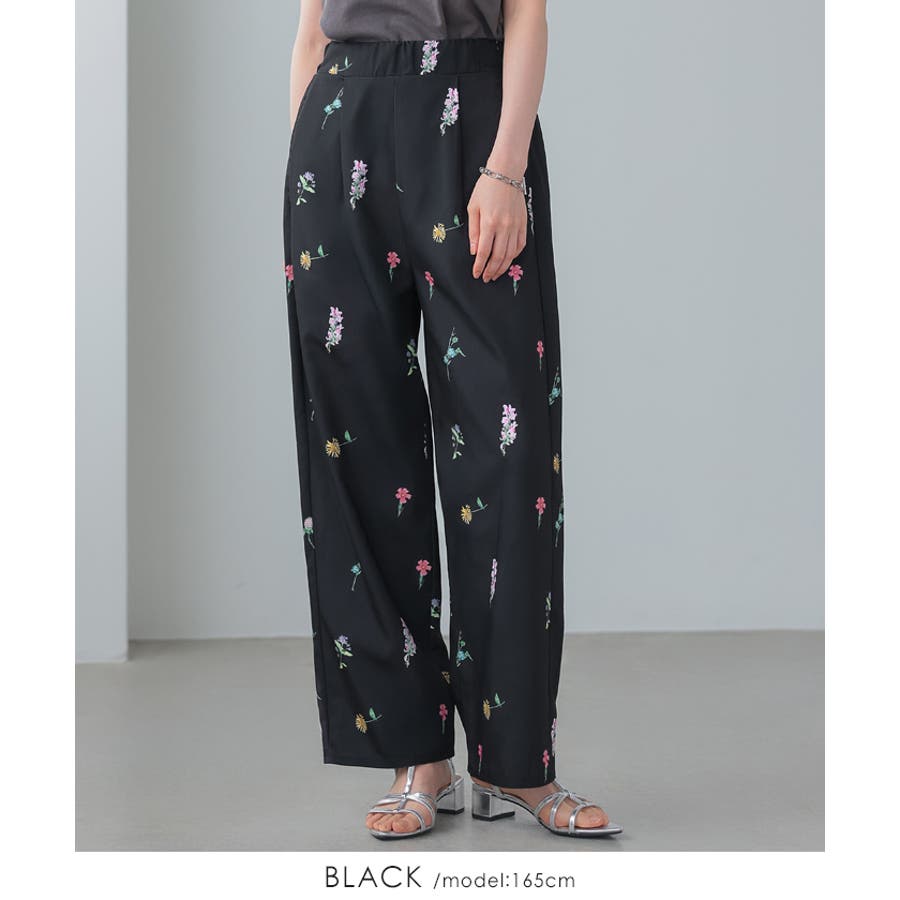 色とりどりの花を咲かせました。フラワープリントパンツ パンツ ワイドパンツ