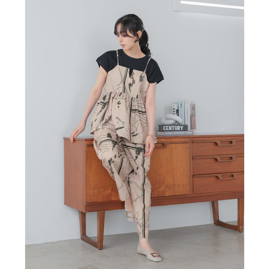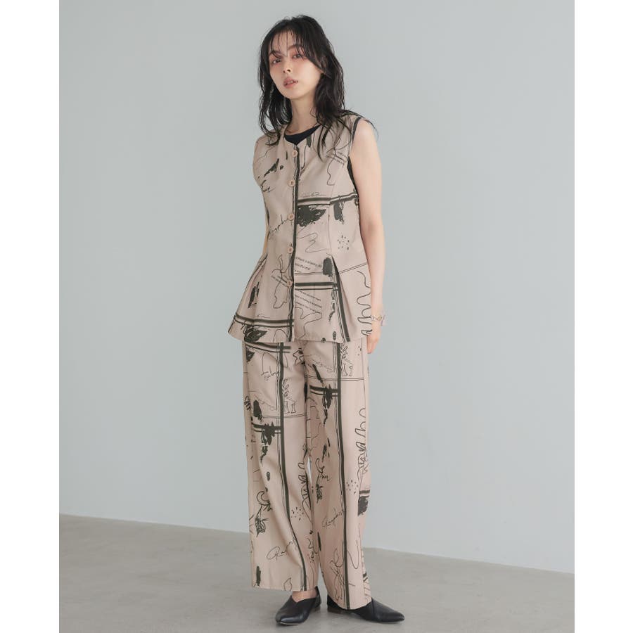 アートのようなプリントと英字を合わせた、遊び心のあるパンツ。