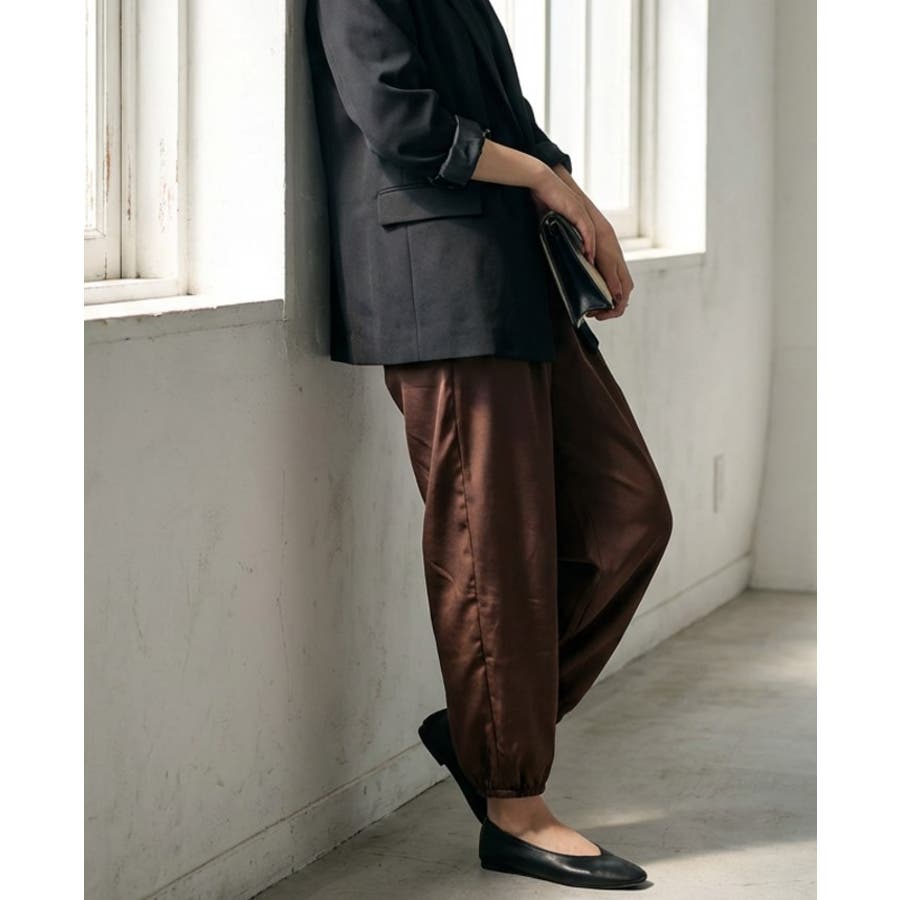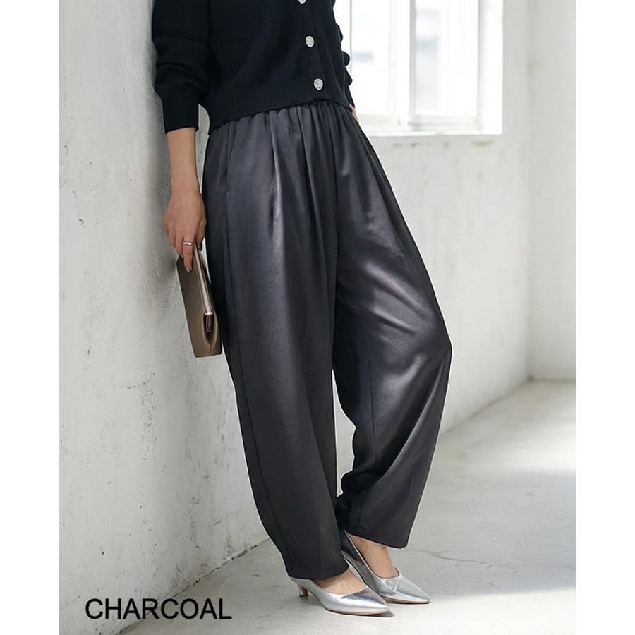 落ち感のある滑らかな素材で仕立てた、上品見えするイージーパンツ。