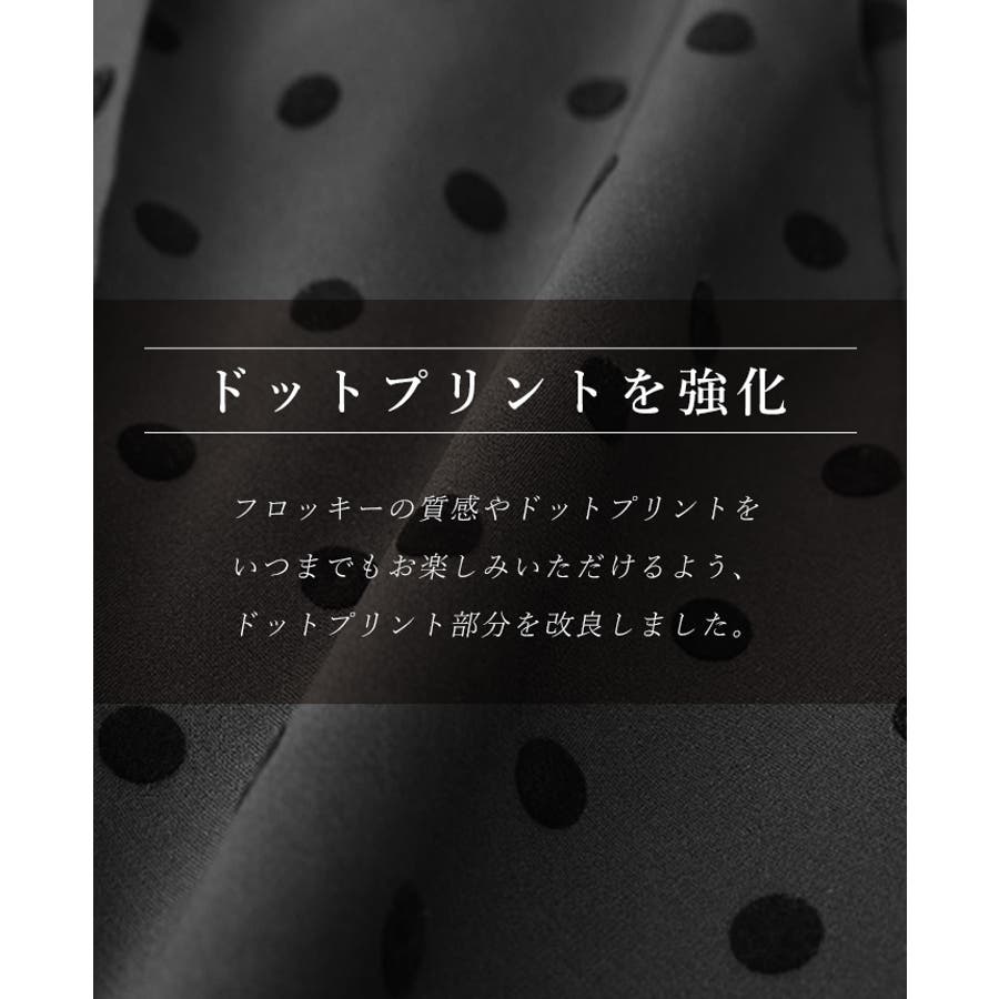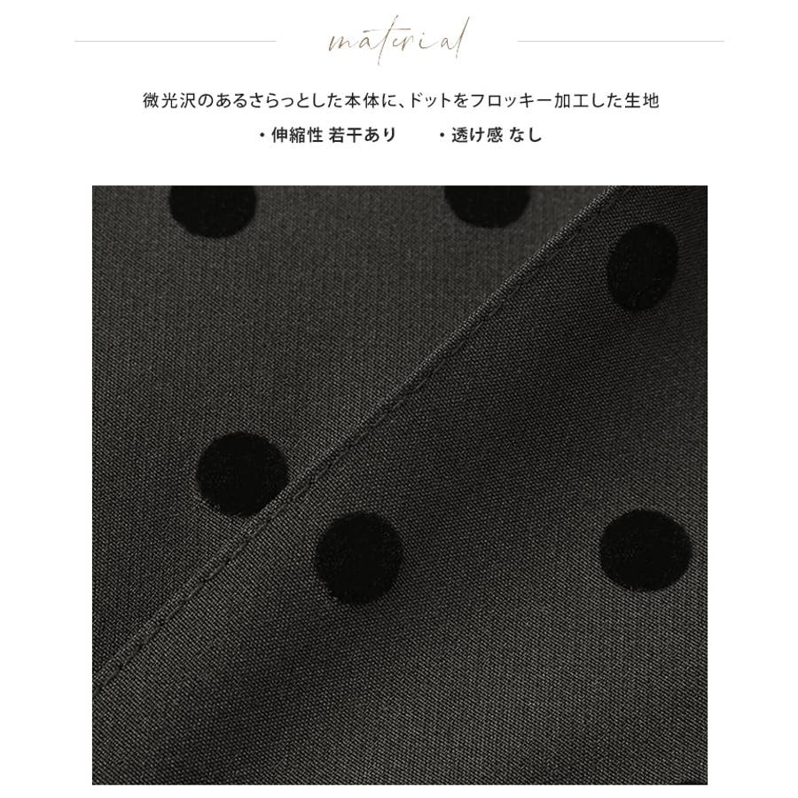 微光沢のBlack生地に、フロッキープリントでドット柄を乗せた上品なパンツ。