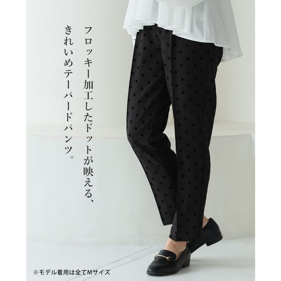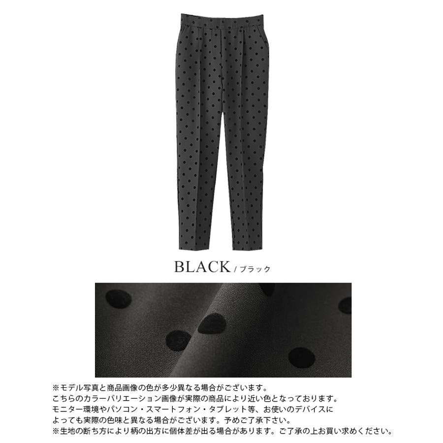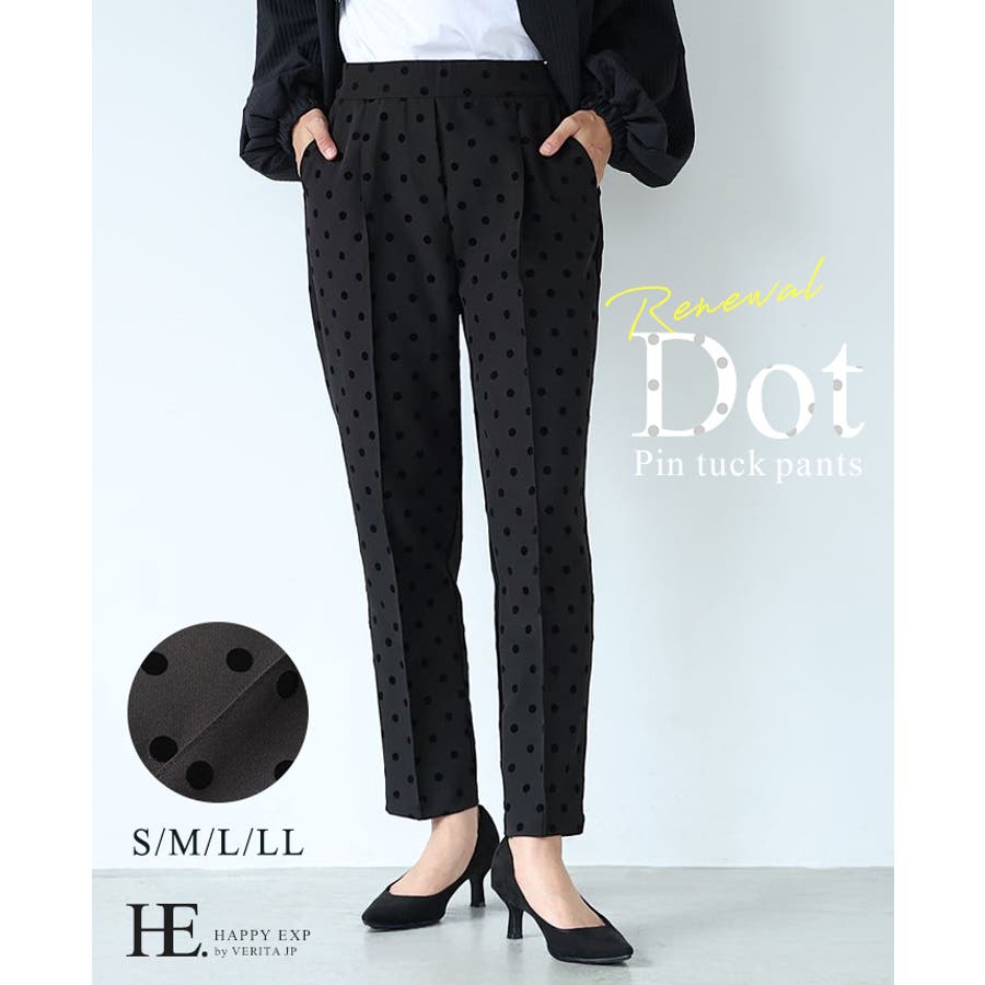 ボトムス パンツ レディース レディースパンツ ドット ドット柄 水玉 水玉模様 フロッキー テーパード テーパードパンツ ピンタック ウエストゴム ポケット さらっとした 微光沢 ブラック M M L L 10代 10代 20代 20代 30代 30代 40代 40代 50代 50代 60代 60代 オールシーズン 春夏秋冬 春 夏 秋 冬 スプリング サマー オータム ウィンター 年中 美脚 楽 大人 おとな オトナ 綺麗め きれいめ キレイめ 可愛い かわいい カワイイ 通学 通学コーデ 通勤 通勤コーデ オフィス オフィスコーデ テレワーク テレワークコーデ 在宅 在宅勤務 在宅ワーク 在宅コーデ ギフト プレゼント 誕生日 クリスマス 母の日 贈り物 お出掛け お買い物 参観日 懇談会 発表会 学生 社会人 ママ ママコーデ アラサー アラサーコーデ アラフォー アラフォーコーデ アラフィフ アラフィフコーデ 大人コーデ きれいめコーデ レディースファッション Happy急便 ハッピー急便 はっぴーきゅうびん ハッピーキュウビン