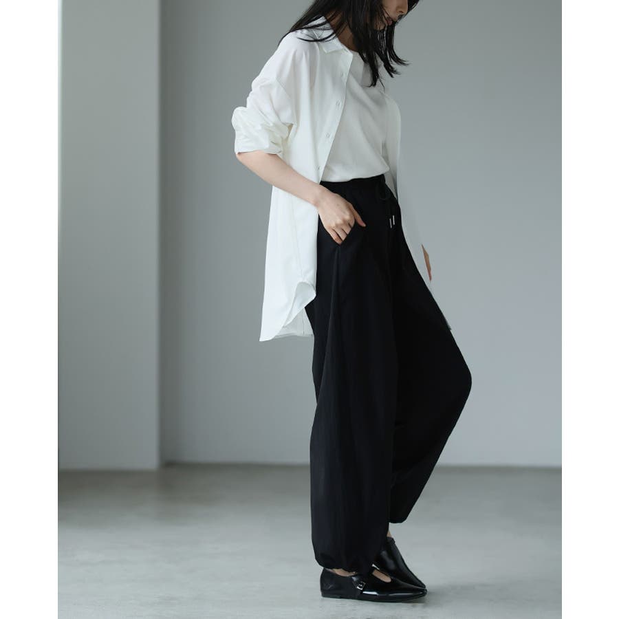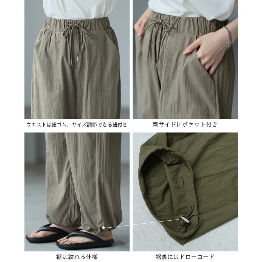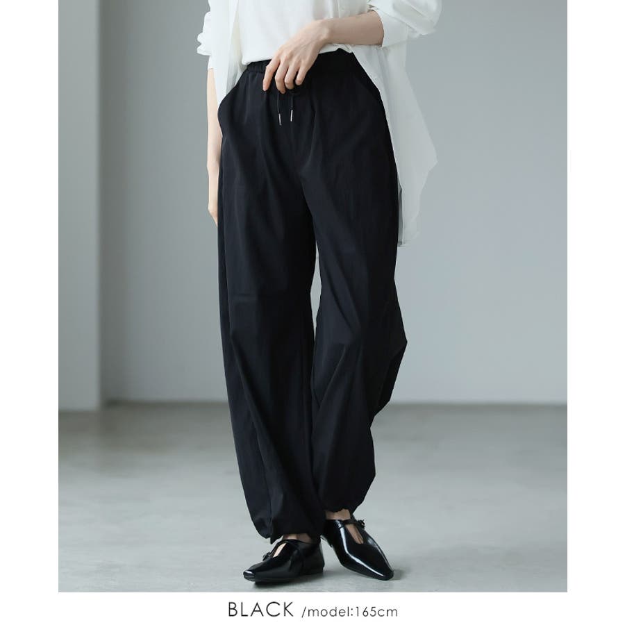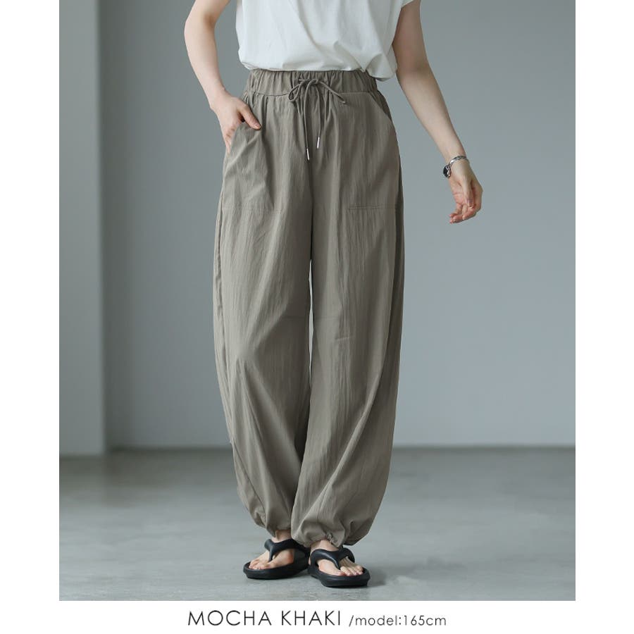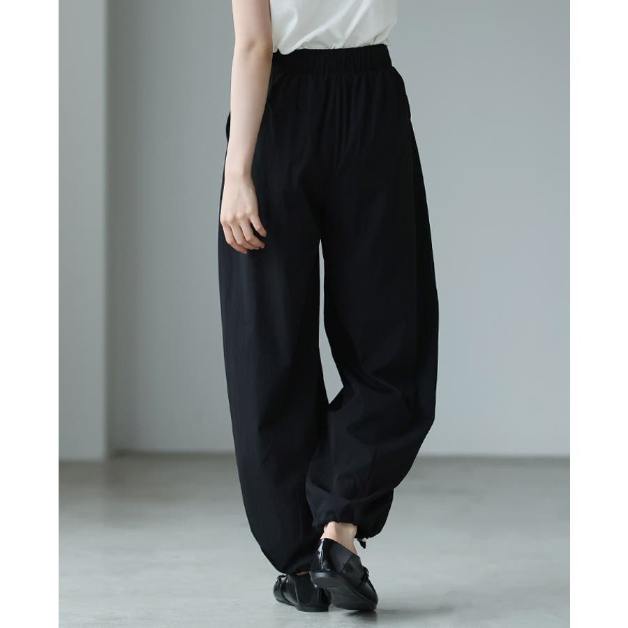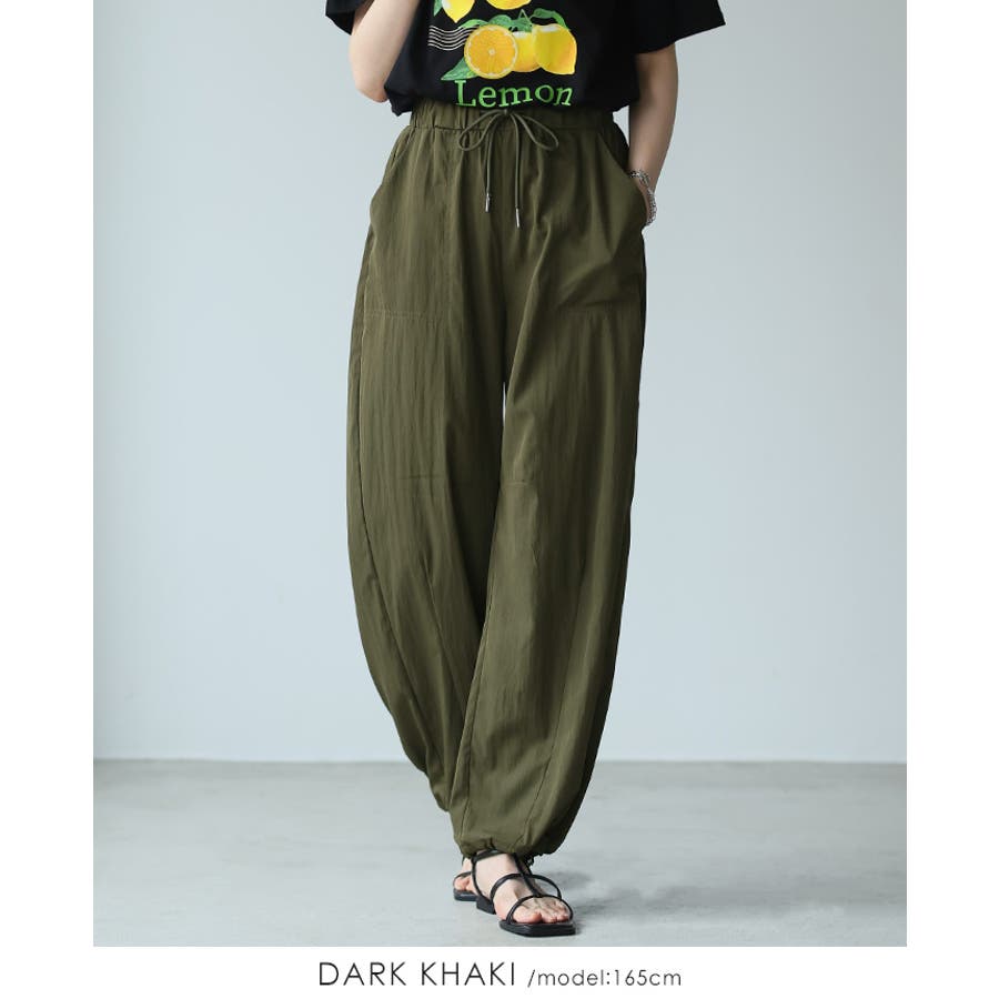 ゆったりとしたシルエットで、裾のドロストでキュっと絞れるデザイン。