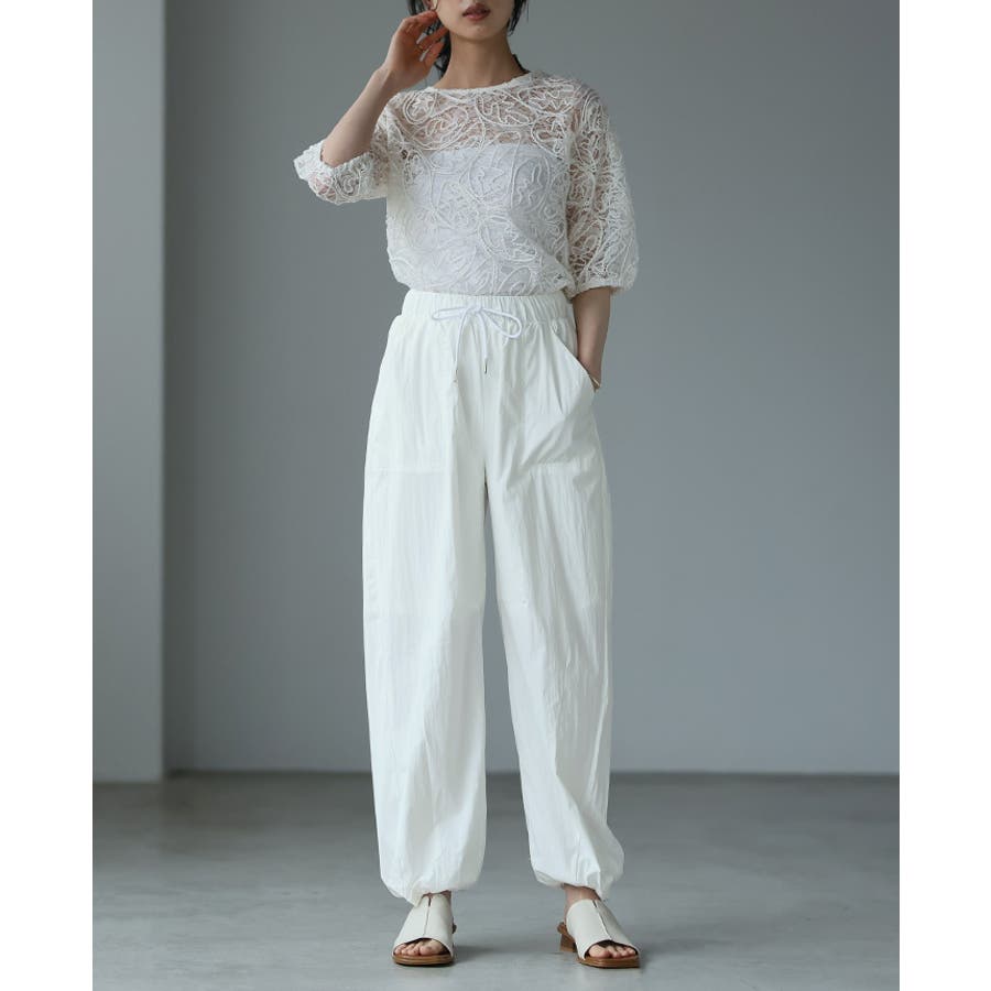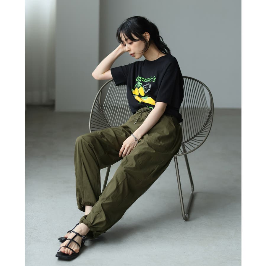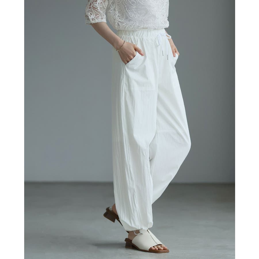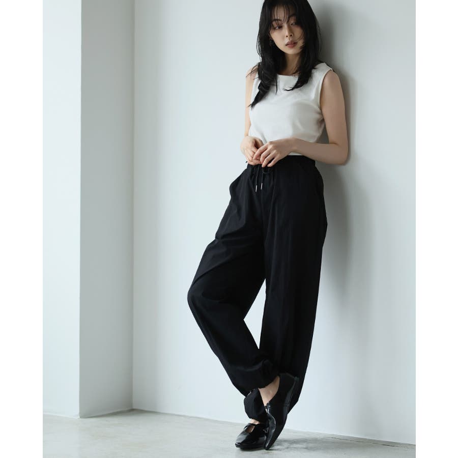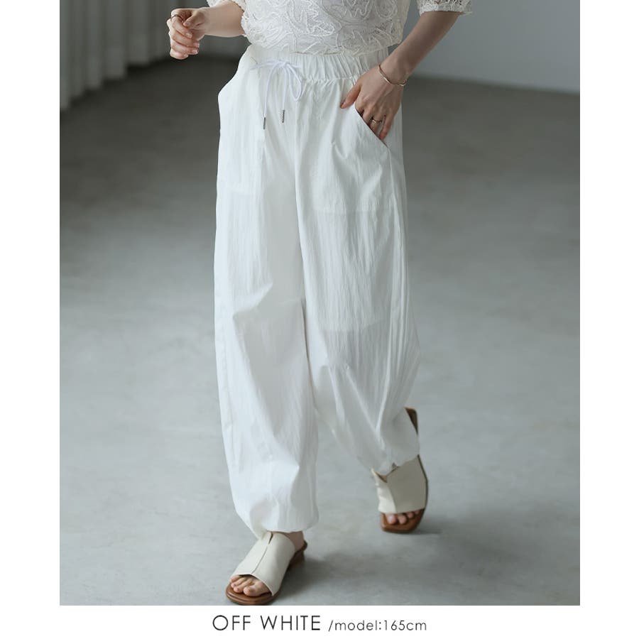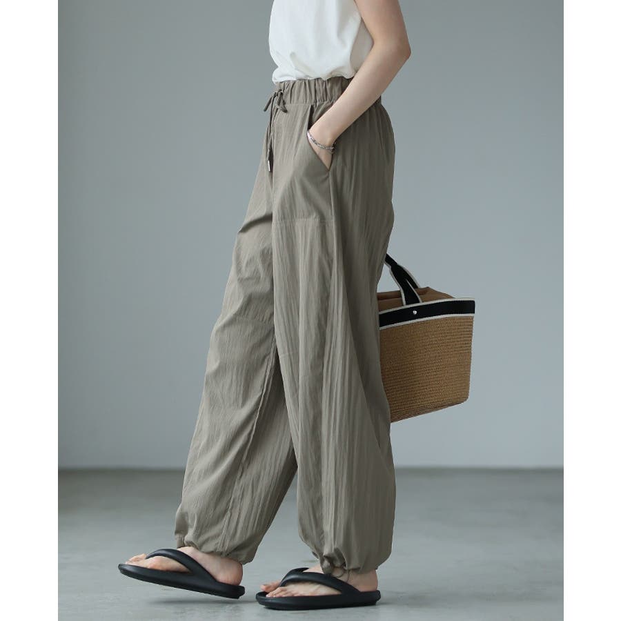 ゆったりとしたシルエットで、裾のドロストでキュっと絞れるデザイン。