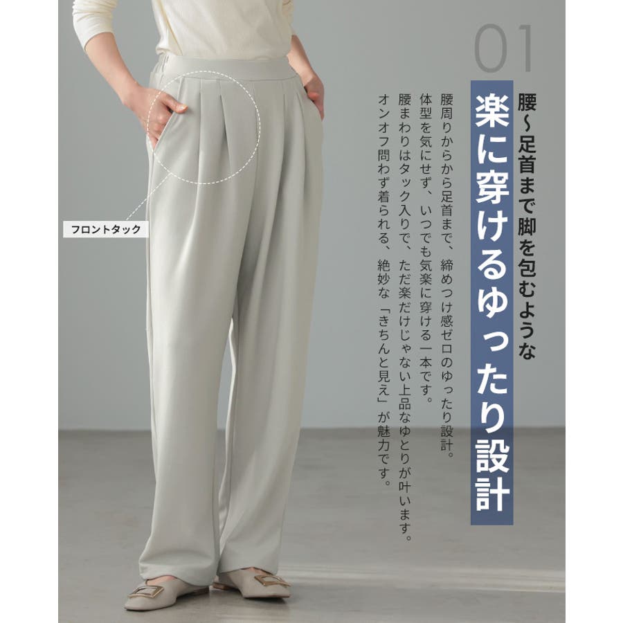 ウエストにたっぷりとタックを入れた、ラフに穿けるパンツ。