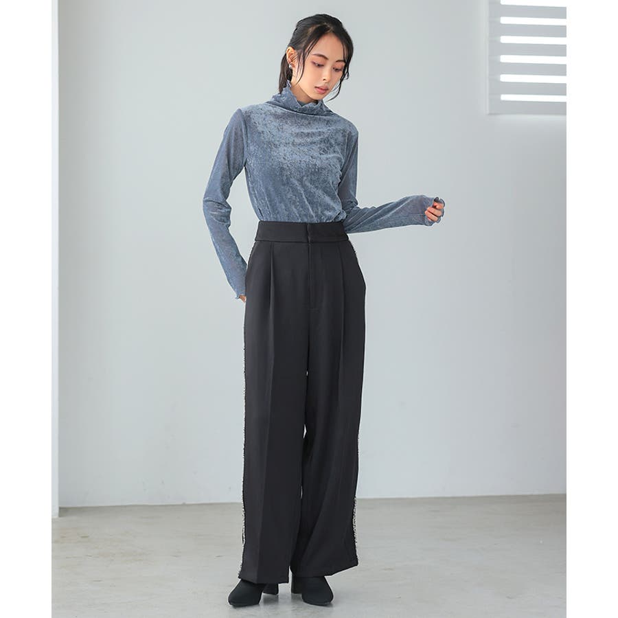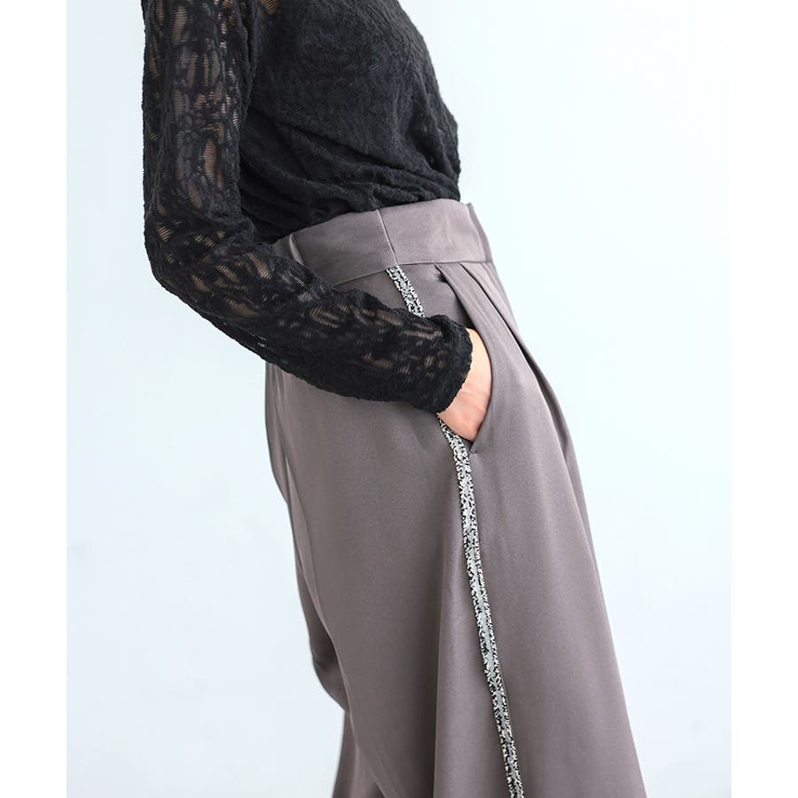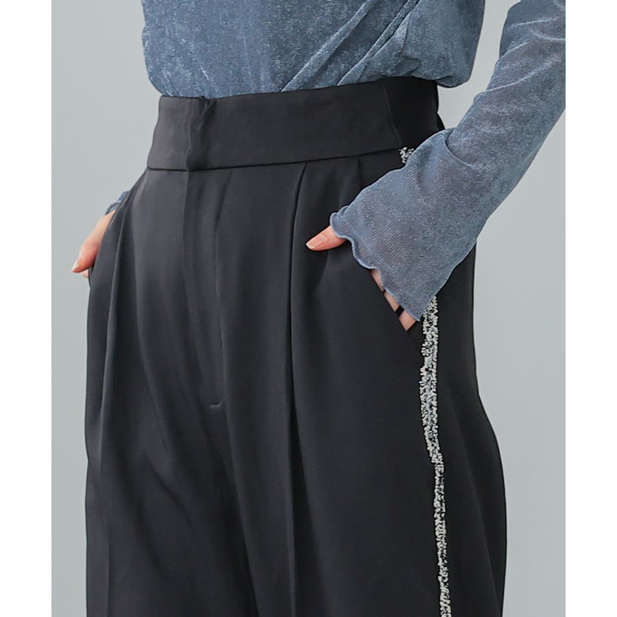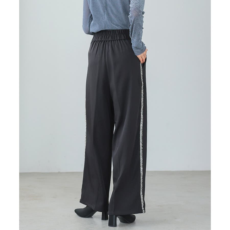 両サイドにラメ入りのフリンジラインが入ったパンツ。