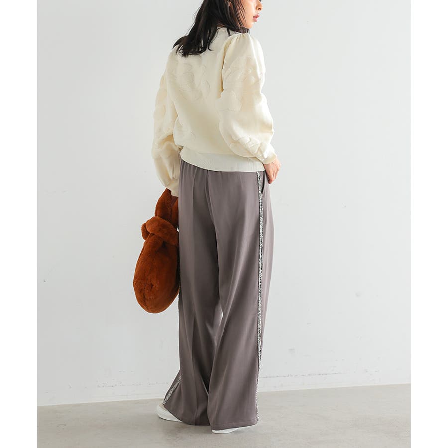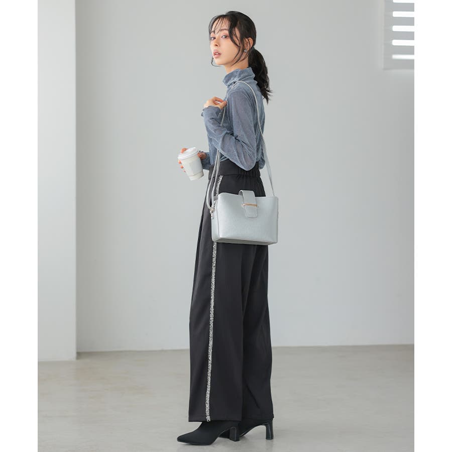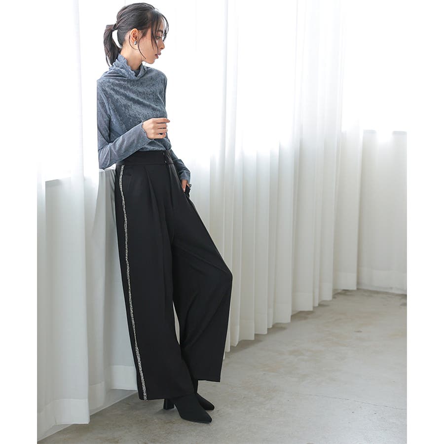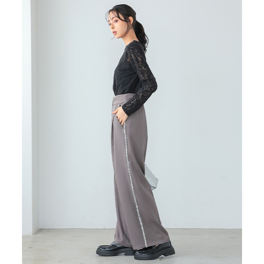 両サイドにラメ入りのフリンジラインが入ったパンツ。
