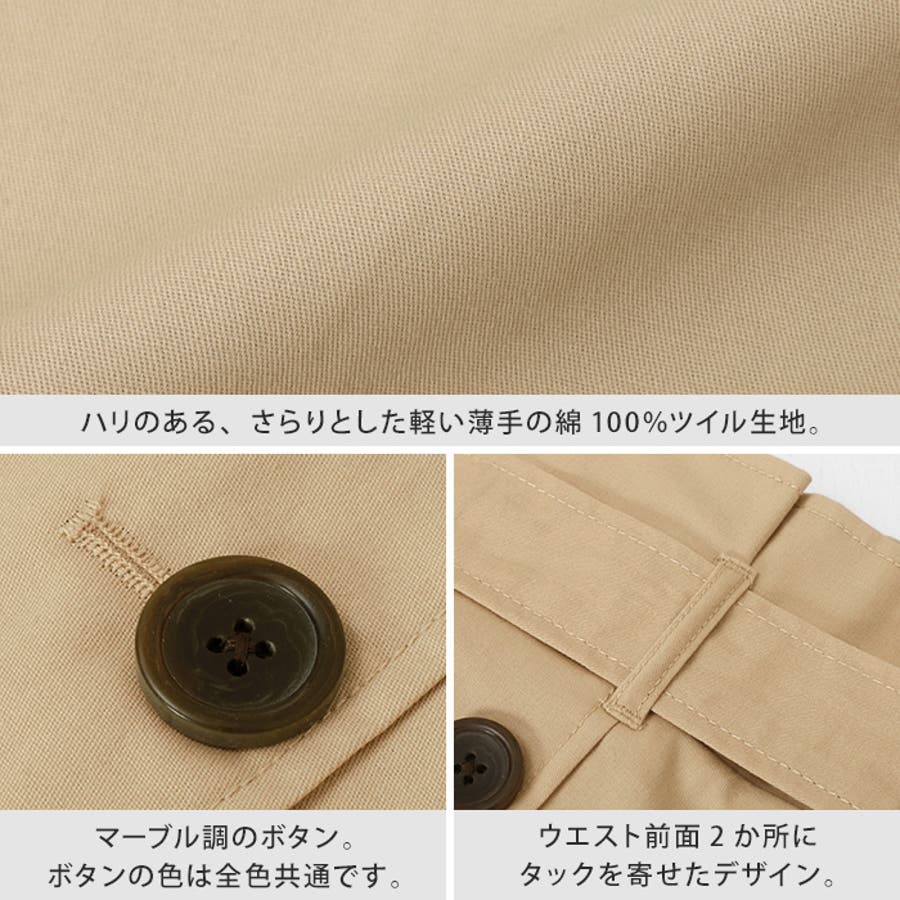トレンチコートのディテールそのままに、スカートを作ってみました。フロント部分にはボタン、サイドにはポケットを付けました。