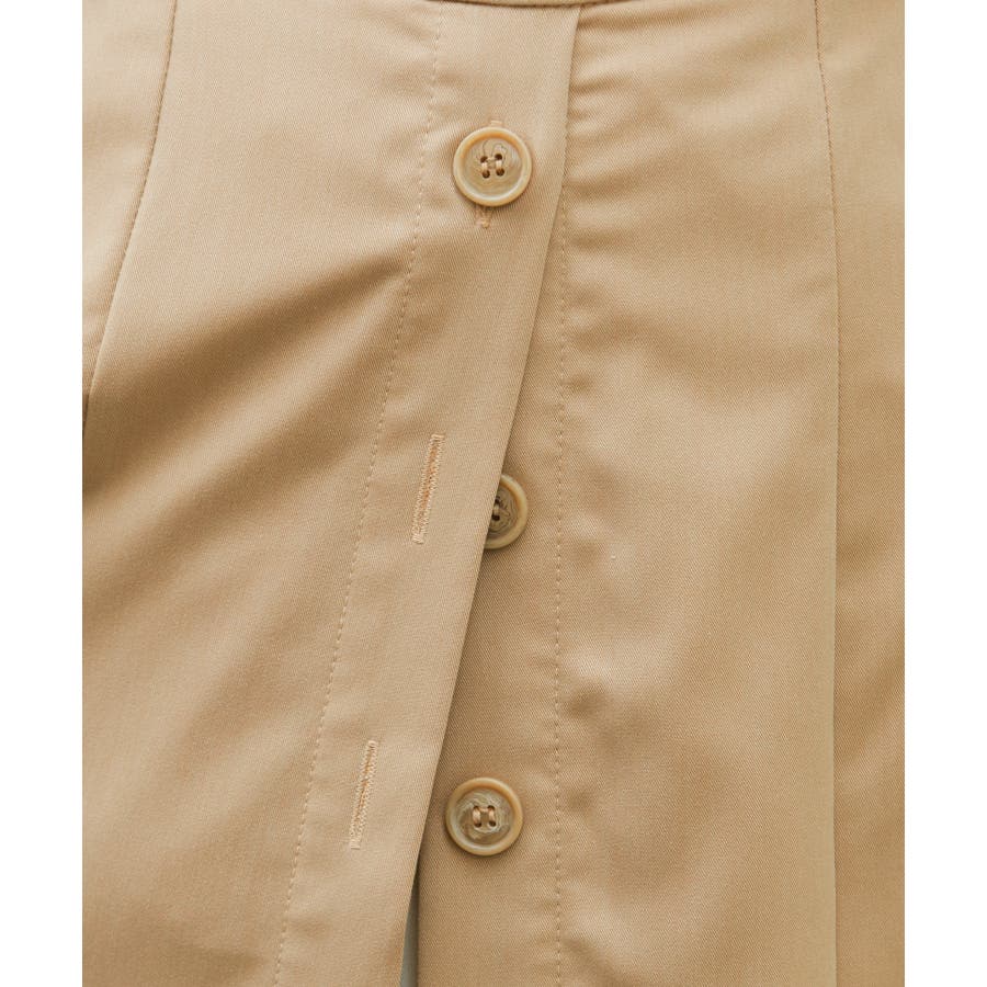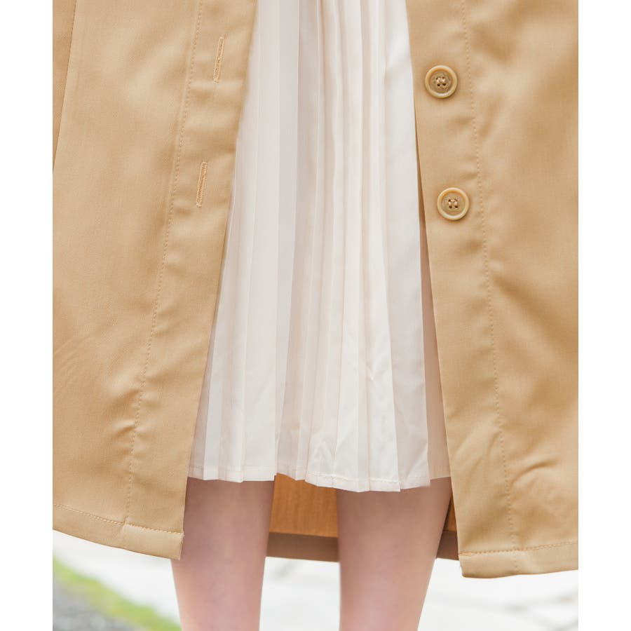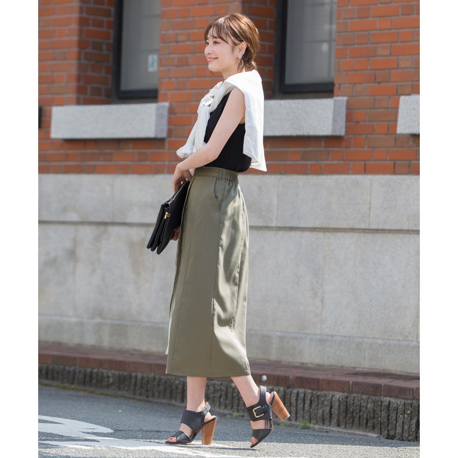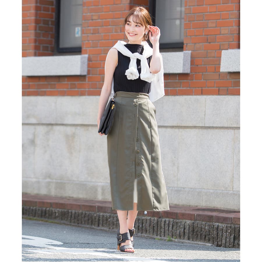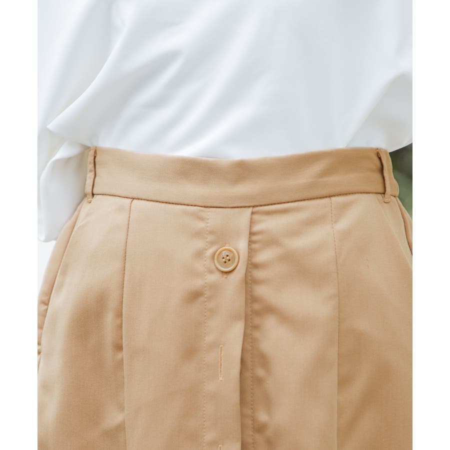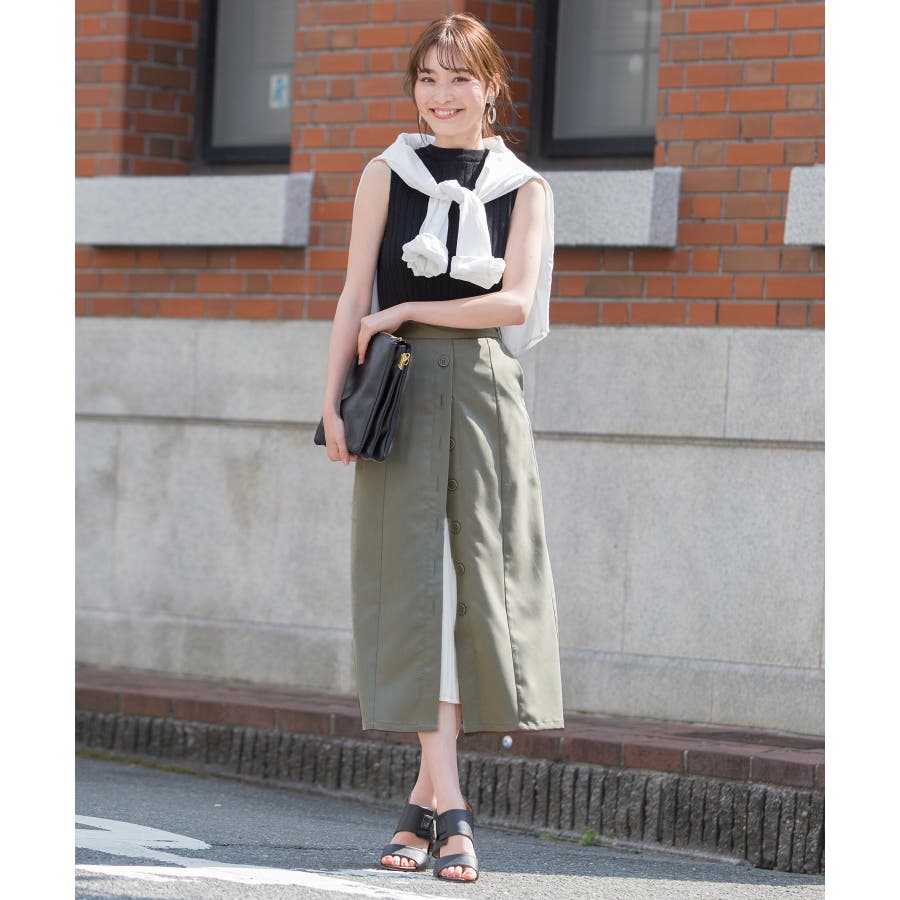 『女性らしさ高まる異素材使い。』縦長シルエットのスカートから、ちらりと見えるプリーツが印象的なデザイン。フロントにボタンを付け、計算されたシルエットに仕上がりました。表地はしっかりとしたツイル、プリーツは薄手の生地で美しく。大人女子にピッタリなアイテムです。