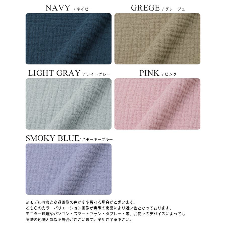 生地感:ふわっとした柔らかな手触りで、シワ感のあるダブルガーゼ生地