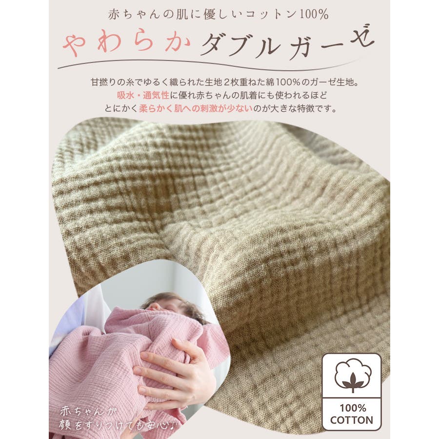 肌に優しい綿100%のダブルガーゼ生地で、安心してお使いいただけます。