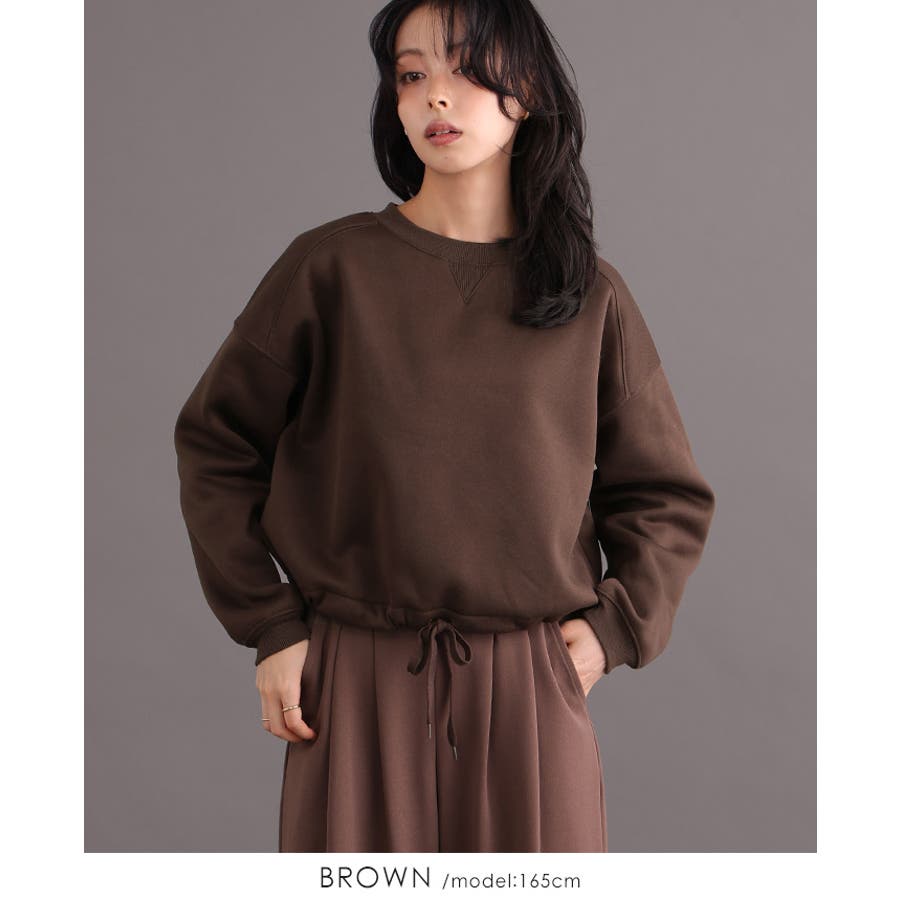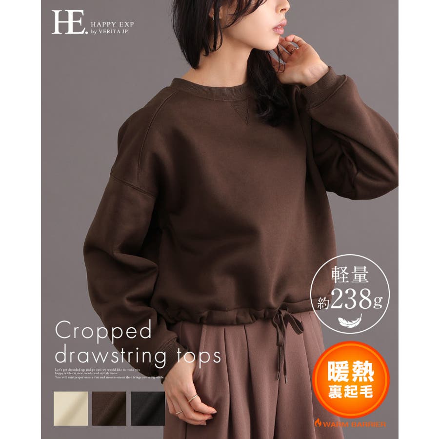 スタイルアップする、あったかアイテム。裾ドロスト裏起毛ショートトップス 裏起毛
