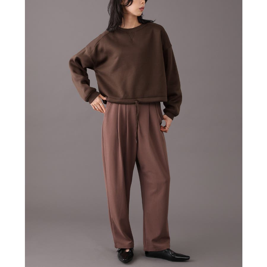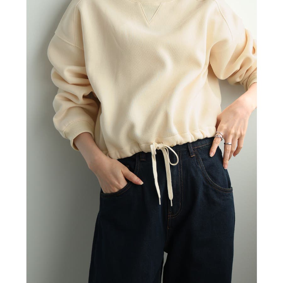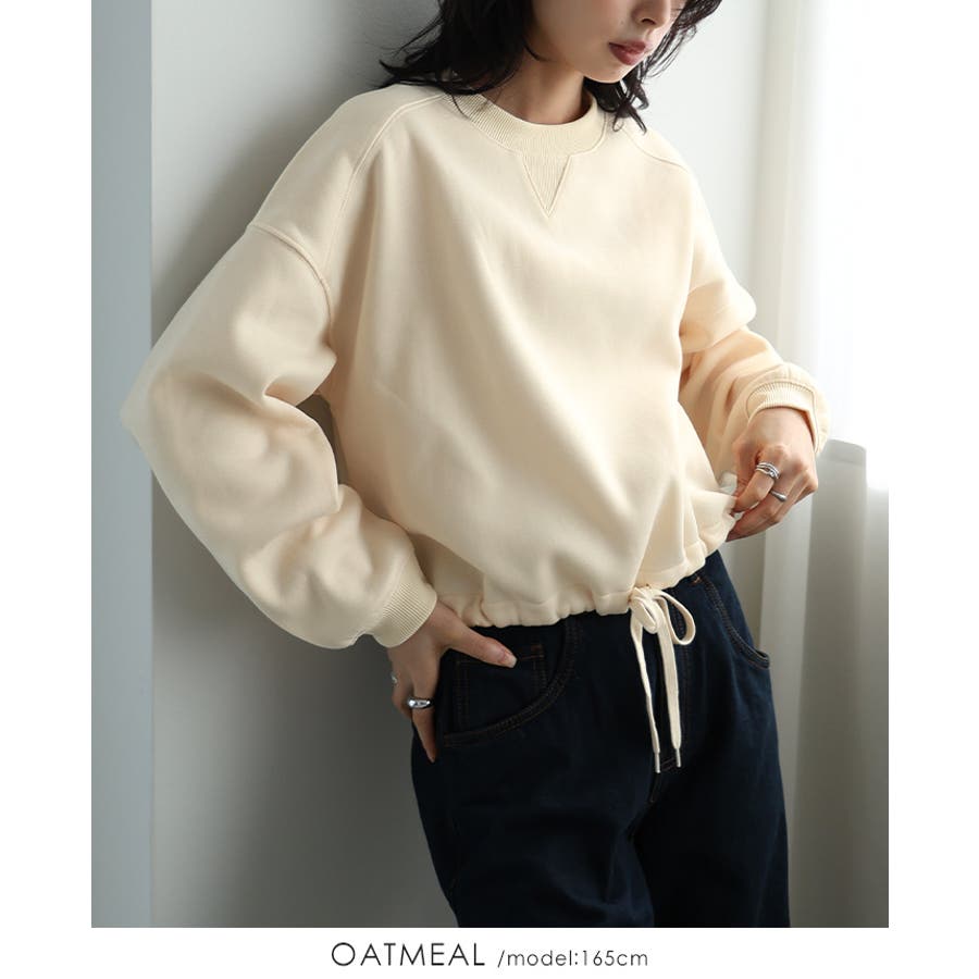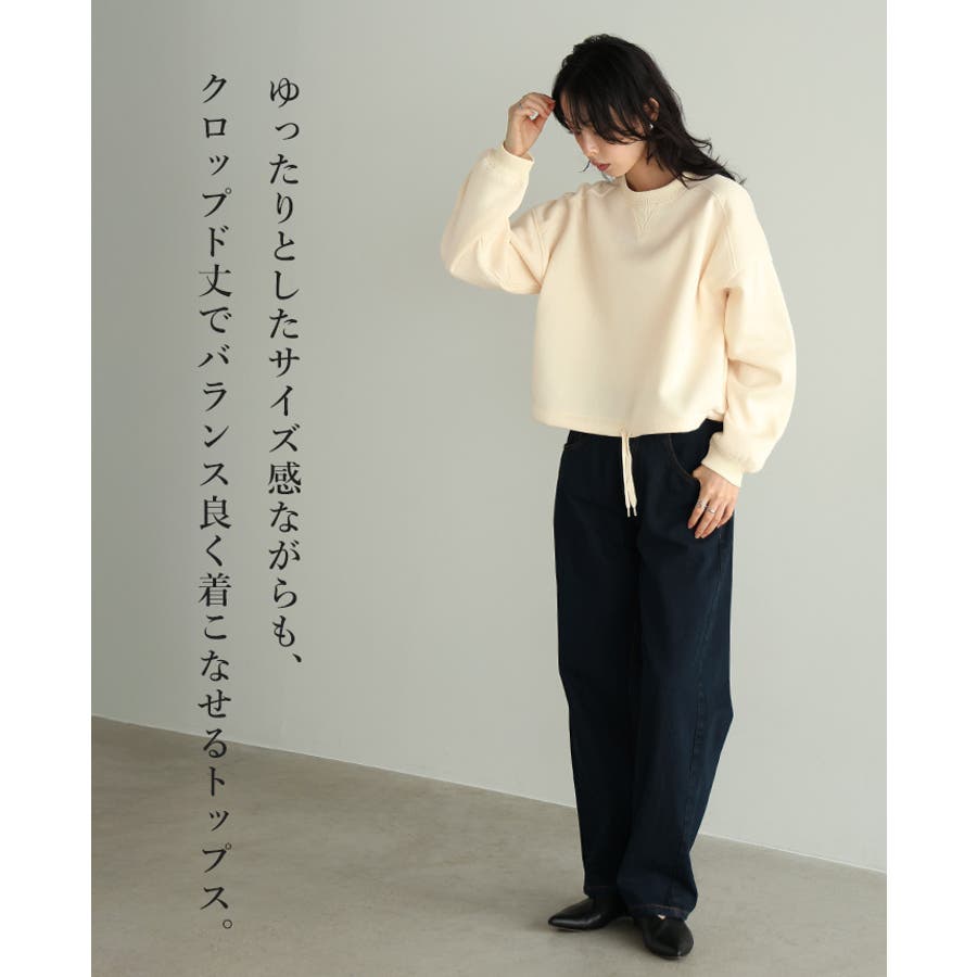 寒い時期に活躍してくれる、クロップド丈の裏起毛トップス。