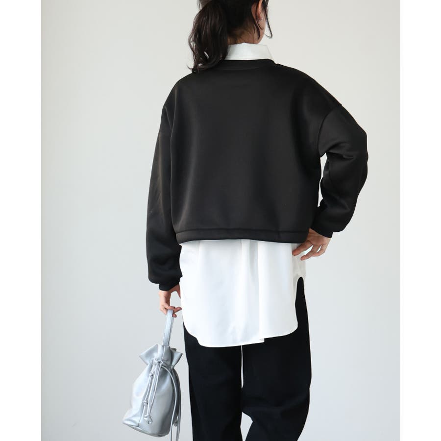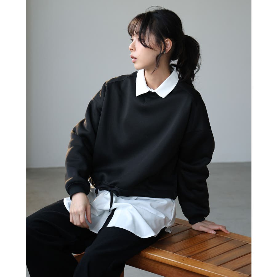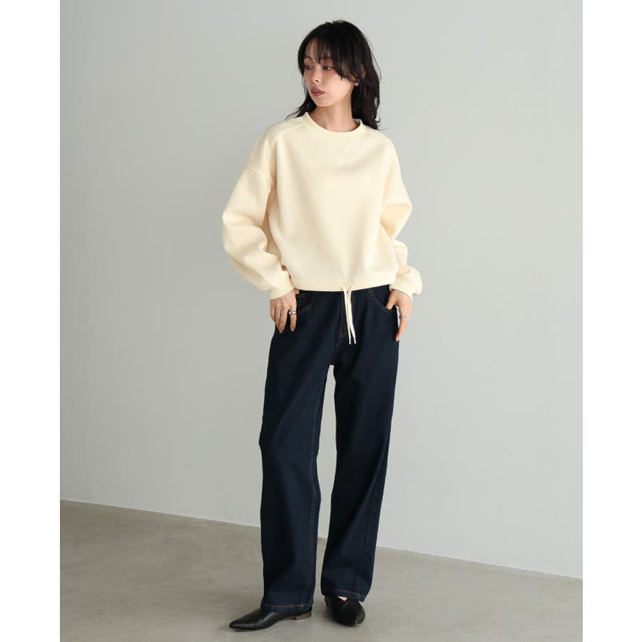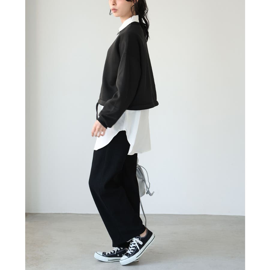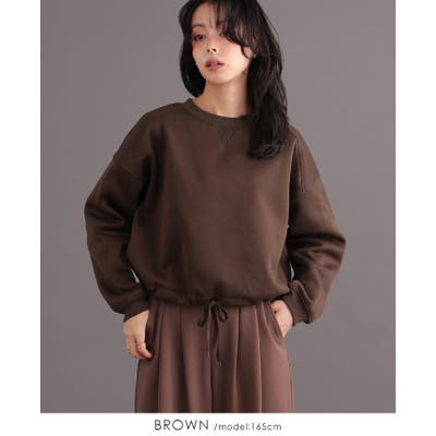 寒い時期に活躍してくれる、クロップド丈の裏起毛トップス。