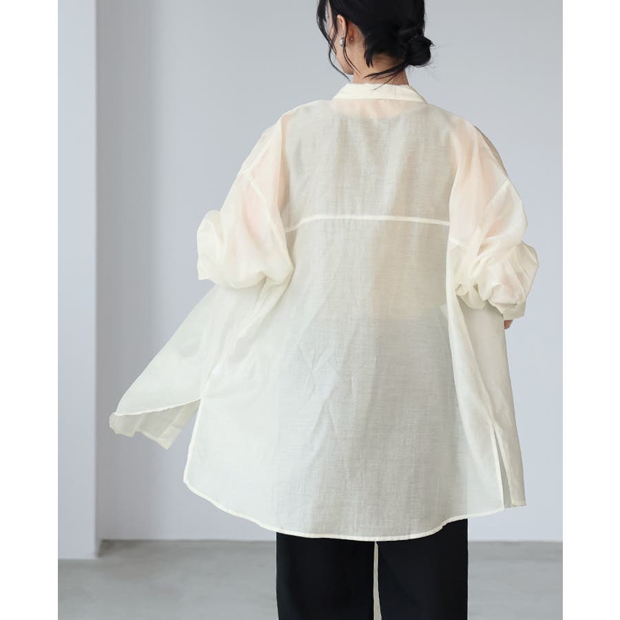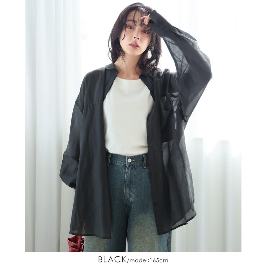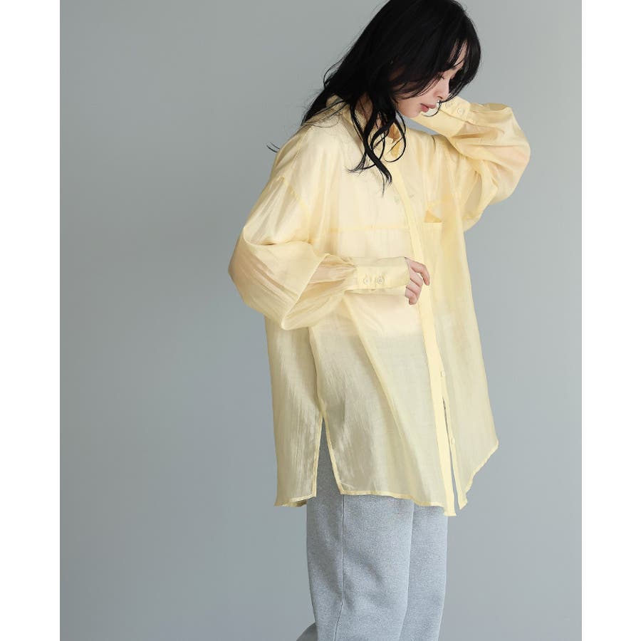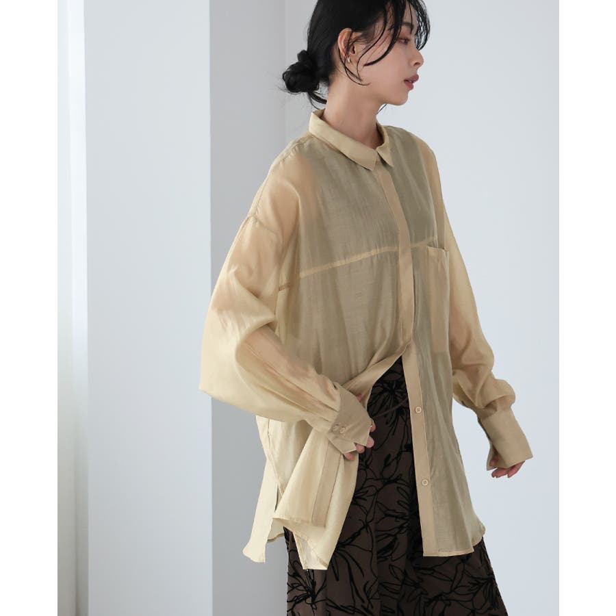 こなれ感を作るビッグシルエット。シアーゆったりブラウス シャツ 春ブラウス