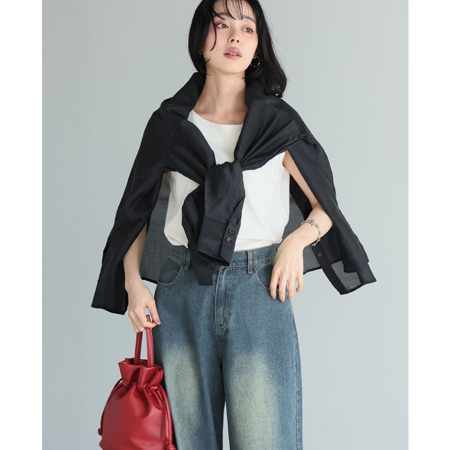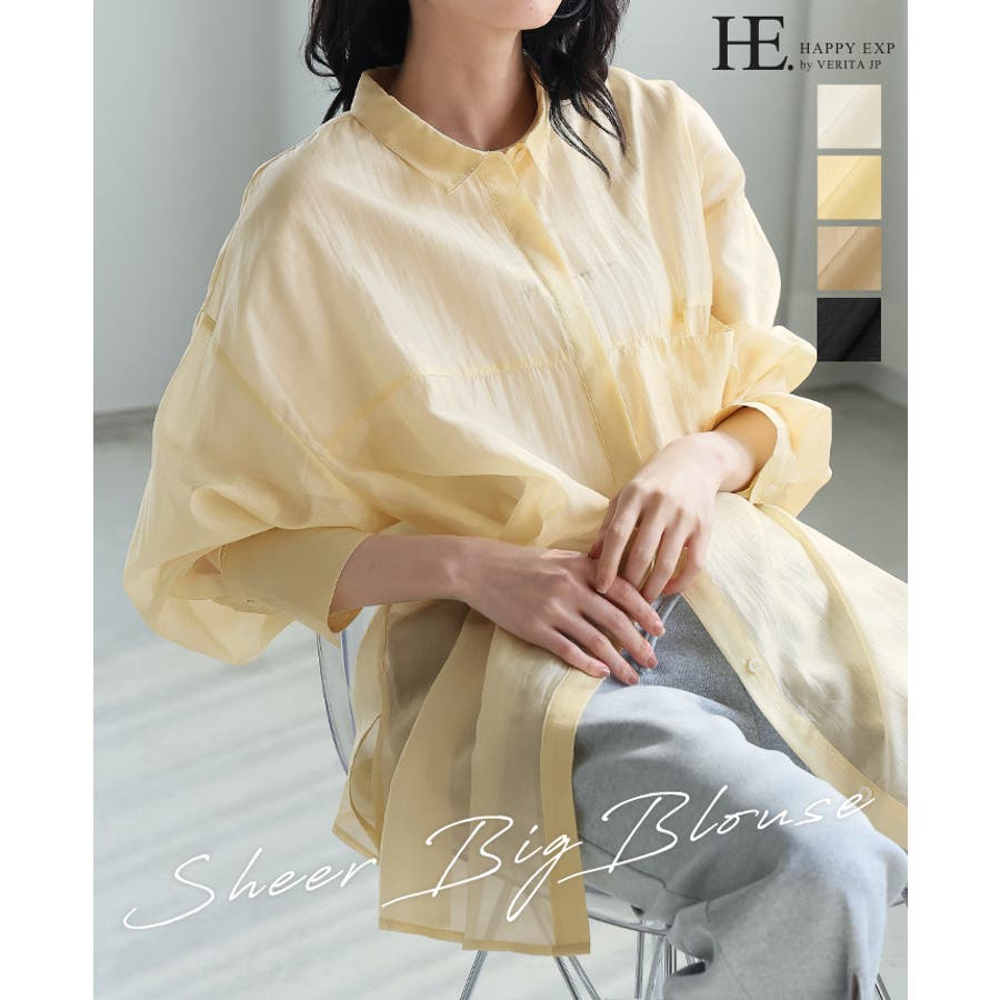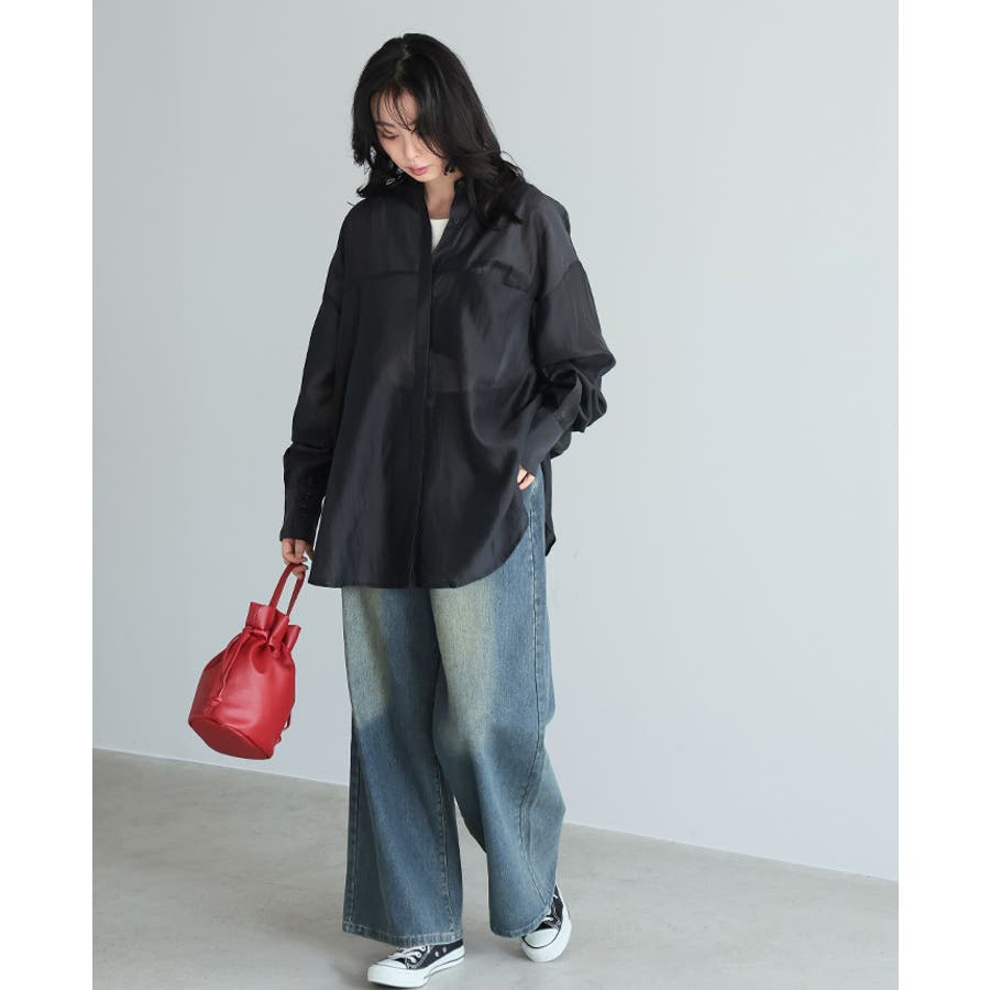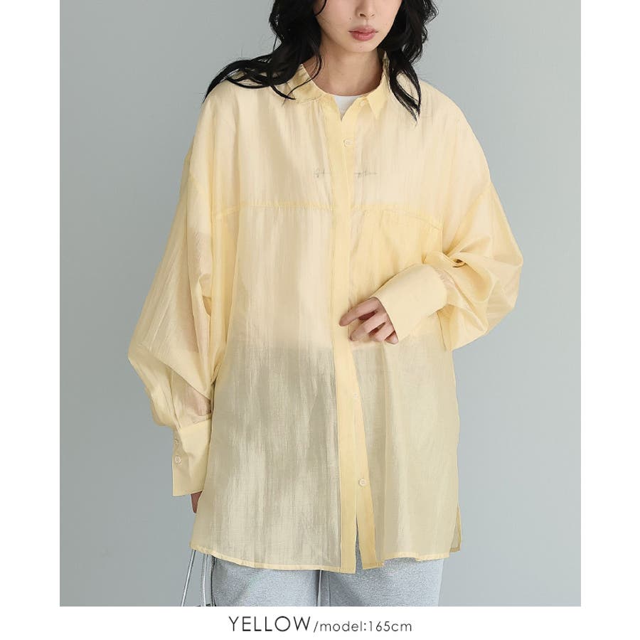 こなれ感を作るビッグシルエット。シアーゆったりブラウス シャツ 春ブラウス