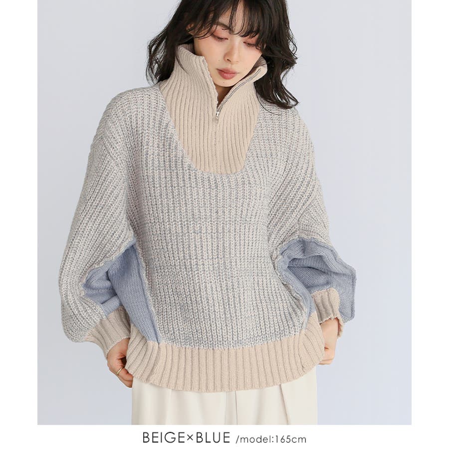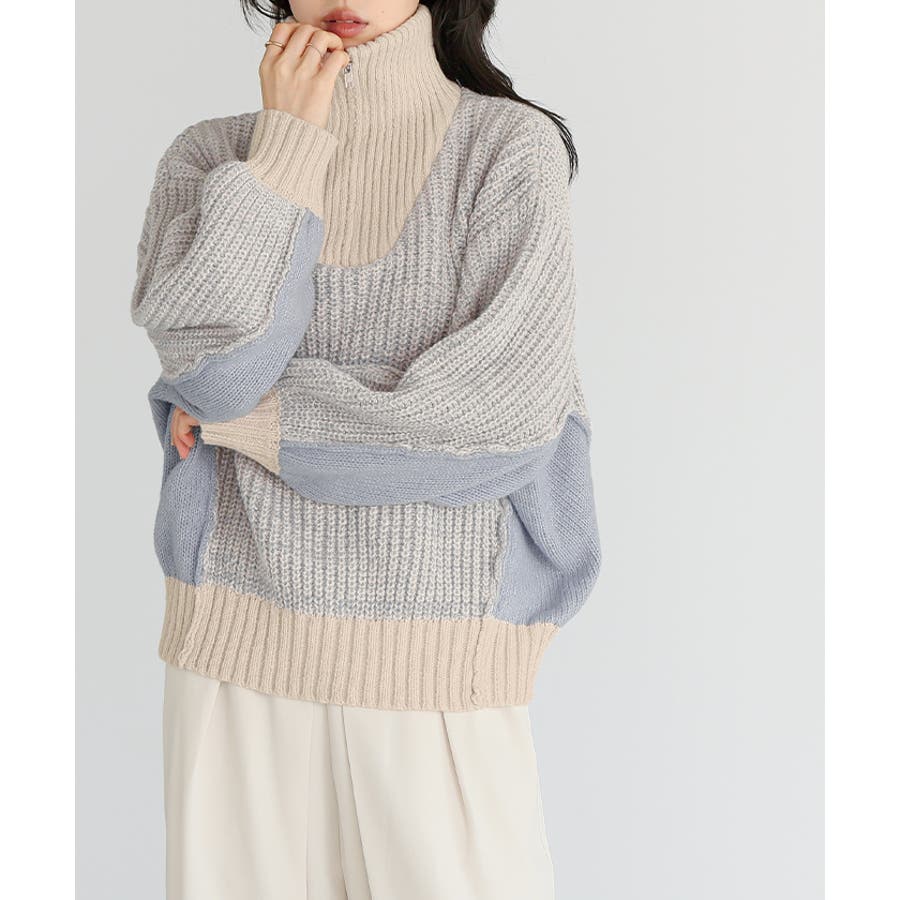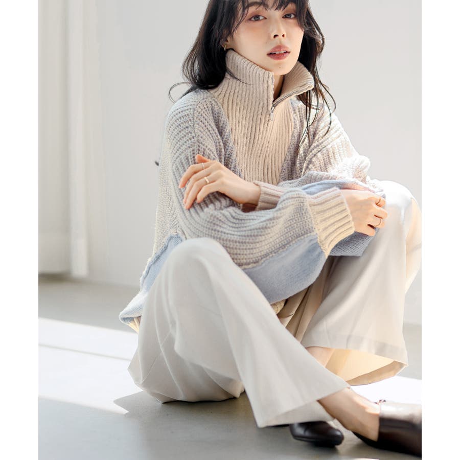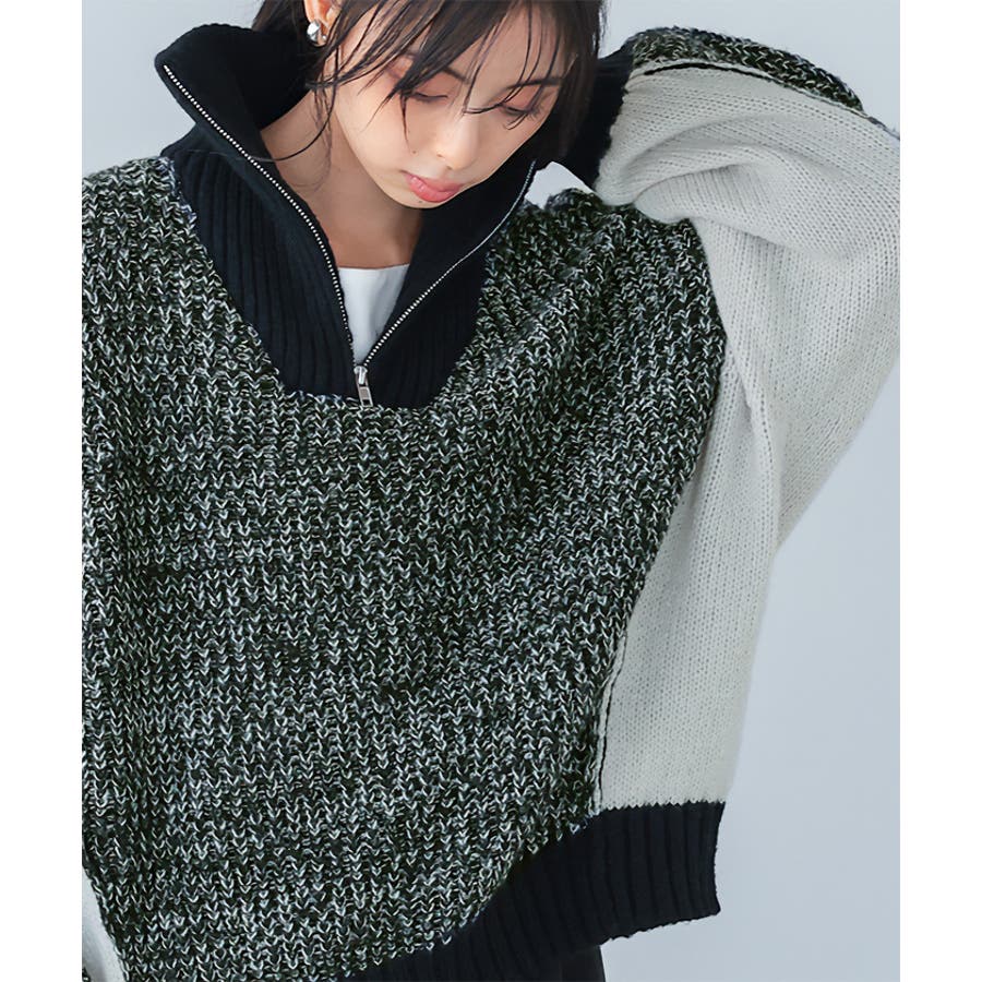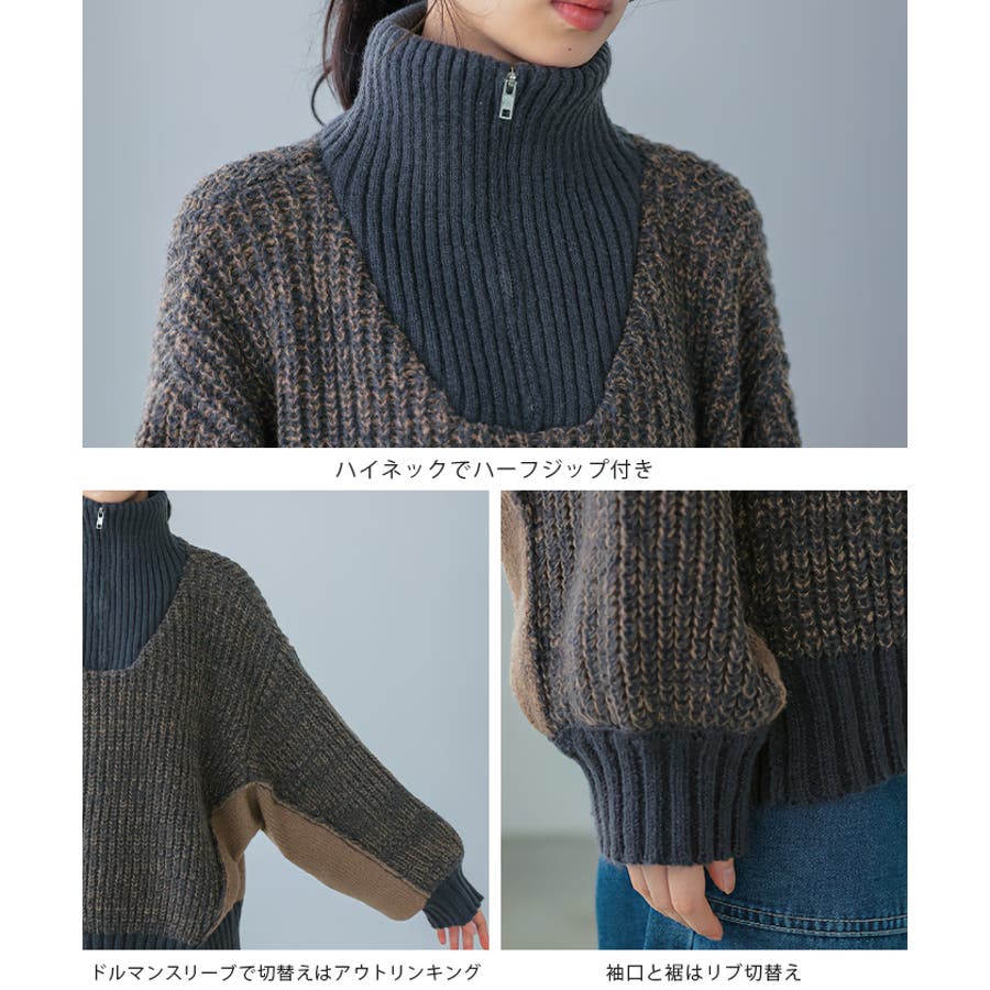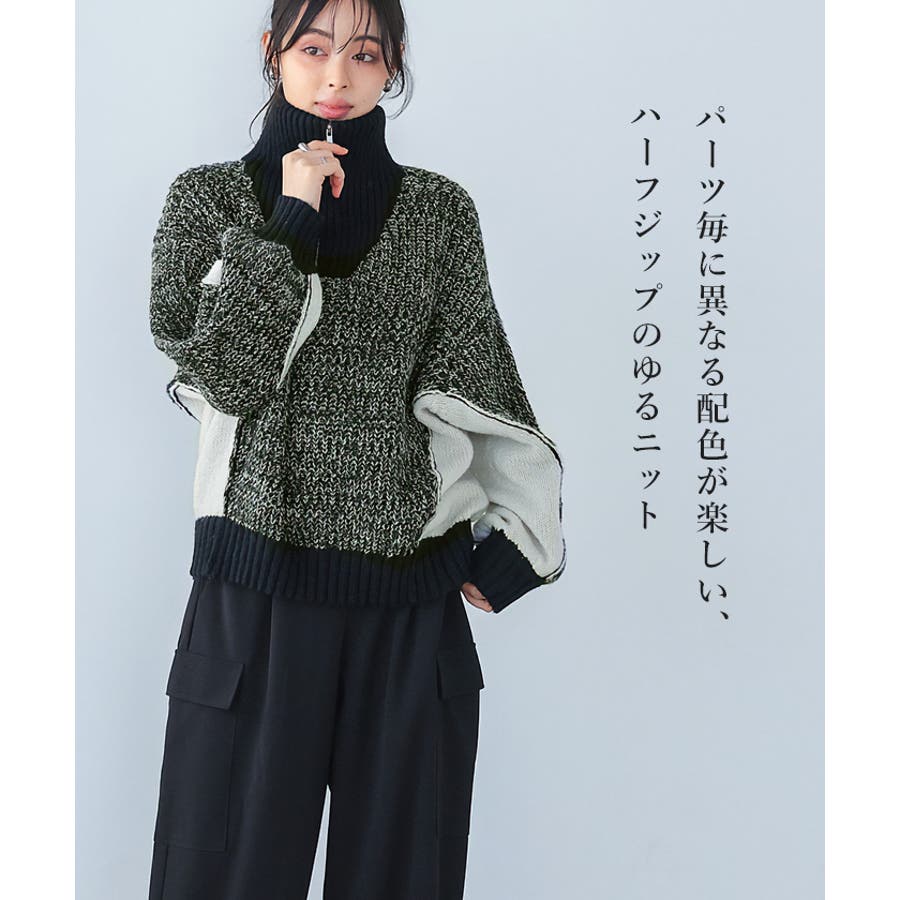旬のあったかニット。配色ハーフジップニット ニット セーター