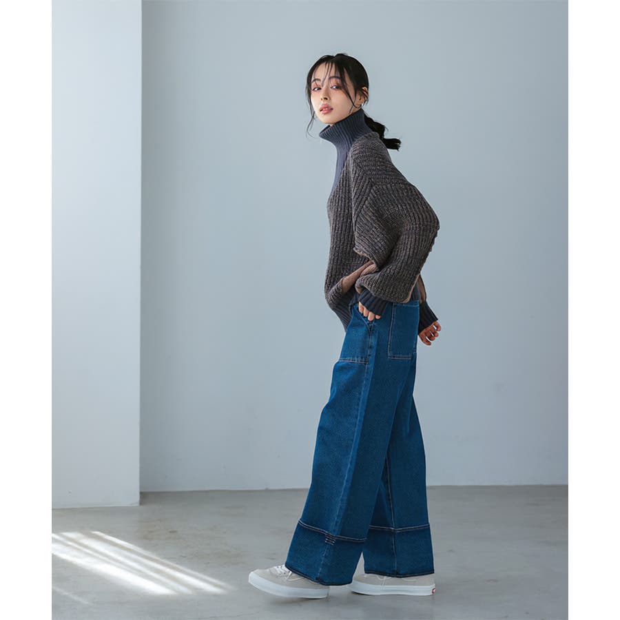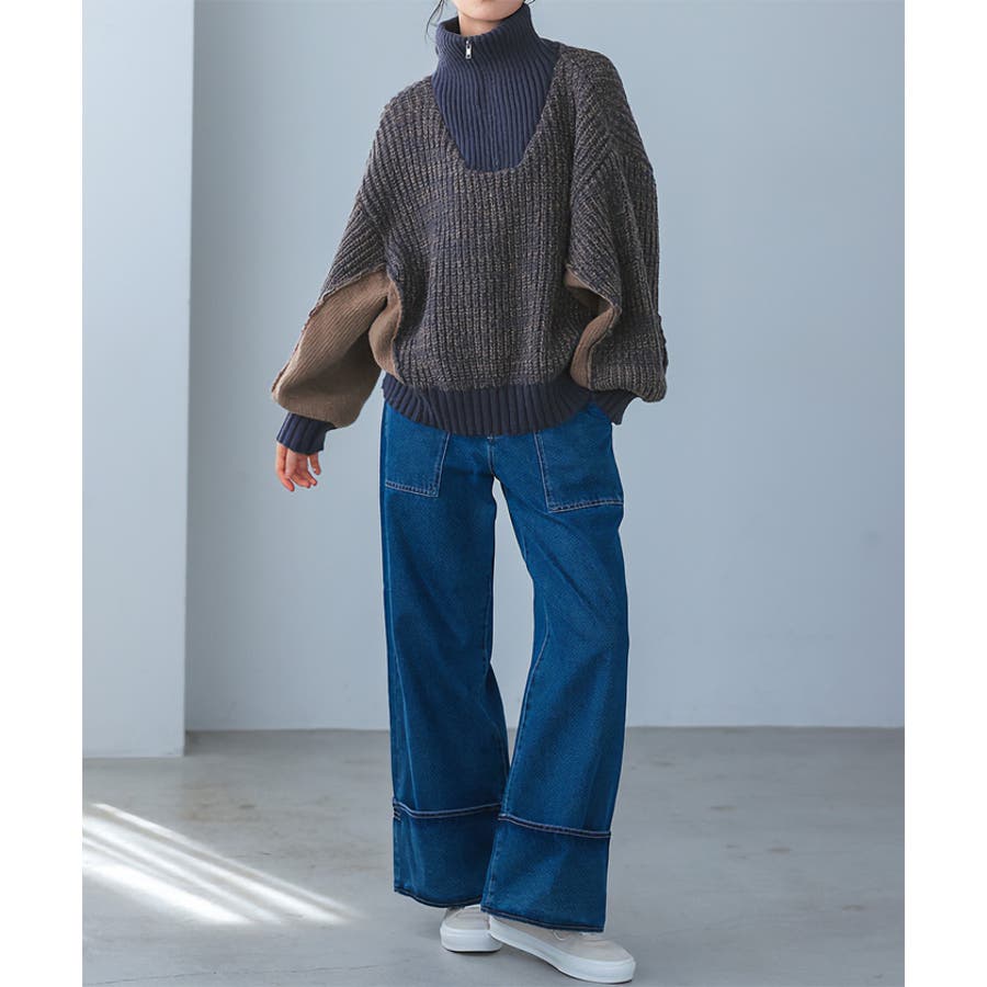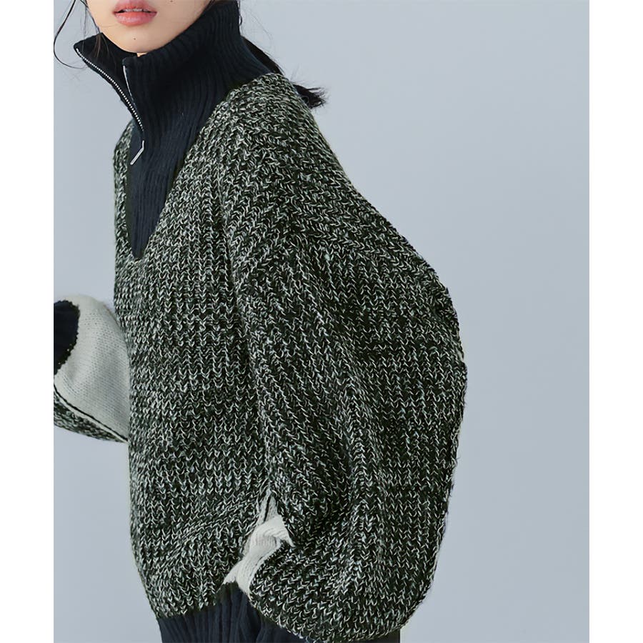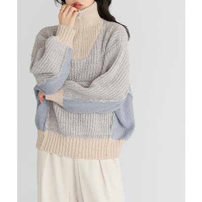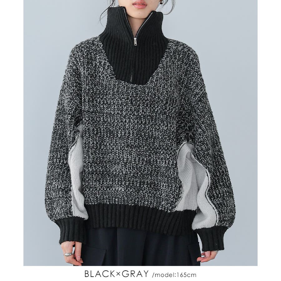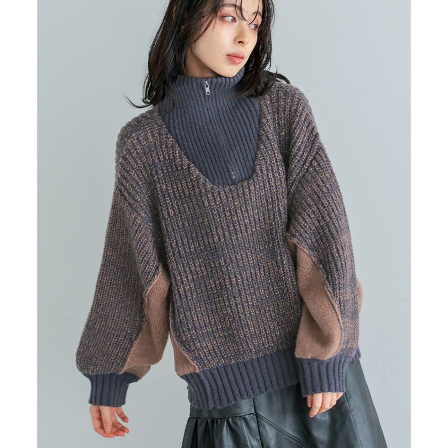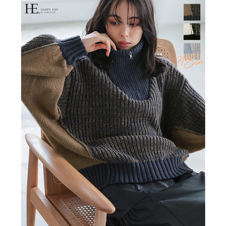 旬のあったかニット。配色ハーフジップニット ニット セーター