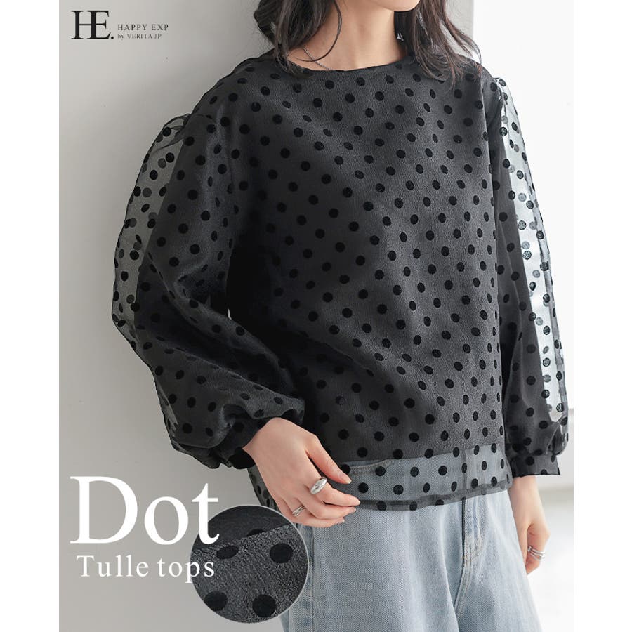 肌を見せたくない方必見。ドットチュールトップス シアー ドット