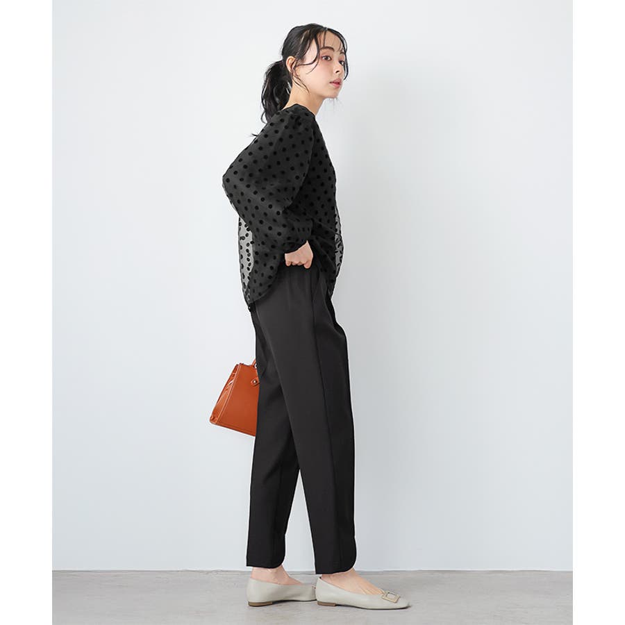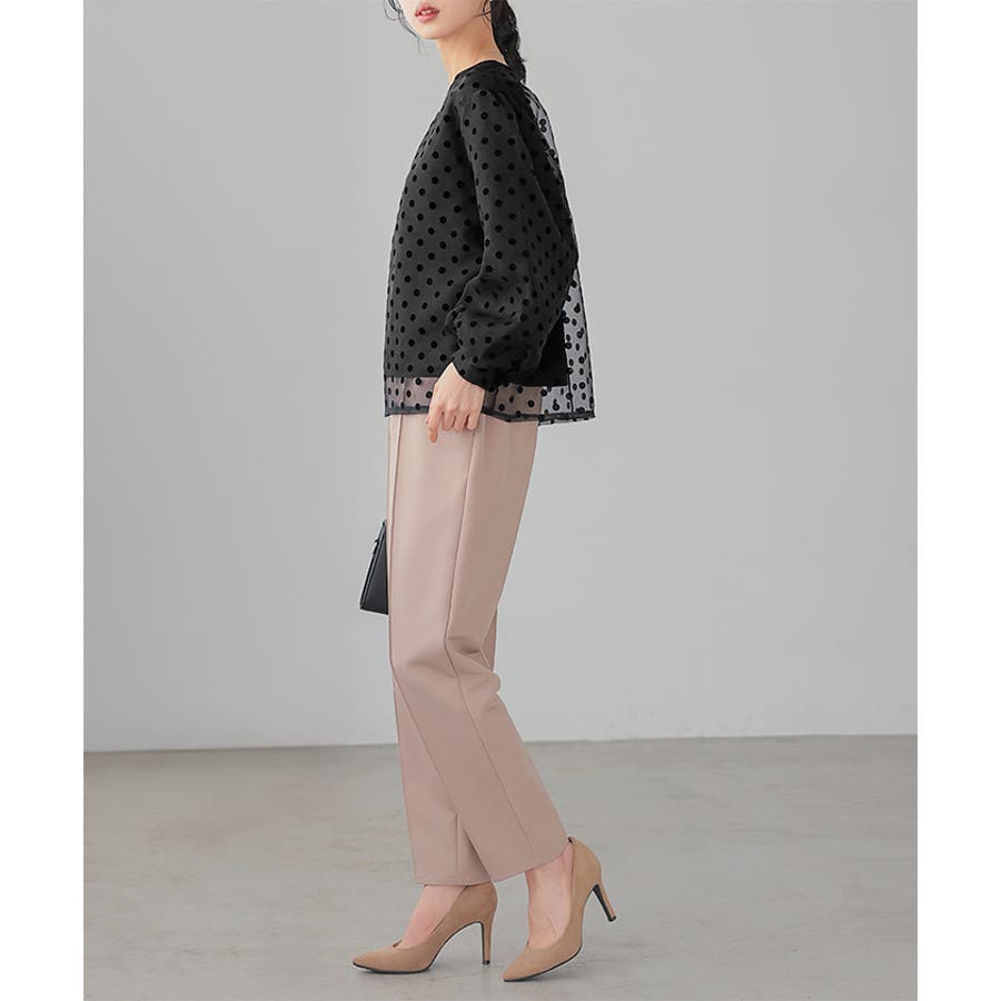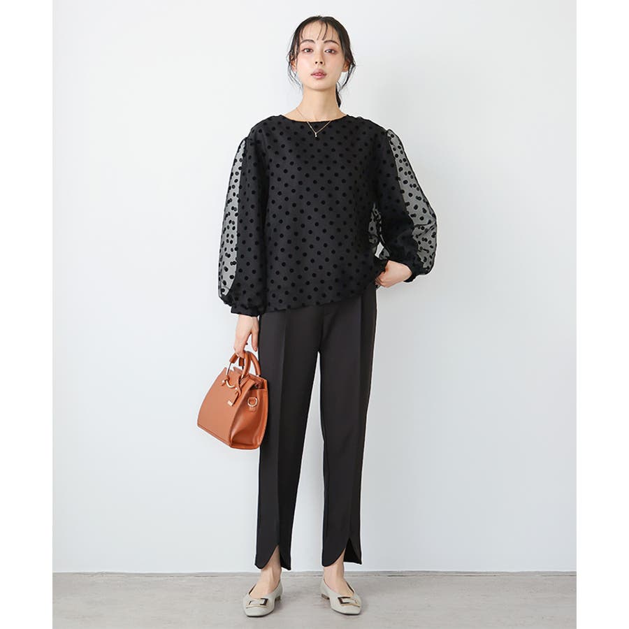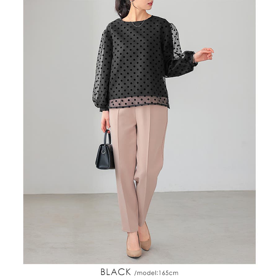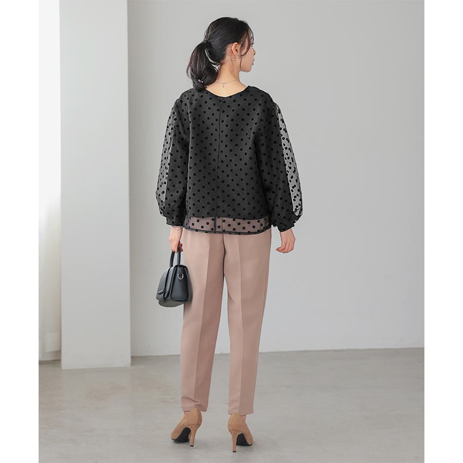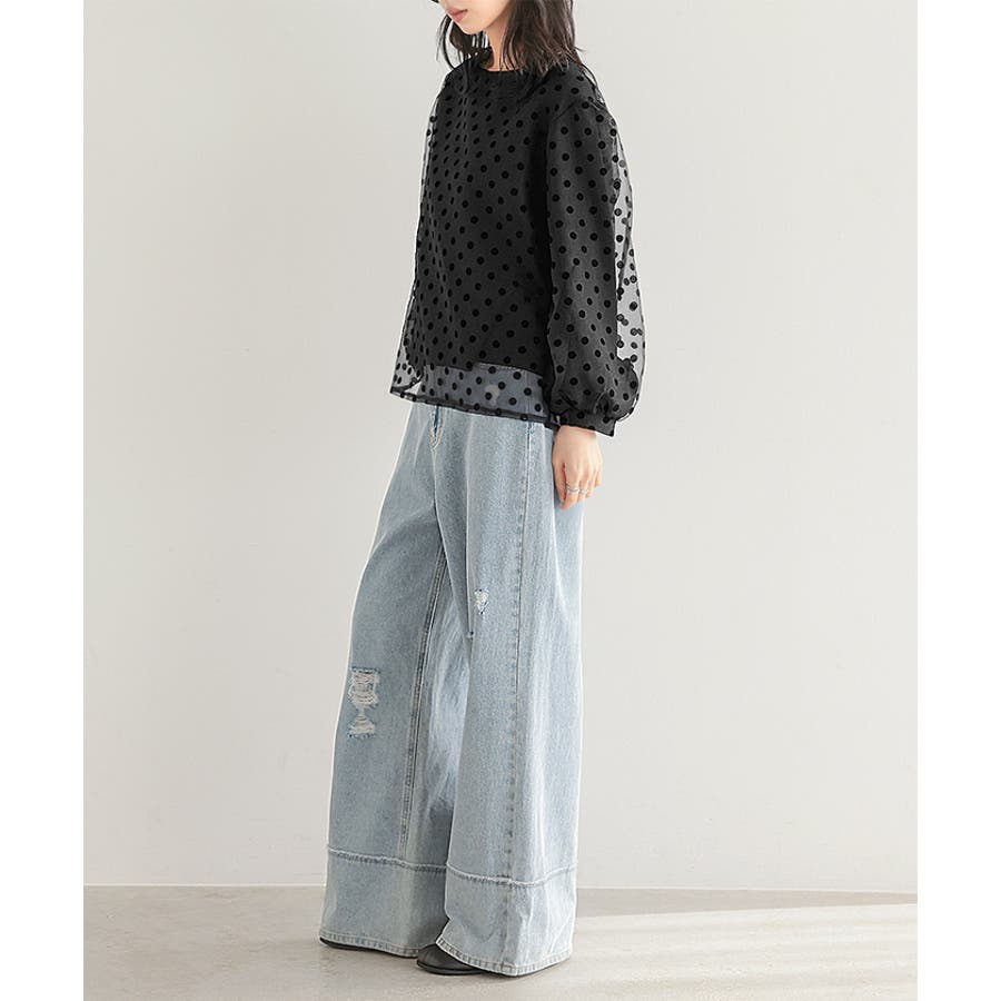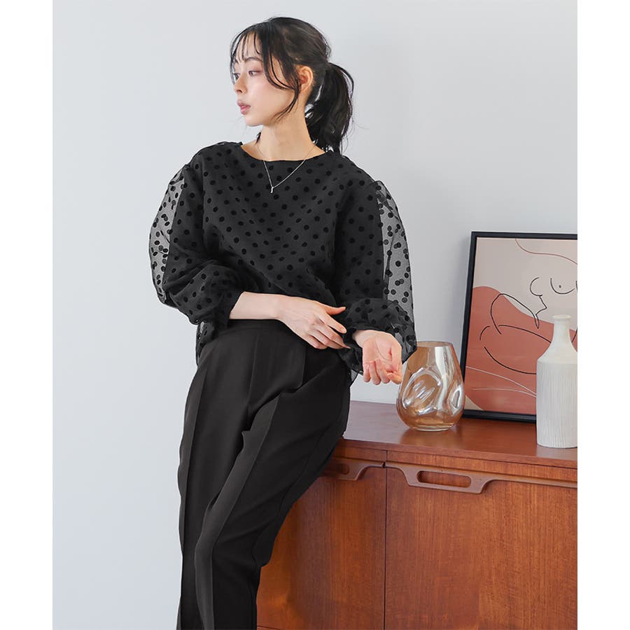エアリーなシアー生地に、フロッキーのドット柄をプリントしたトップス。