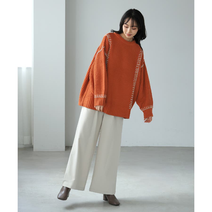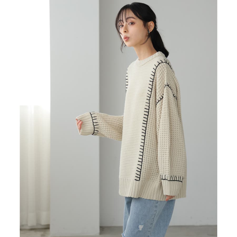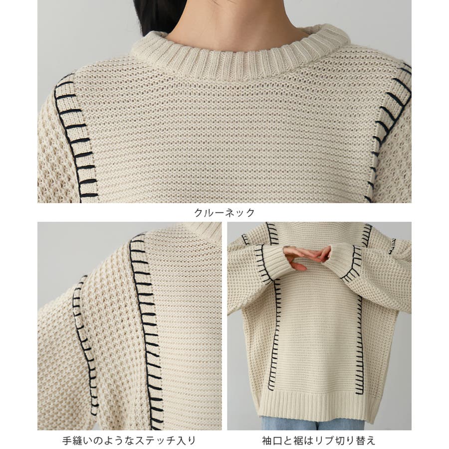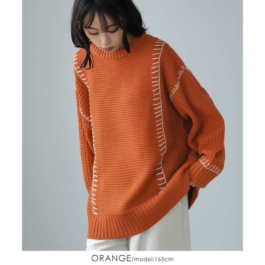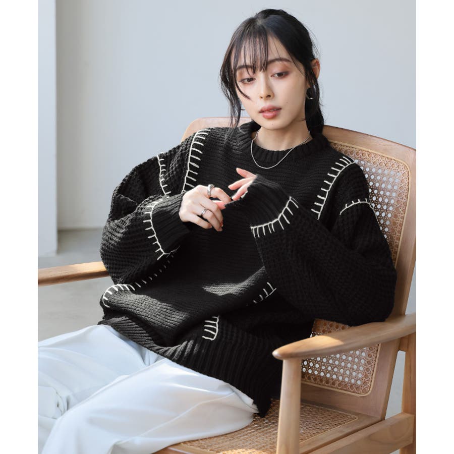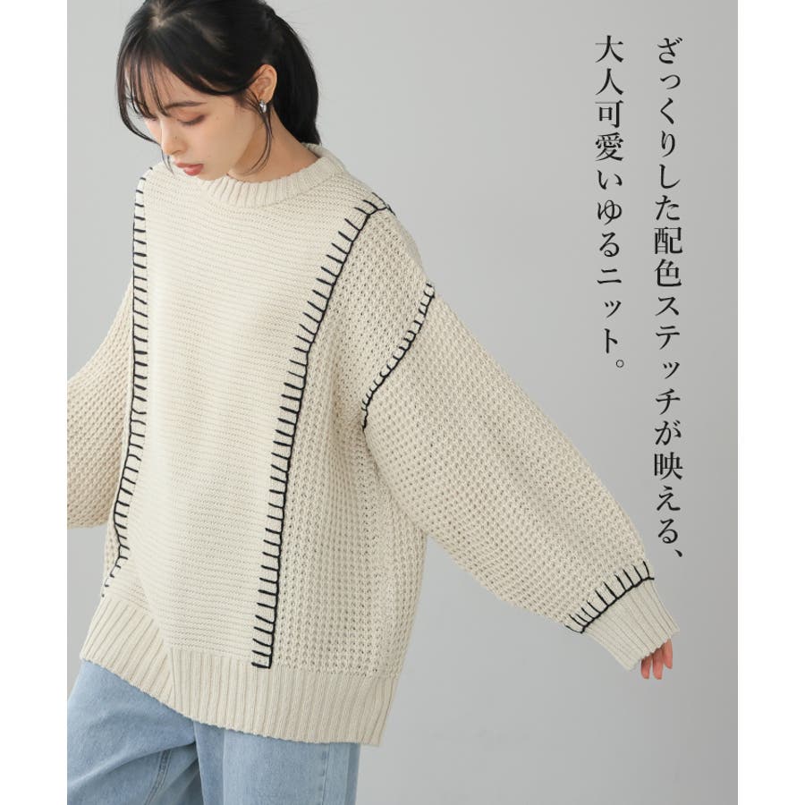 ざっくりステッチが映える。配色ブランケットニット ニット セーター