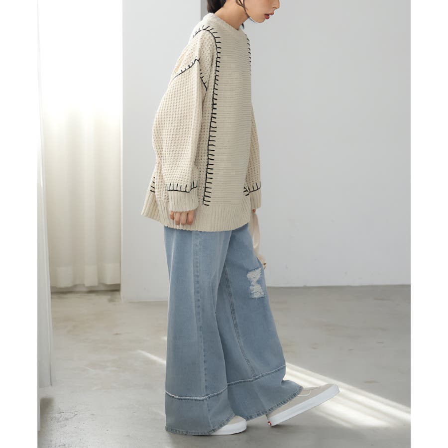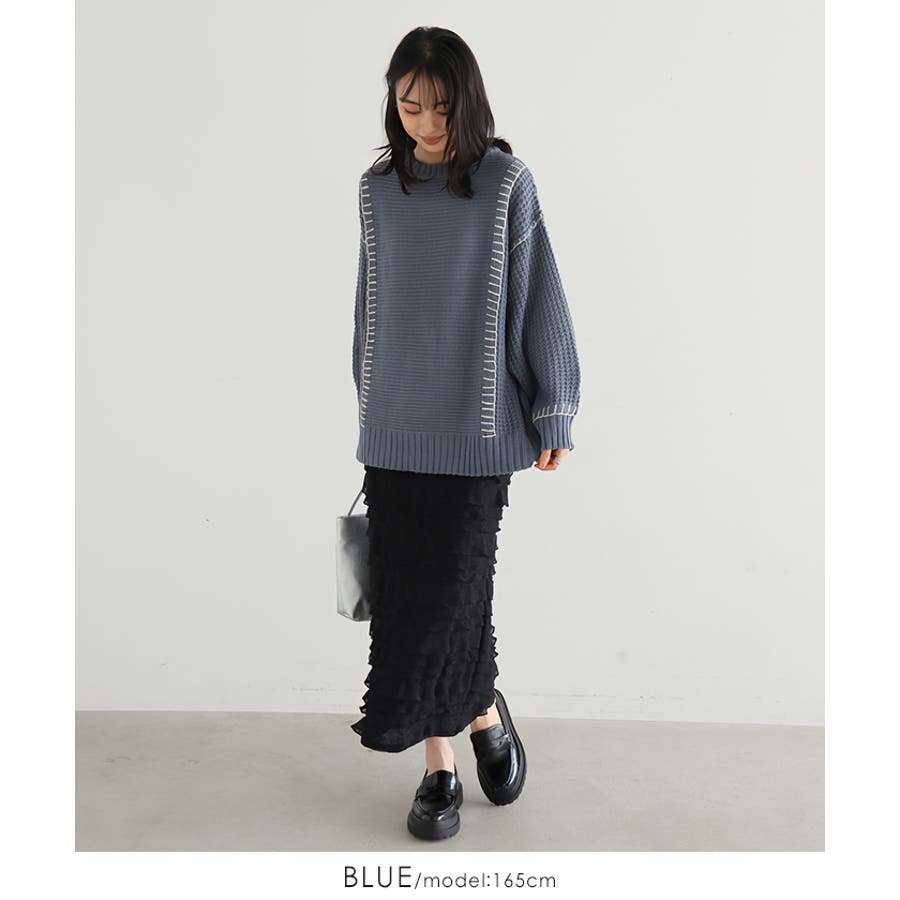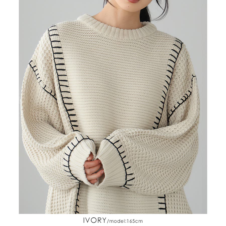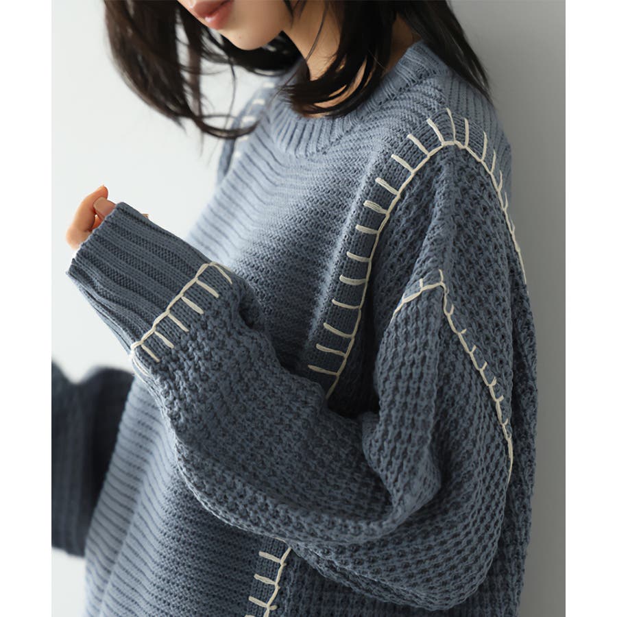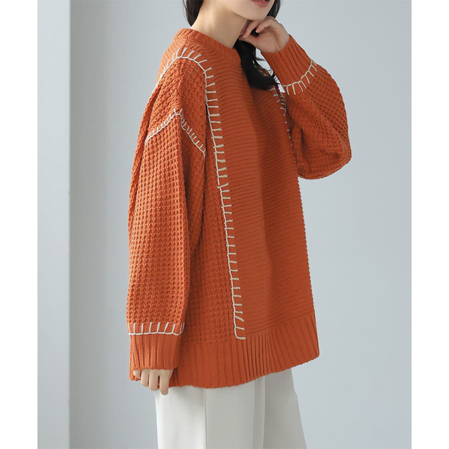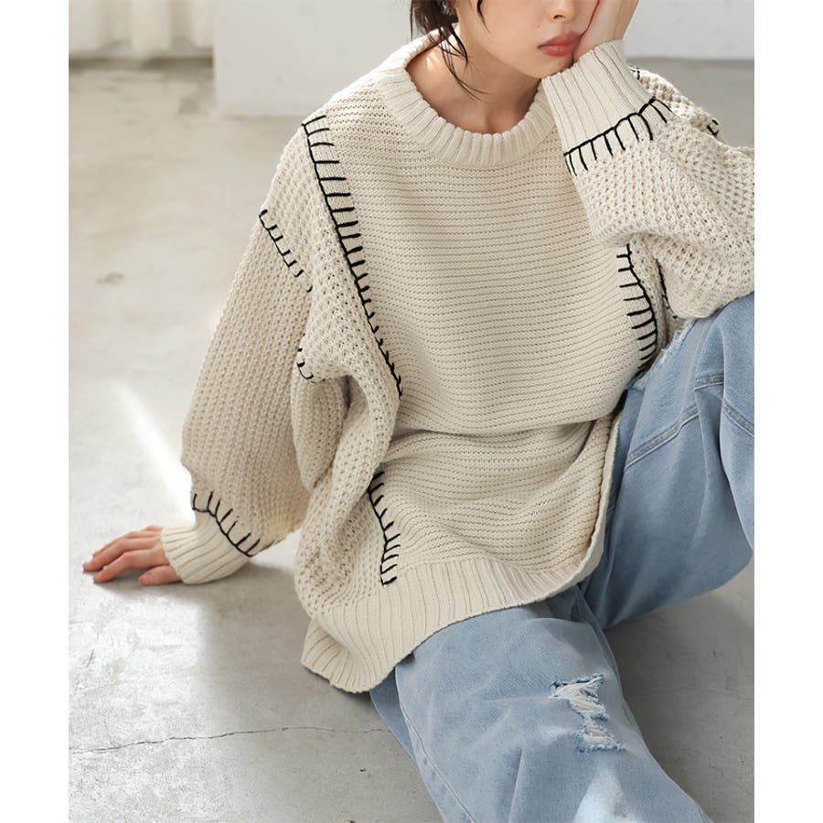 ざっくりステッチが映える。配色ブランケットニット ニット セーター