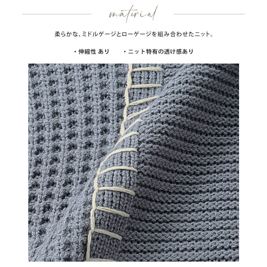 生地感:柔らかな、ミドルゲージとローゲージを組み合わせたニット