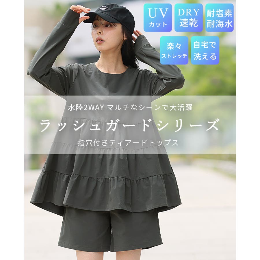指穴付きティアードトップス ラッシュガード 紫外線対策
