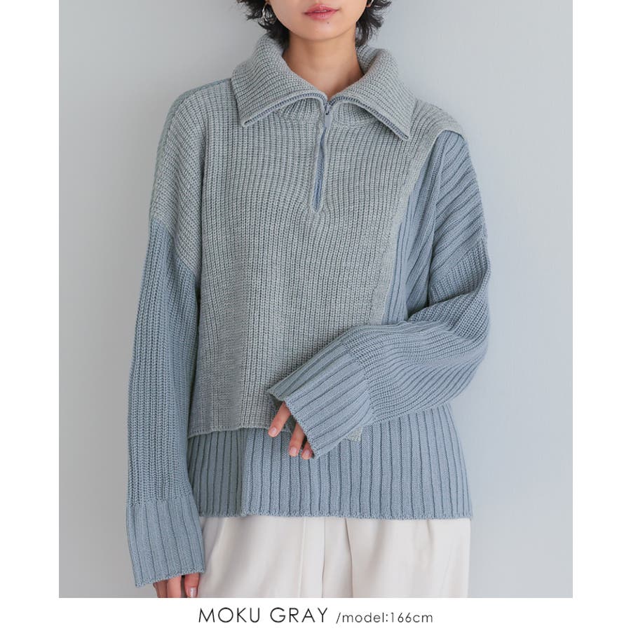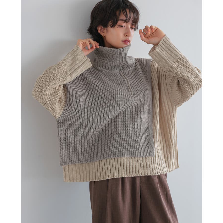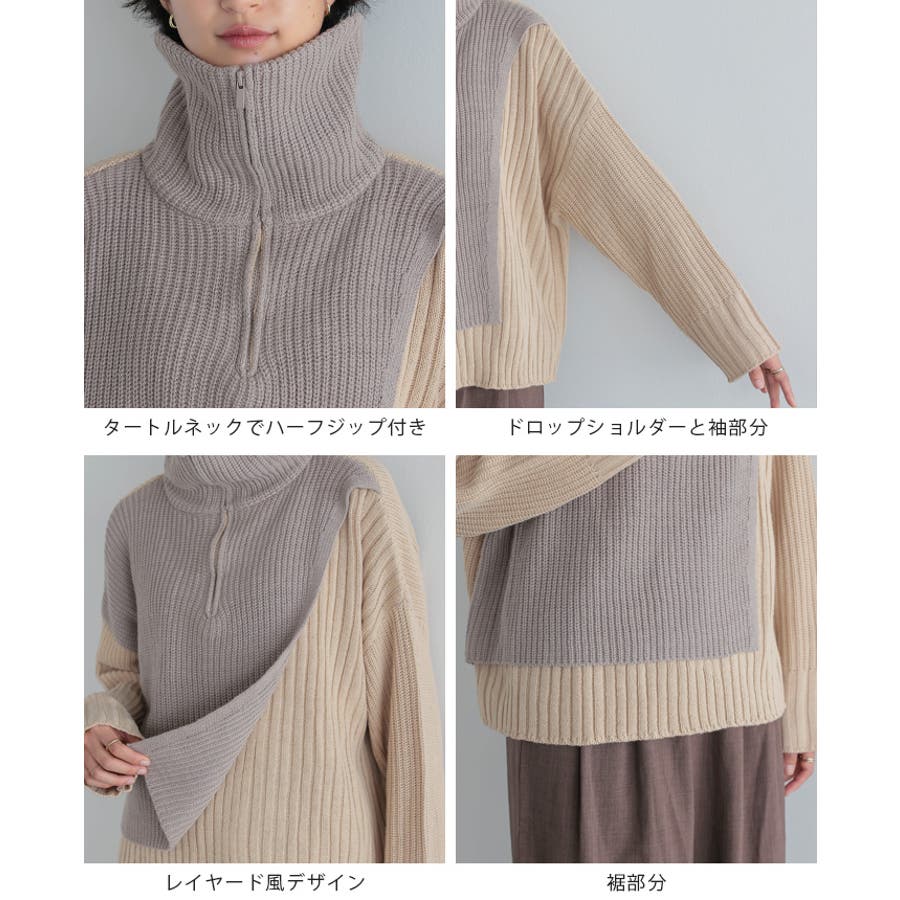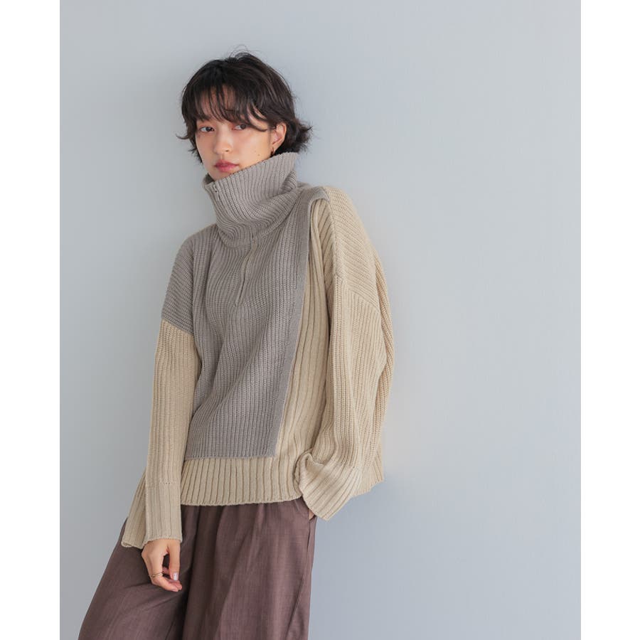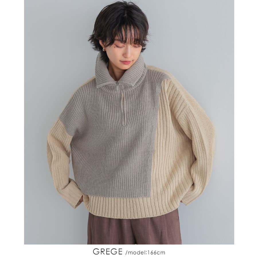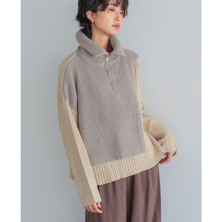 今っぽさをネックで表現。配色ハーフジップニット ニット セーター