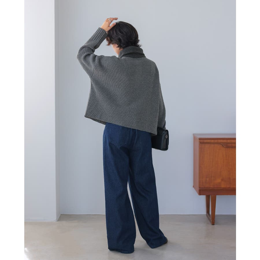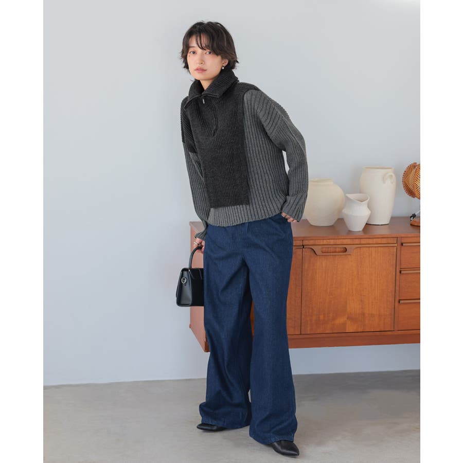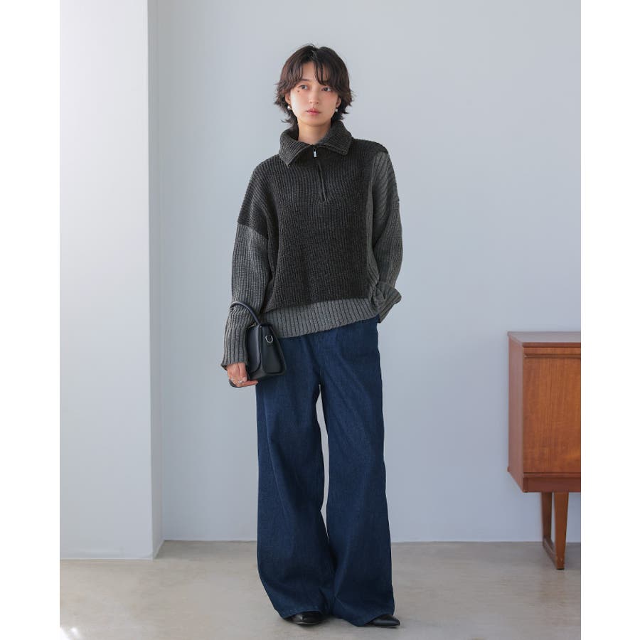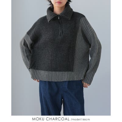 ネックの形で印象が変わる、ハーフジップ付きのニット。