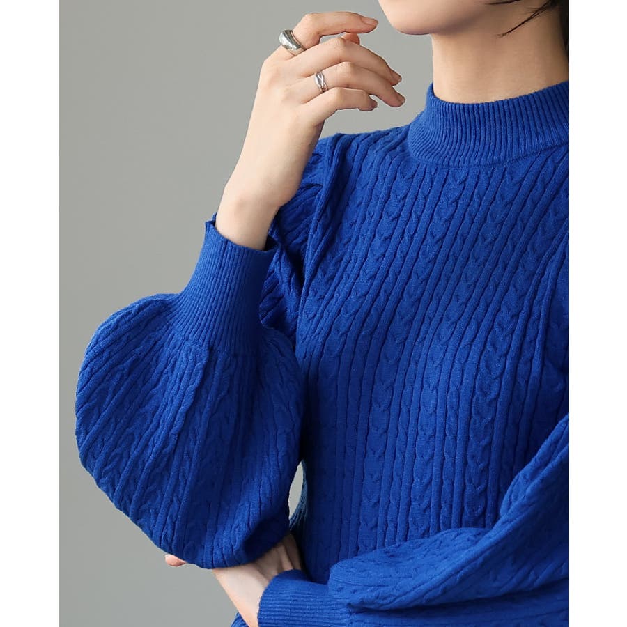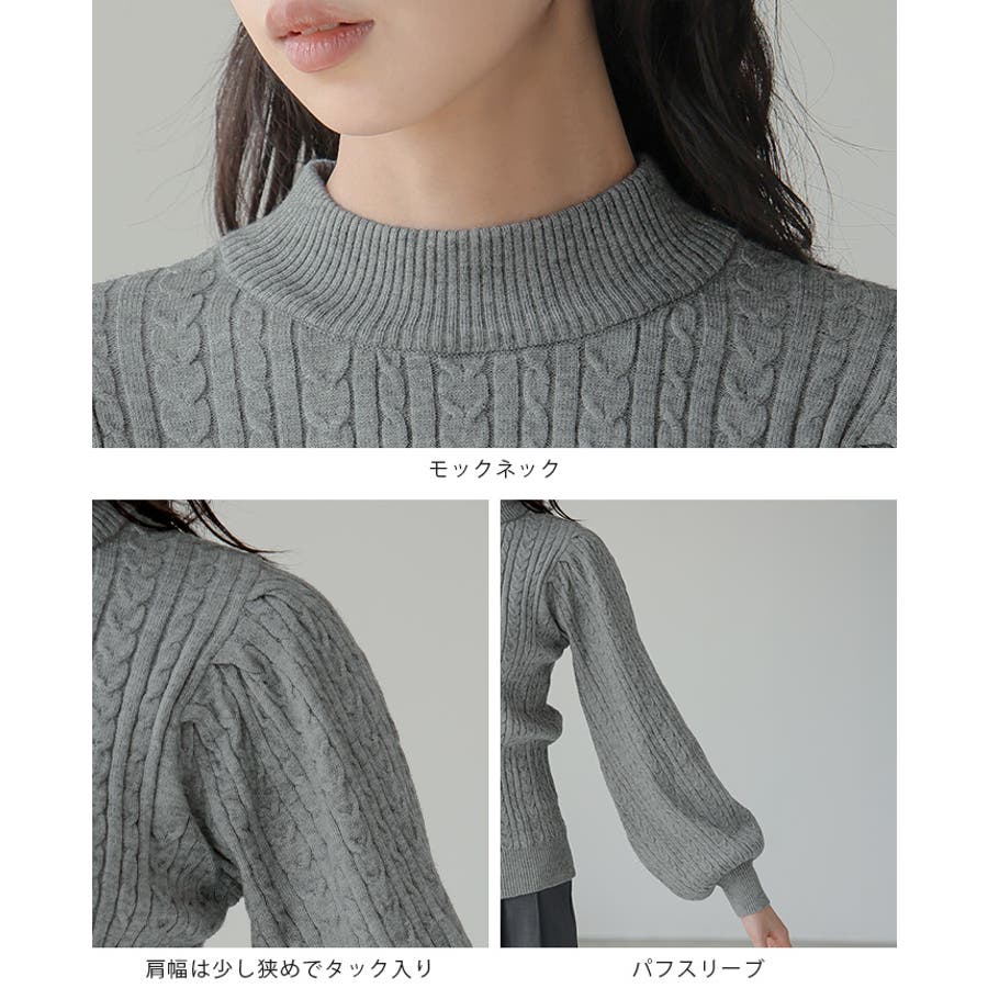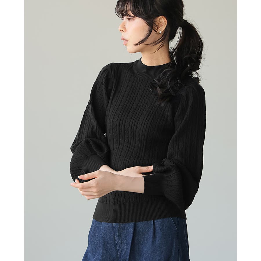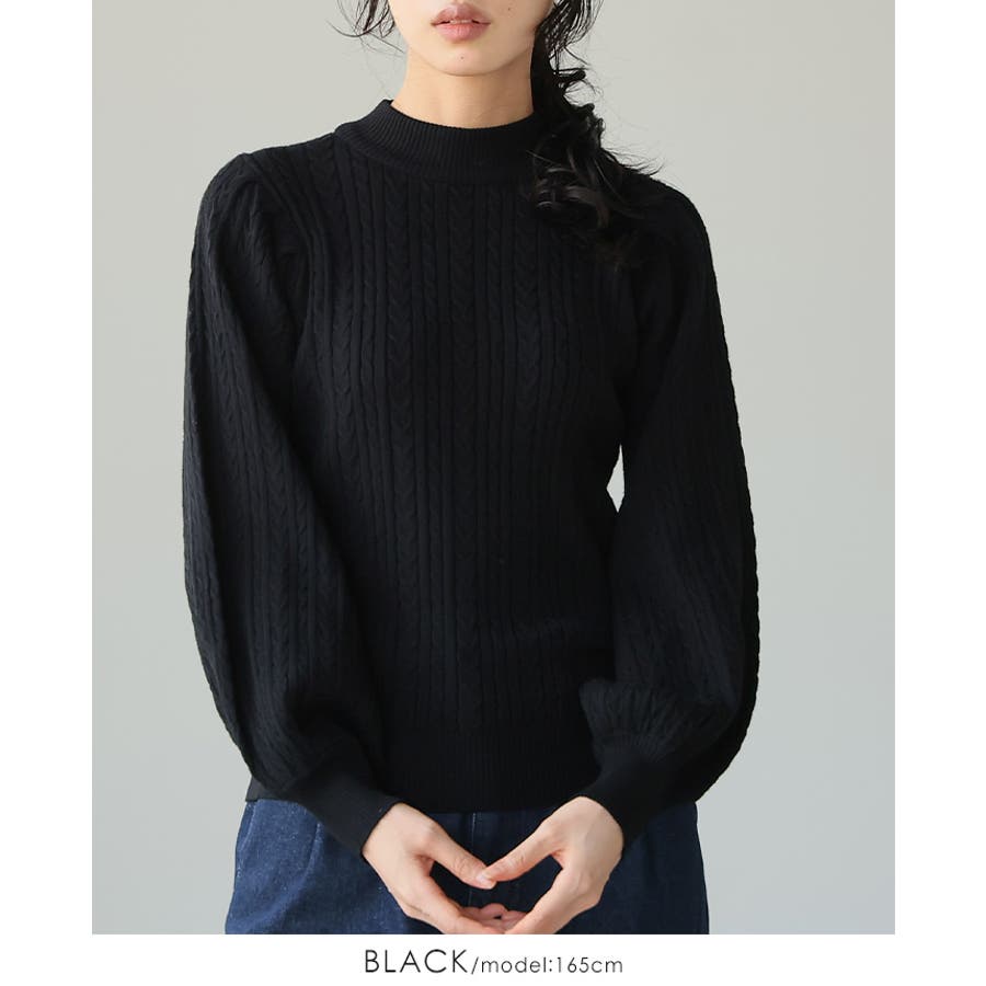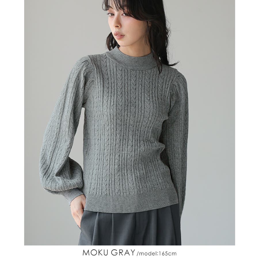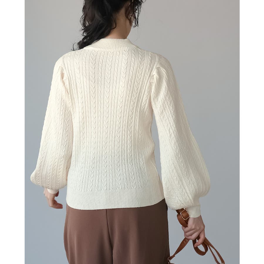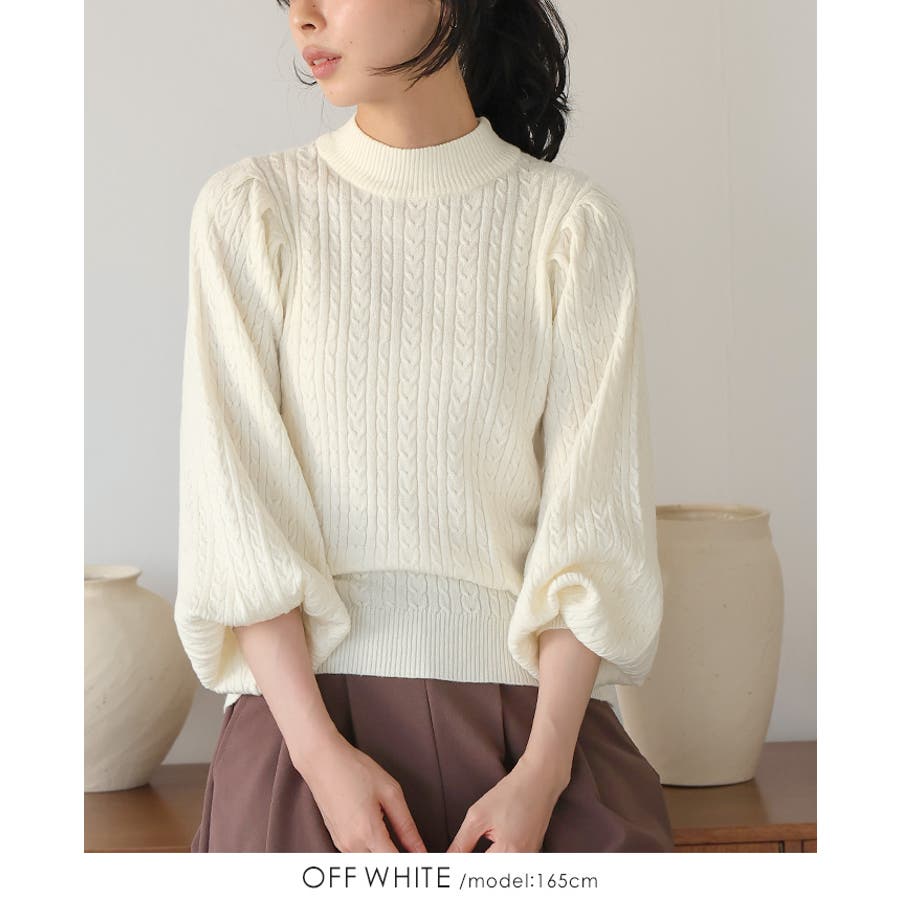 思わず触れたくなる柔らかさ。もちもち柄編みパフ袖ニット ニット セーター