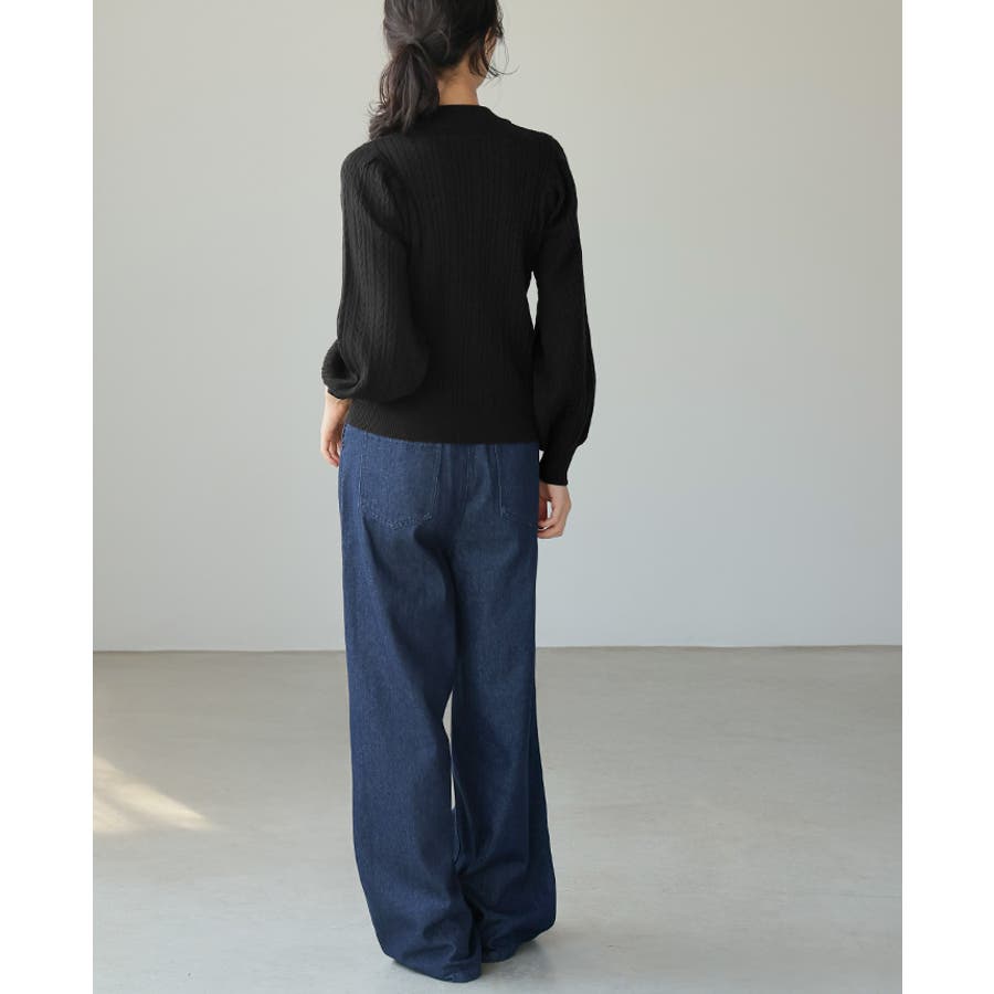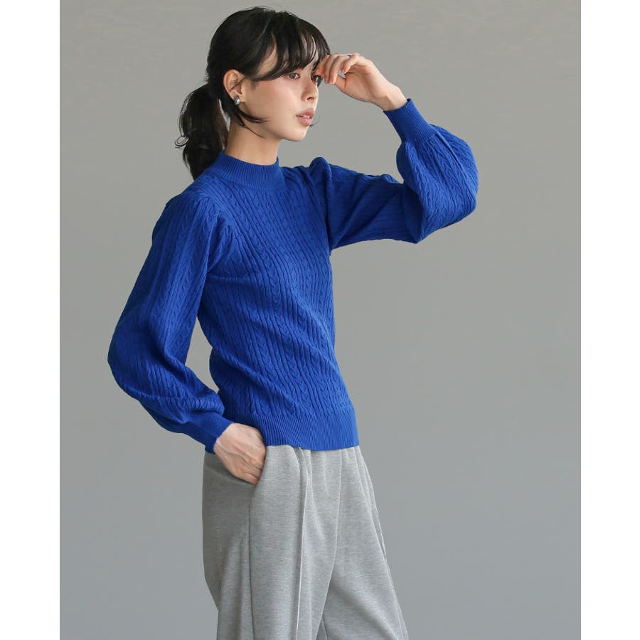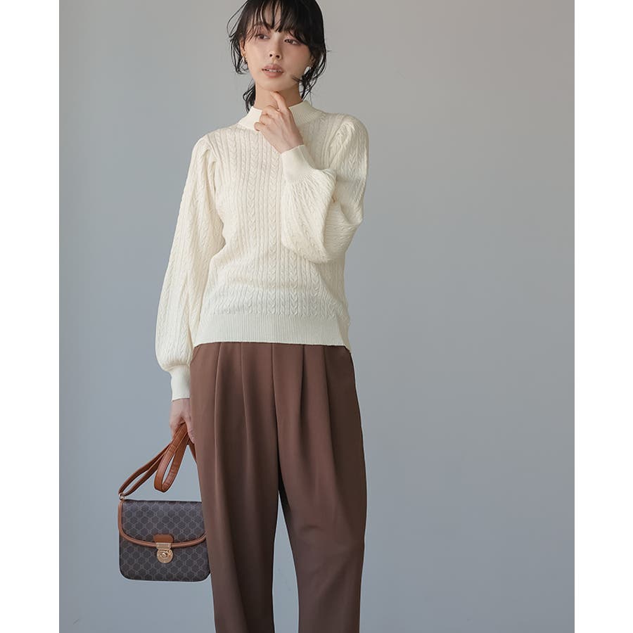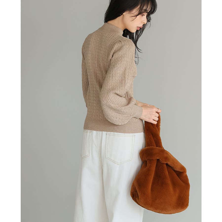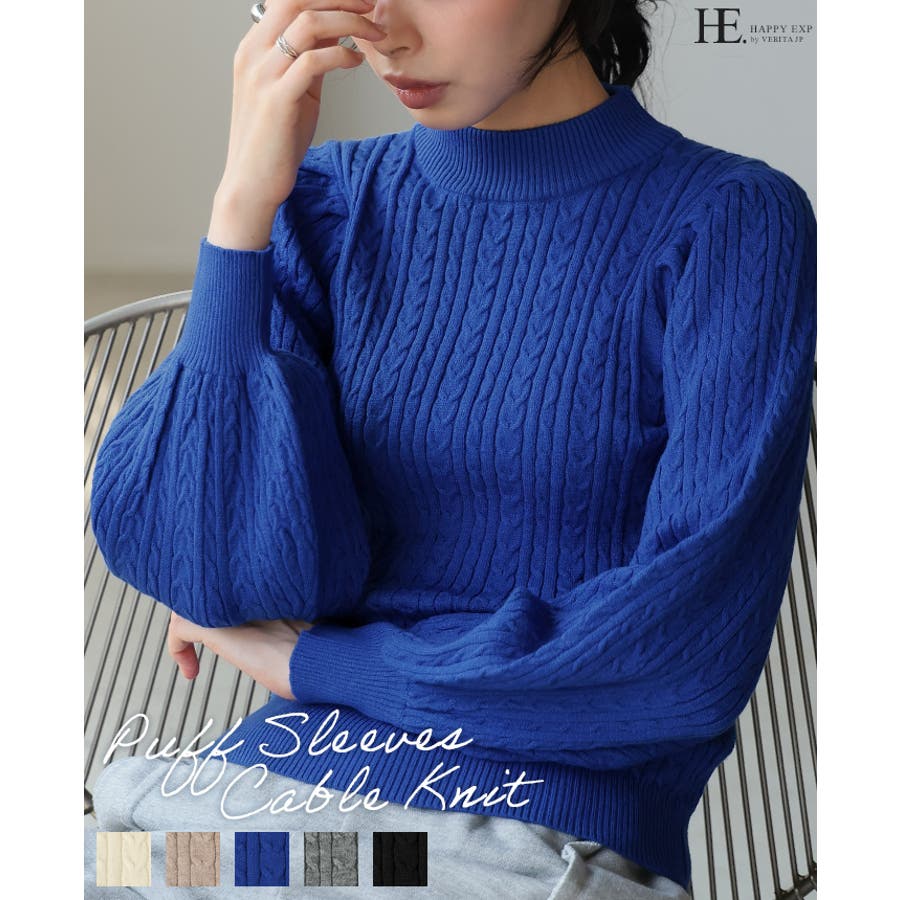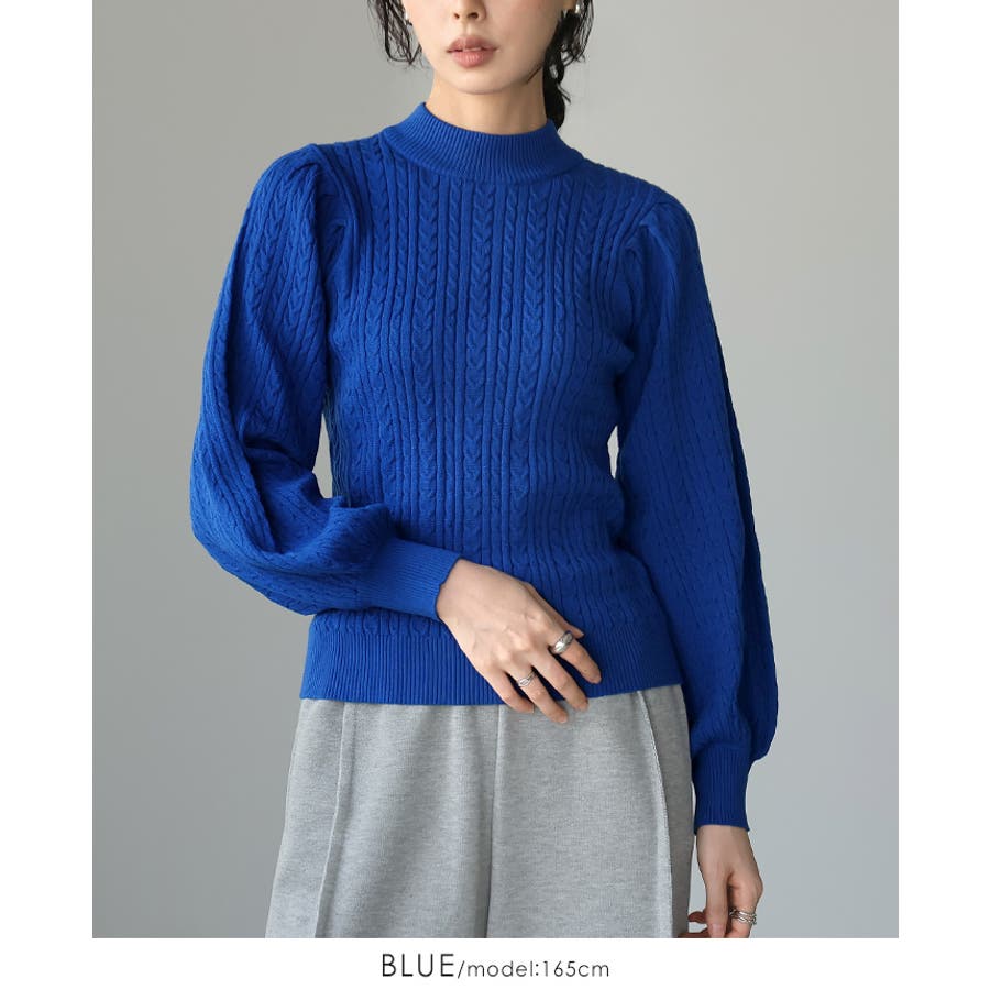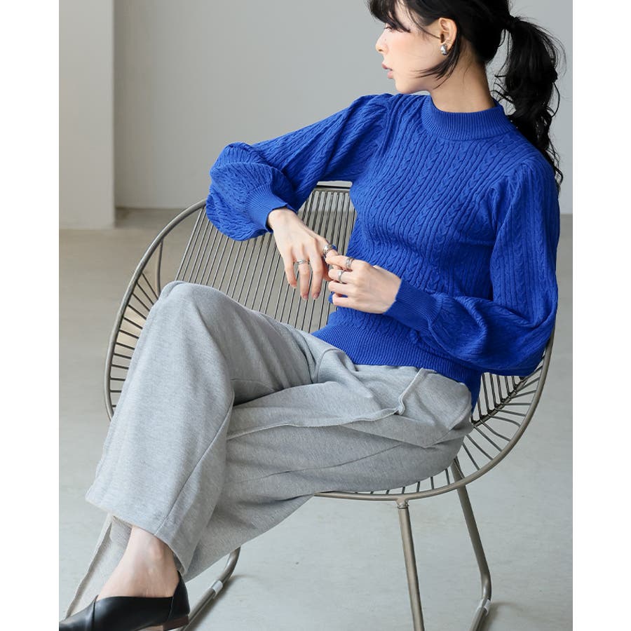 思わず触れたくなる柔らかさ。もちもち柄編みパフ袖ニット ニット セーター