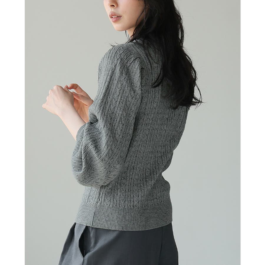 立体感のあるケーブル編みで仕上げた、クラシカルなニット。