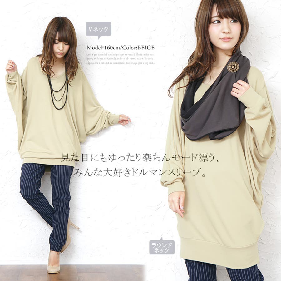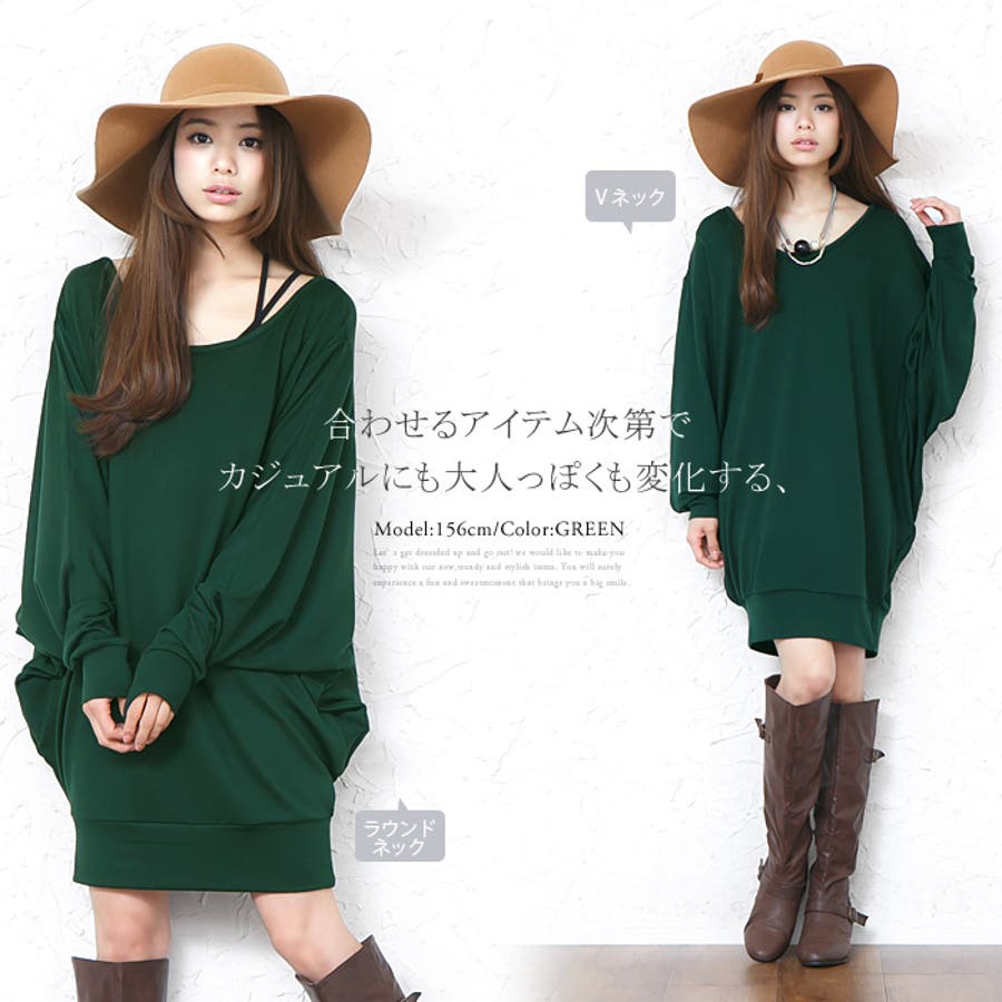 おうちで洗える、もちもちニット 選べる2タイプドルマンチュニック ニットワンピース
