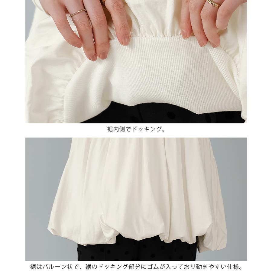 ウエストから下を切り替え、ふわっとしたバルーンシルエットに仕上げたトップス。