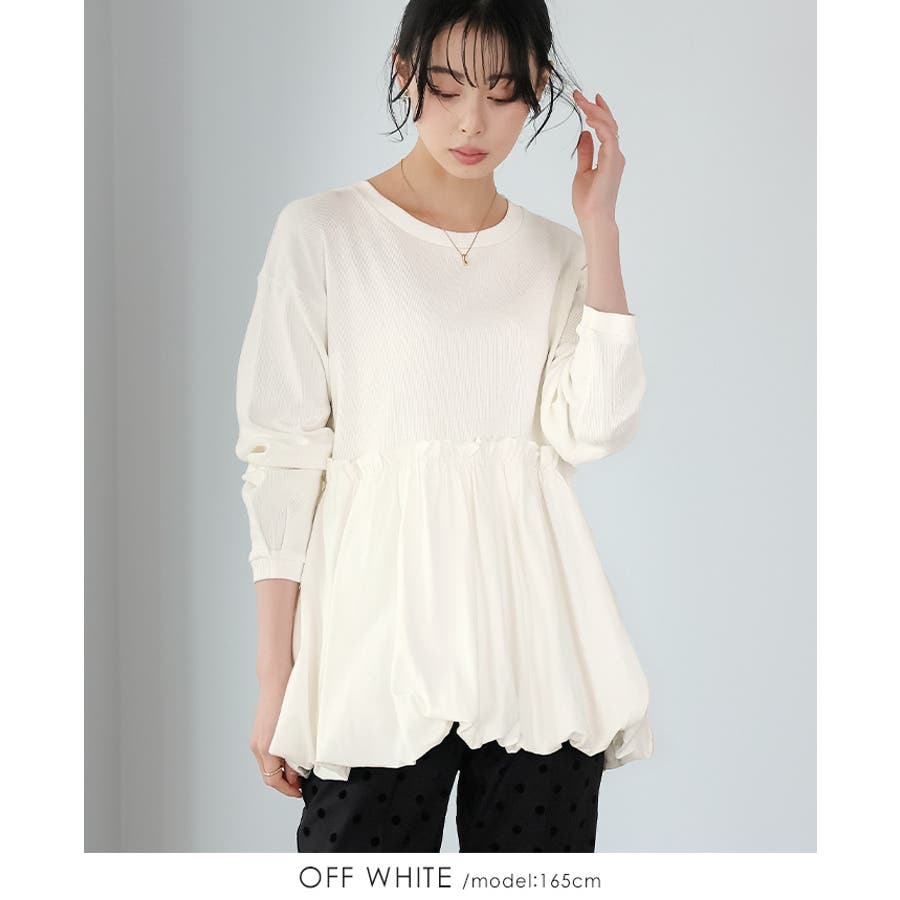 ふっくらシルエットで体型カバー。ペプラム切替バルーントップス カットソー ロンT