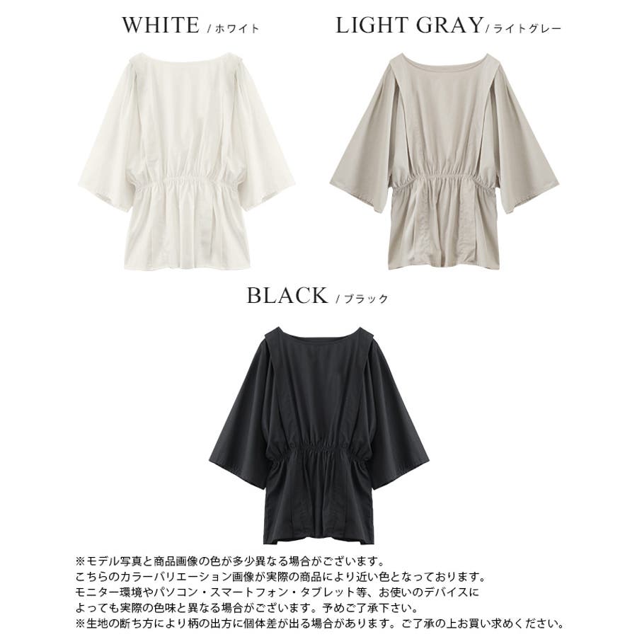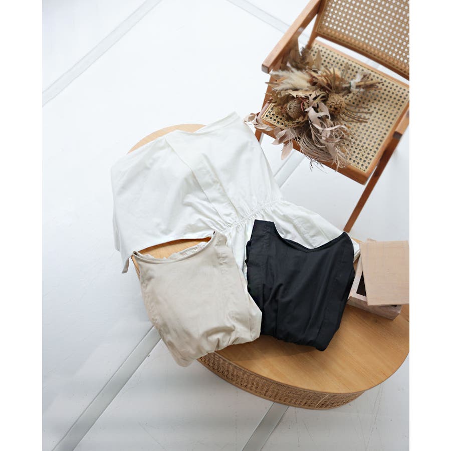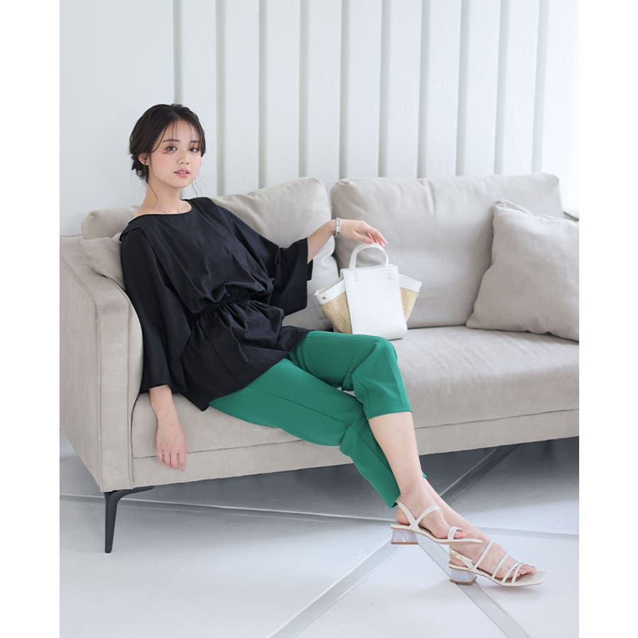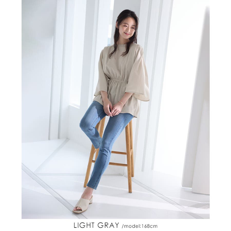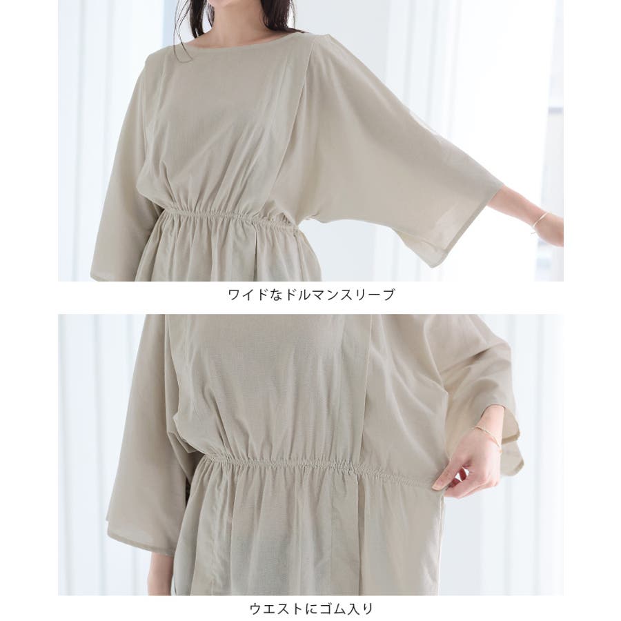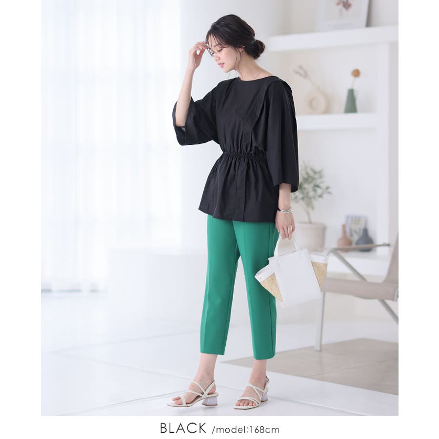 『女性らしい、キレイめブラウス。』暑い時期に活躍してくれる、リネンタッチの生地を使用。ウエストのゴムでメリハリを出し、フレアで腰回りをカバー。ワイドなドルマンスリーブは、二の腕が隠せるく7分丈。綿100%なので通気性が良く、さらっとした優しい肌触り。スタイルアップできる、おすすめのアイテムです。