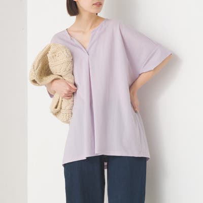 首元はキーネックで顔回りをすっきりと見せてくれます。