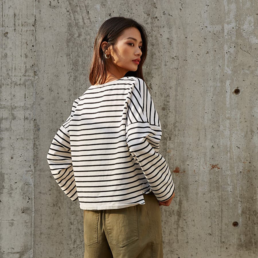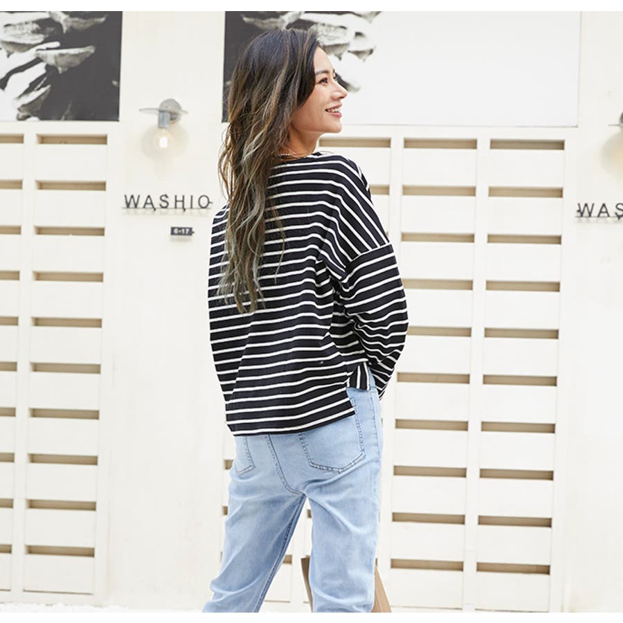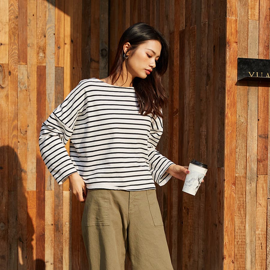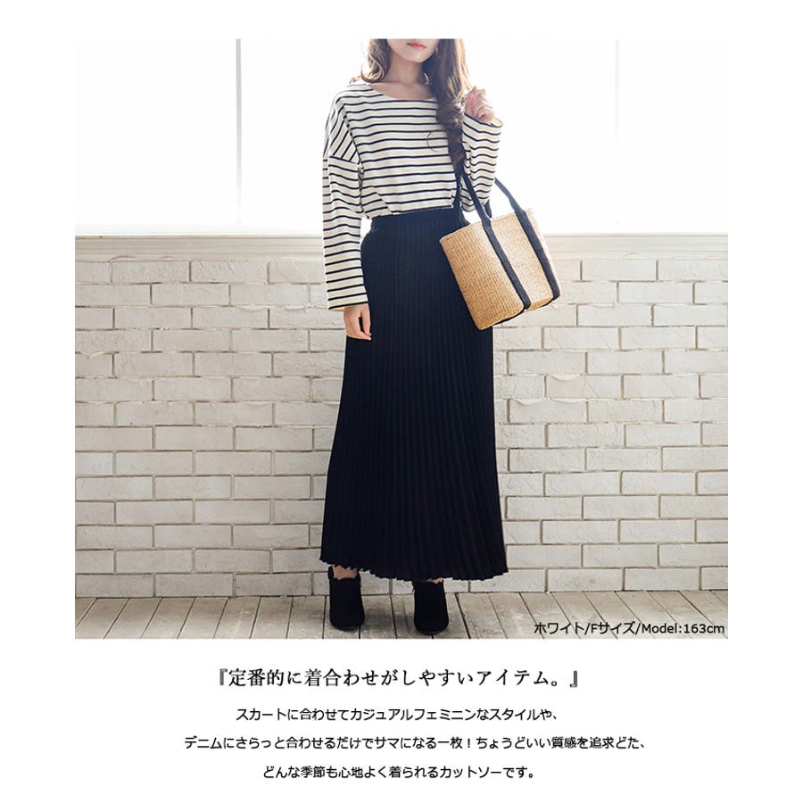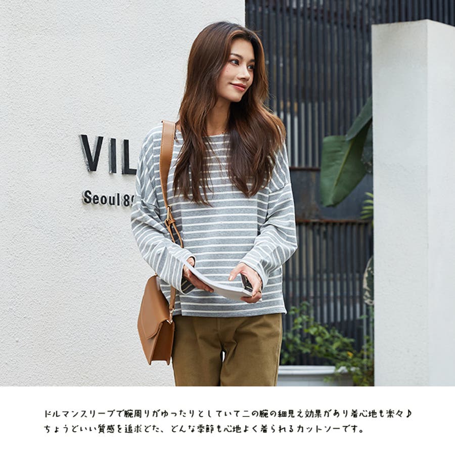 | 店長のコメント | 毎シーズン人気のボーダーロングスリーブTee。綿95%ある素材感で大人カジュアルな仕上がりに。 フェミニンな雰囲気にと着回し力も抜群なので、デイリーユースにぴったりの大人のカットソーです。 程よい厚みの生地と、通気性の高い綿95%素材を使用しているのが特徴です。ややゆったりとした身頃のベーシックなカットソー。着丈も短すぎず、一枚でもメイン使いしやすい。 ドルマンスリーブで腕周りがゆったりとしていて二の腕の細見え効果があり着心地も楽々♪ 色違いボーダーをご用意しておりますので、スタイリングも様々◎ 一枚で着用頂くのは勿論、インナーとしてのアクセント使いもオススメ。家事も仕事も、1枚でも重ね着でも。すっきり楽々! 定番的に着合わせがしやすいアイテム。スカートに合わせてカジュアルフェミニンなスタイルや、デニムにさらっと合わせるだけでサマになる一枚!ちょうどいい質感を追求どた、どんな季節も心地よく着られるカットソーです。 おすすめはガウチョパンツやマキシ丈スカートとあわせてナチュラルガール風コーデで。 そのまま着用しても可愛く、前だけインしたスタイルもおすすめです! |