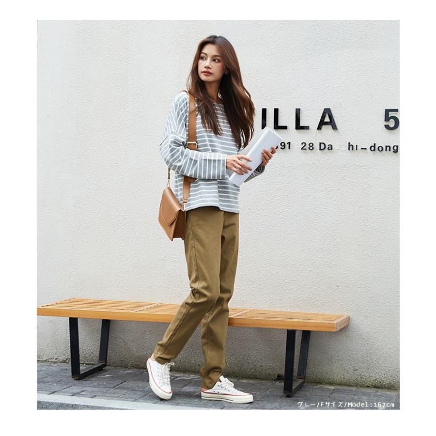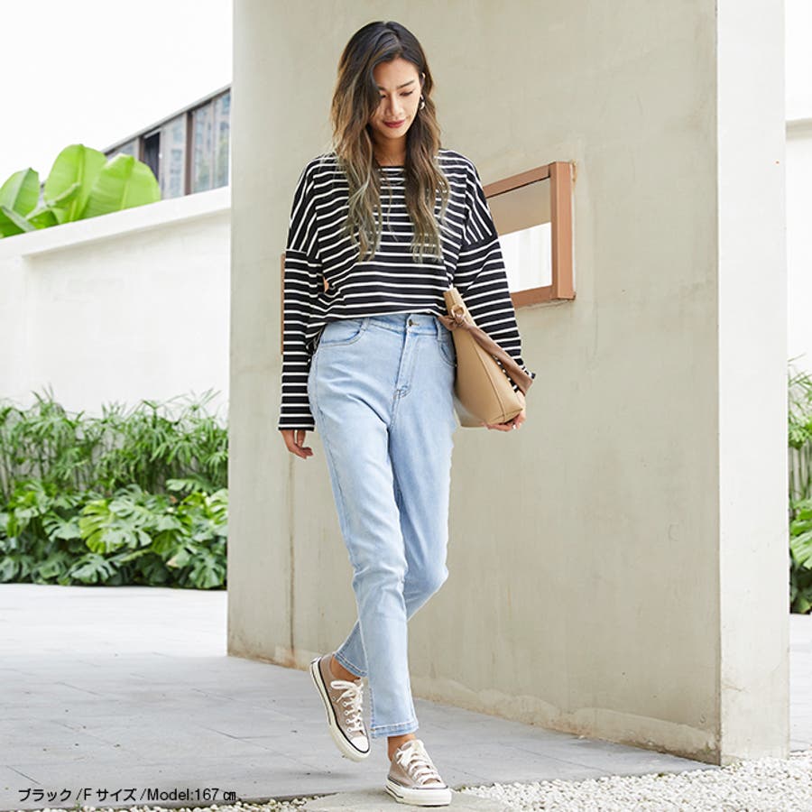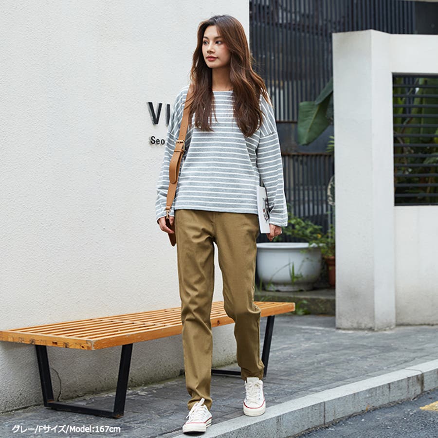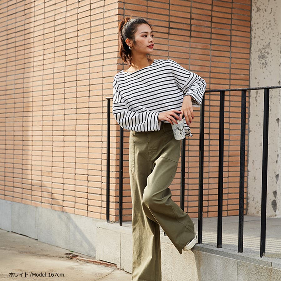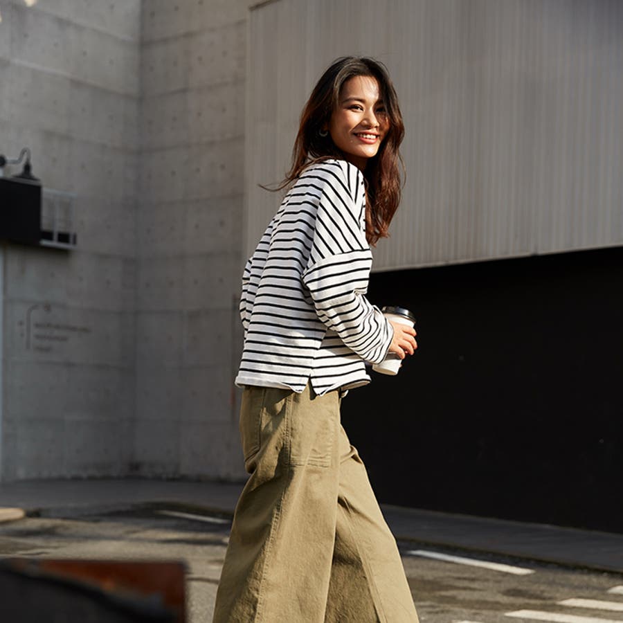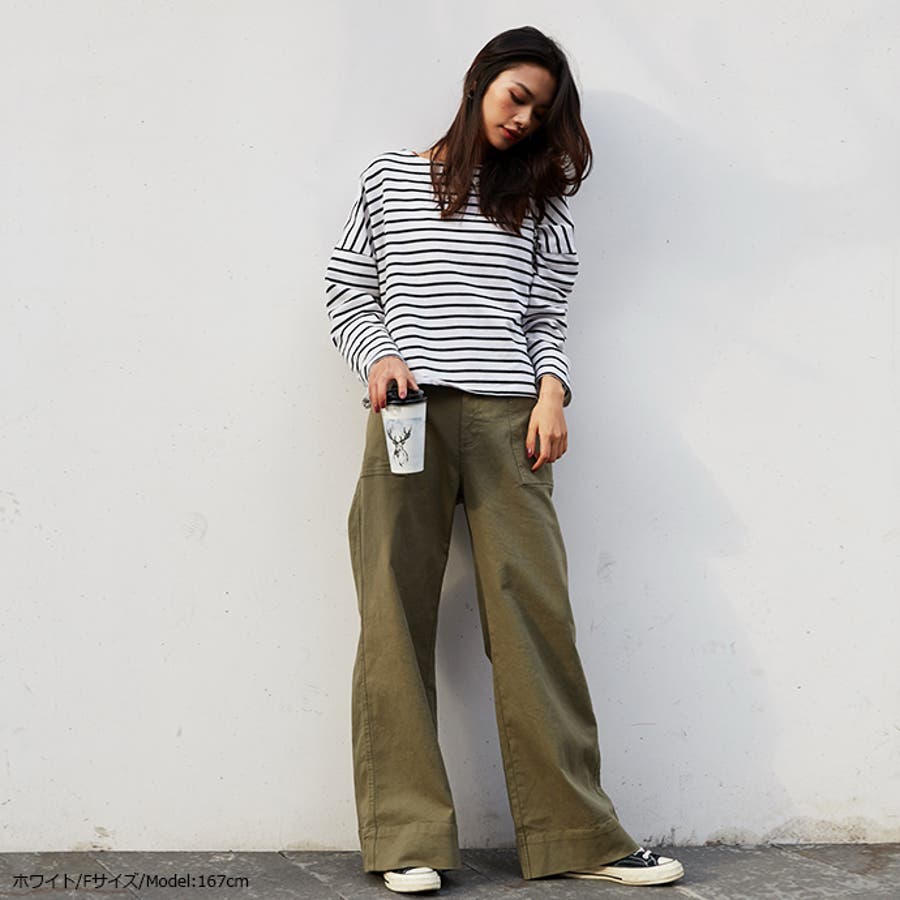 | 店長のコメント | 毎シーズン人気のボーダーロングスリーブTee。綿95%ある素材感で大人カジュアルな仕上がりに。 フェミニンな雰囲気にと着回し力も抜群なので、デイリーユースにぴったりの大人のカットソーです。 程よい厚みの生地と、通気性の高い綿95%素材を使用しているのが特徴です。ややゆったりとした身頃のベーシックなカットソー。着丈も短すぎず、一枚でもメイン使いしやすい。 ドルマンスリーブで腕周りがゆったりとしていて二の腕の細見え効果があり着心地も楽々♪ 色違いボーダーをご用意しておりますので、スタイリングも様々◎ 一枚で着用頂くのは勿論、インナーとしてのアクセント使いもオススメ。家事も仕事も、1枚でも重ね着でも。すっきり楽々! 定番的に着合わせがしやすいアイテム。スカートに合わせてカジュアルフェミニンなスタイルや、デニムにさらっと合わせるだけでサマになる一枚!ちょうどいい質感を追求どた、どんな季節も心地よく着られるカットソーです。 おすすめはガウチョパンツやマキシ丈スカートとあわせてナチュラルガール風コーデで。 そのまま着用しても可愛く、前だけインしたスタイルもおすすめです! |