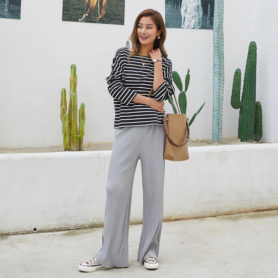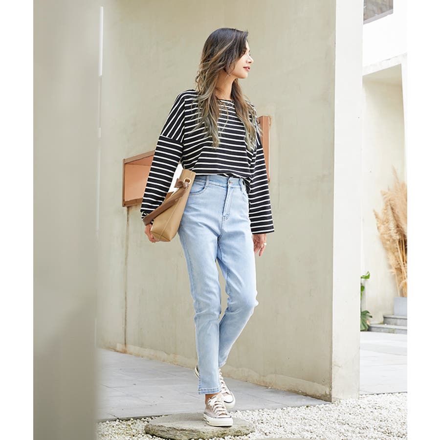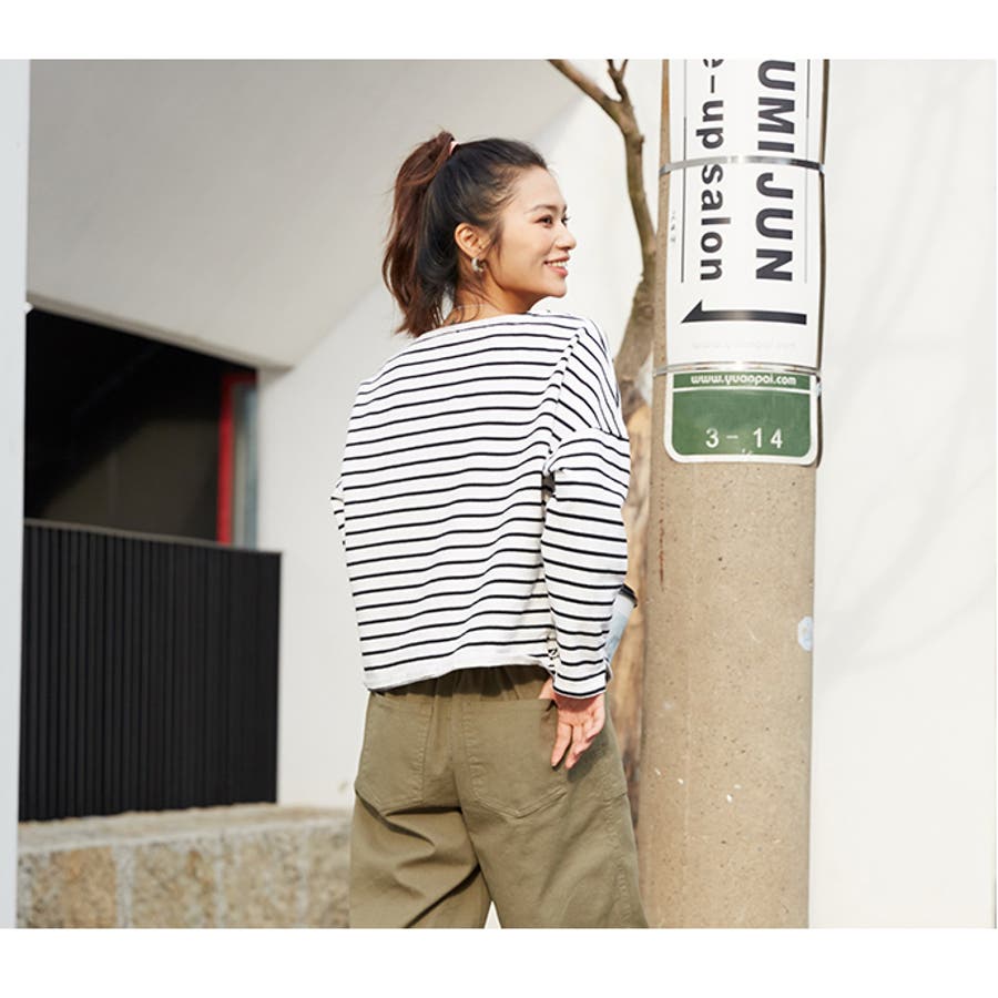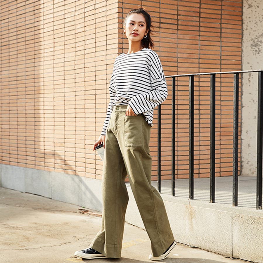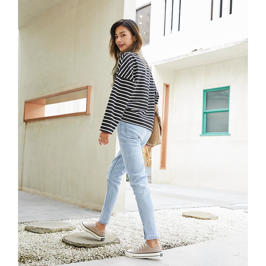 | 店長のコメント | 毎シーズン人気のボーダーロングスリーブTee。綿95%ある素材感で大人カジュアルな仕上がりに。 フェミニンな雰囲気にと着回し力も抜群なので、デイリーユースにぴったりの大人のカットソーです。 程よい厚みの生地と、通気性の高い綿95%素材を使用しているのが特徴です。ややゆったりとした身頃のベーシックなカットソー。着丈も短すぎず、一枚でもメイン使いしやすい。 ドルマンスリーブで腕周りがゆったりとしていて二の腕の細見え効果があり着心地も楽々♪ 色違いボーダーをご用意しておりますので、スタイリングも様々◎ 一枚で着用頂くのは勿論、インナーとしてのアクセント使いもオススメ。家事も仕事も、1枚でも重ね着でも。すっきり楽々! 定番的に着合わせがしやすいアイテム。スカートに合わせてカジュアルフェミニンなスタイルや、デニムにさらっと合わせるだけでサマになる一枚!ちょうどいい質感を追求どた、どんな季節も心地よく着られるカットソーです。 おすすめはガウチョパンツやマキシ丈スカートとあわせてナチュラルガール風コーデで。 そのまま着用しても可愛く、前だけインしたスタイルもおすすめです! |